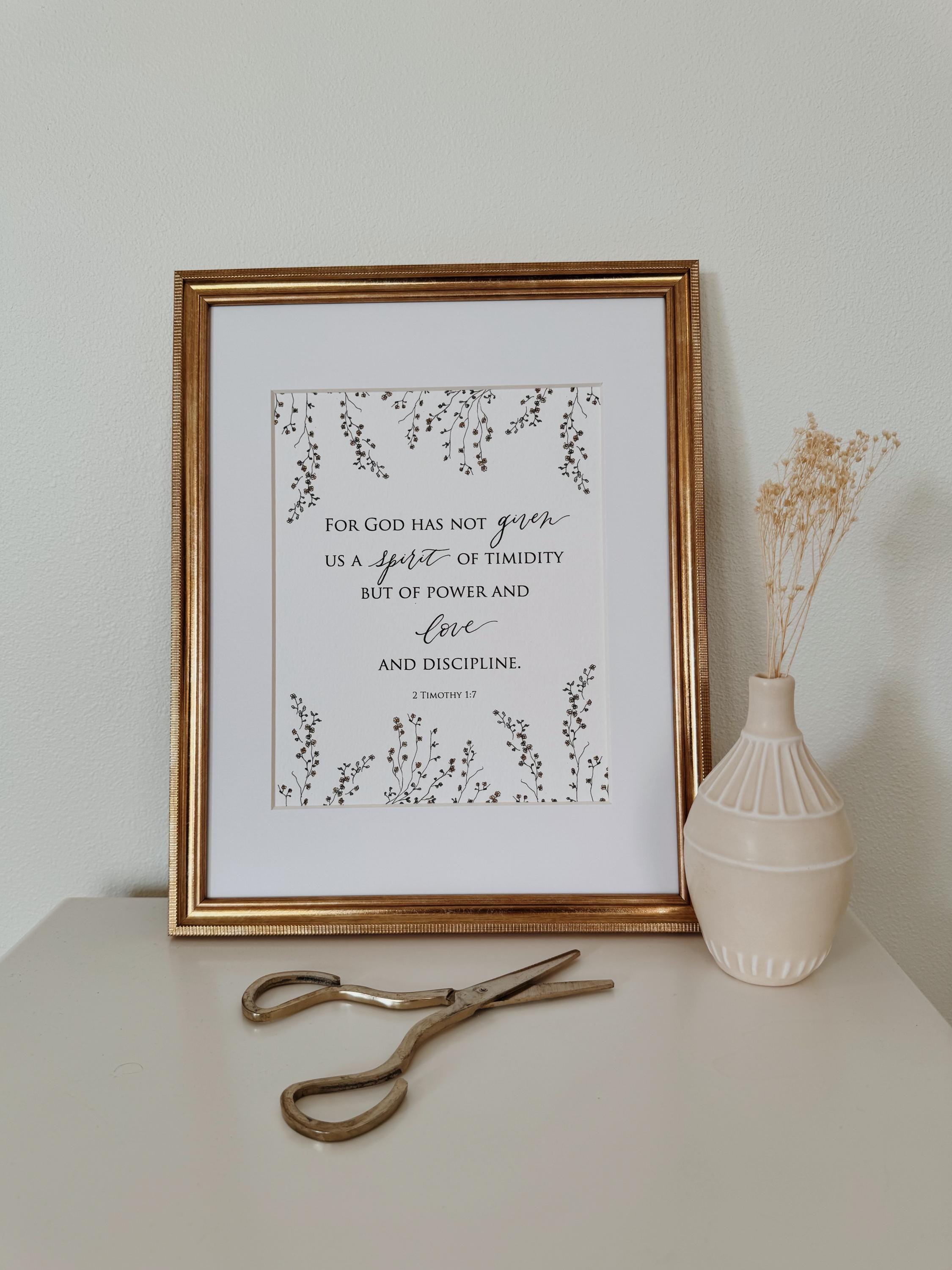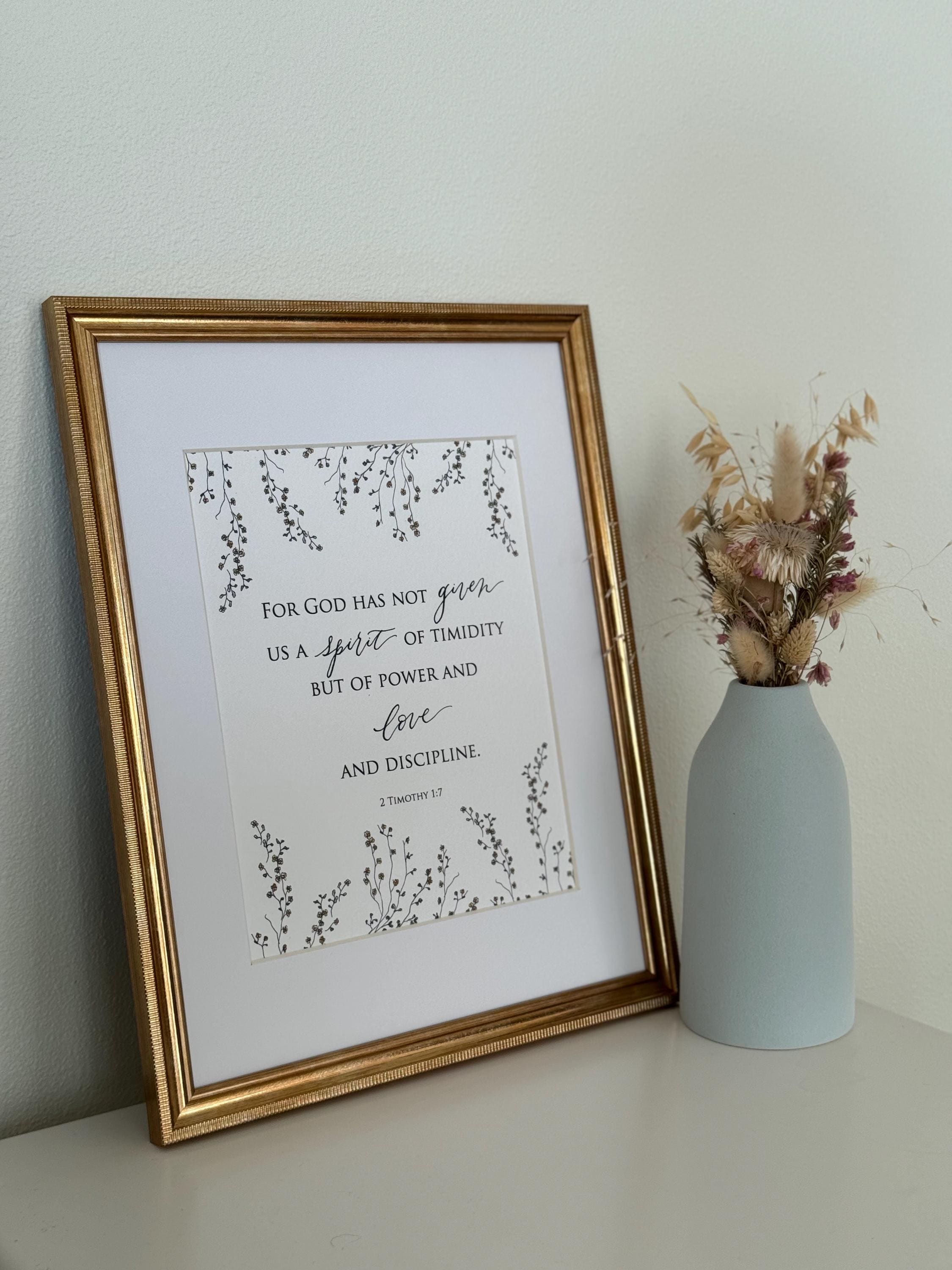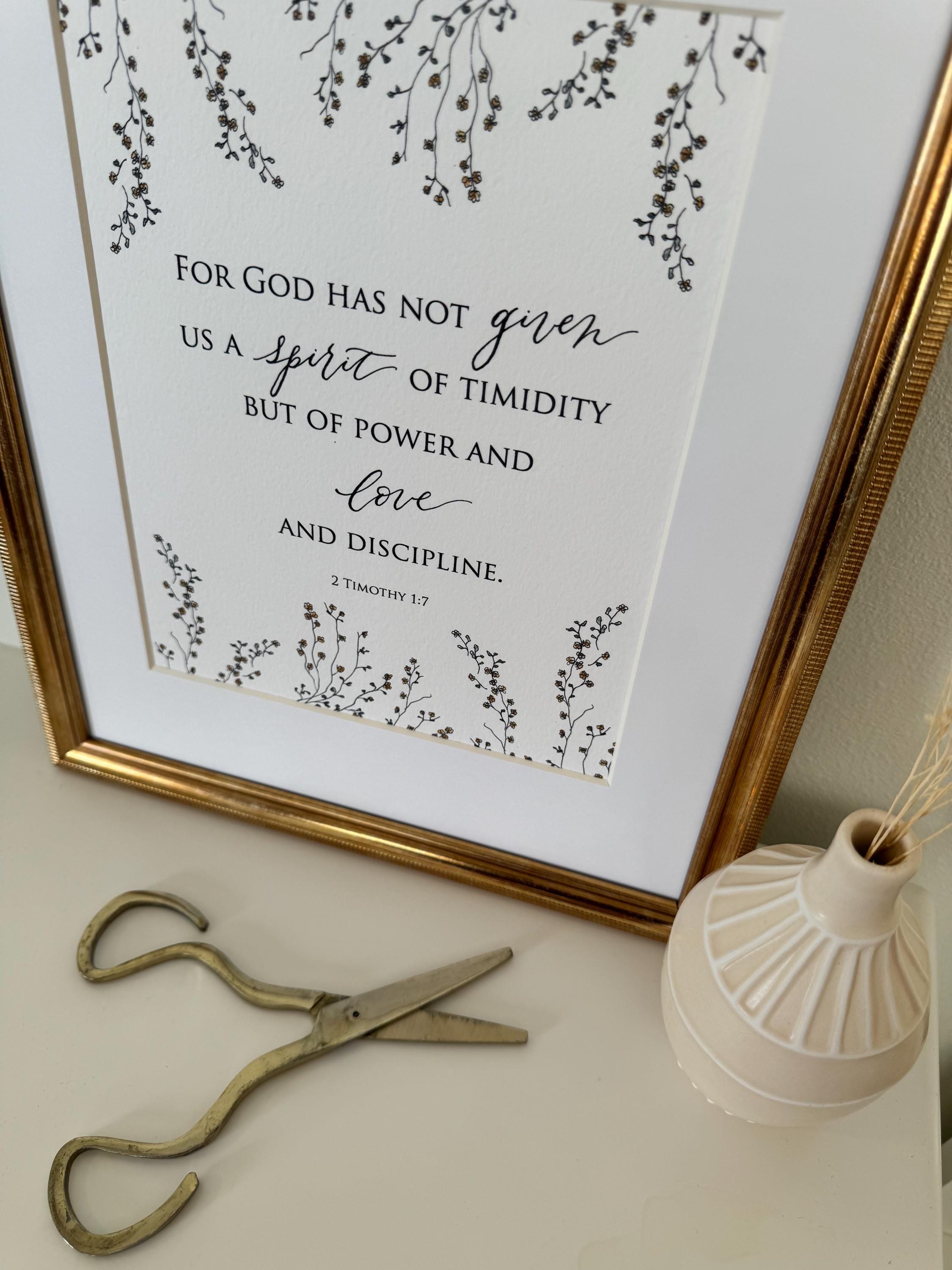 2 Timothy 1:7 Scripture Print • Calligraphy, Floral Watercolor Art, Italian Paper