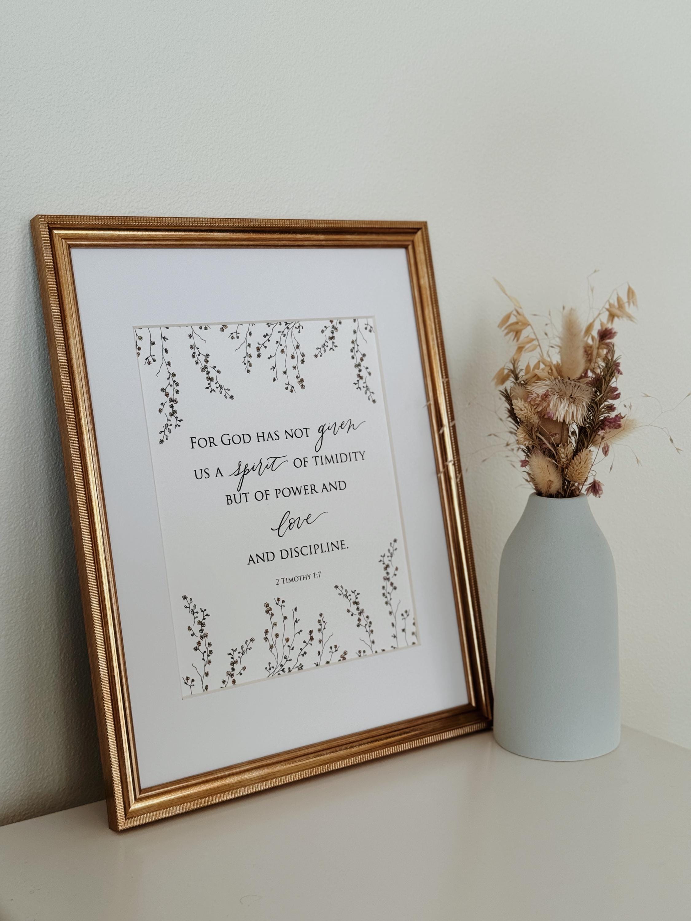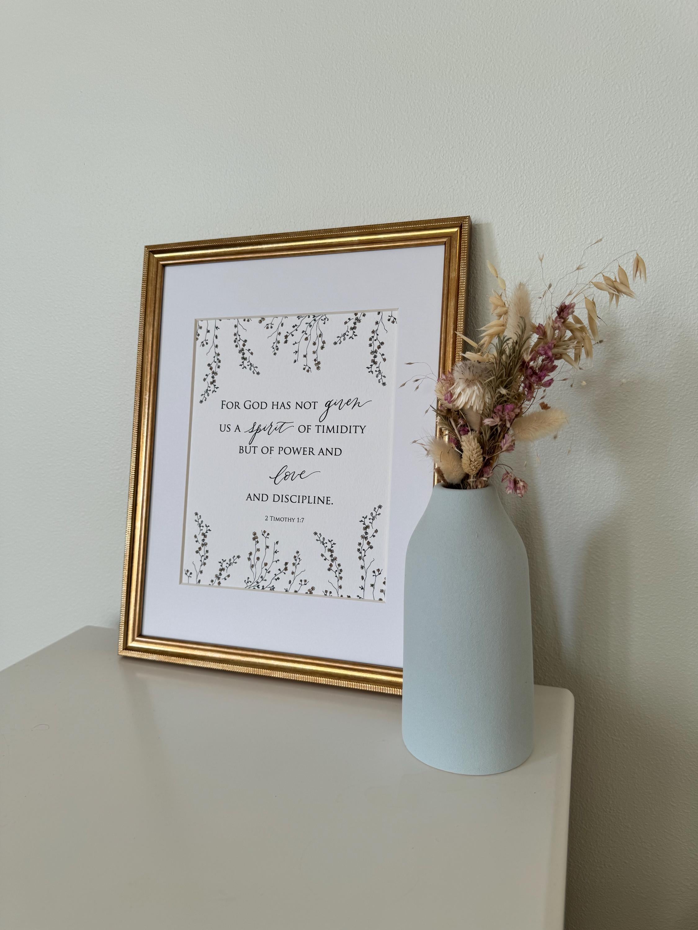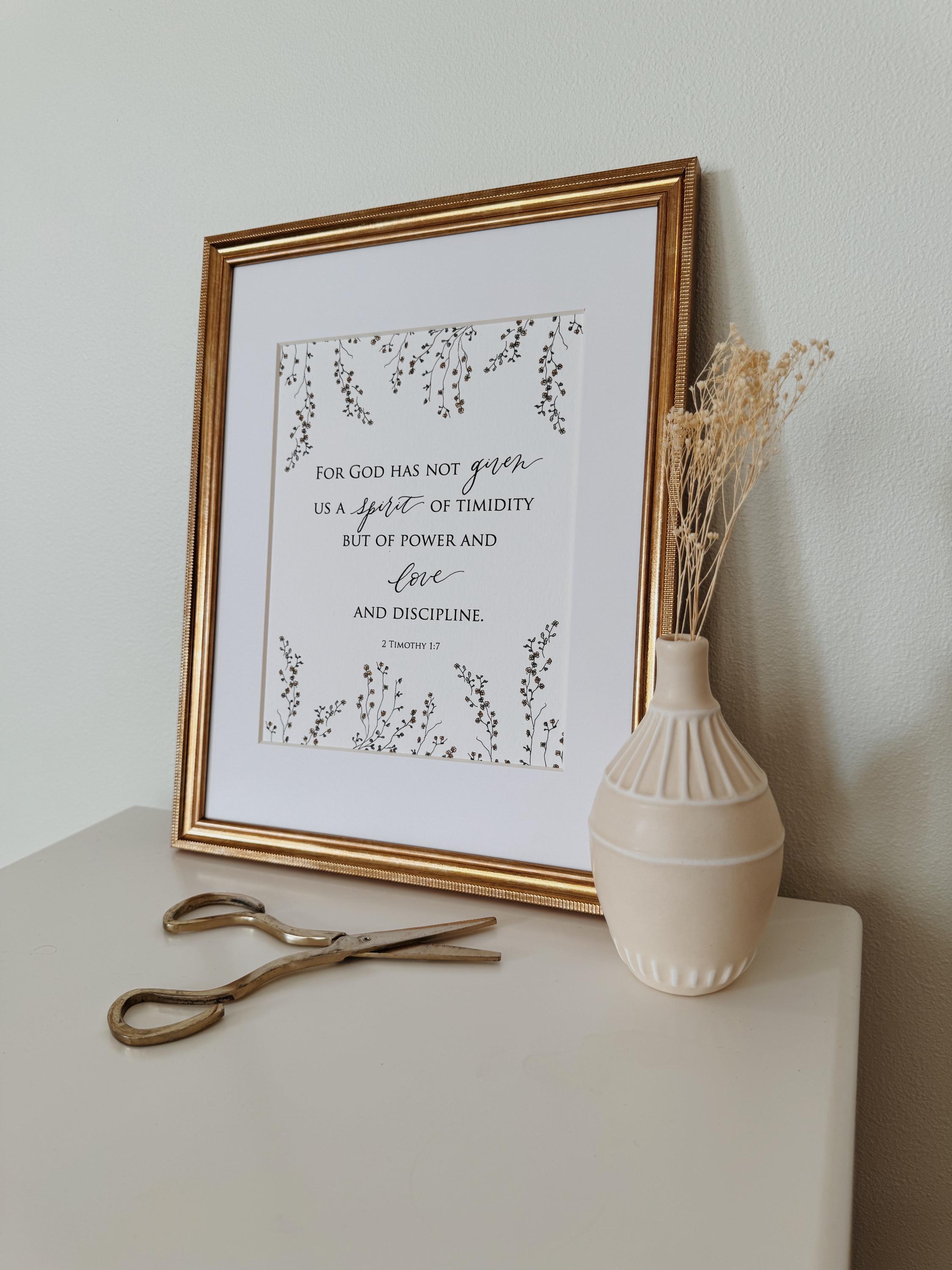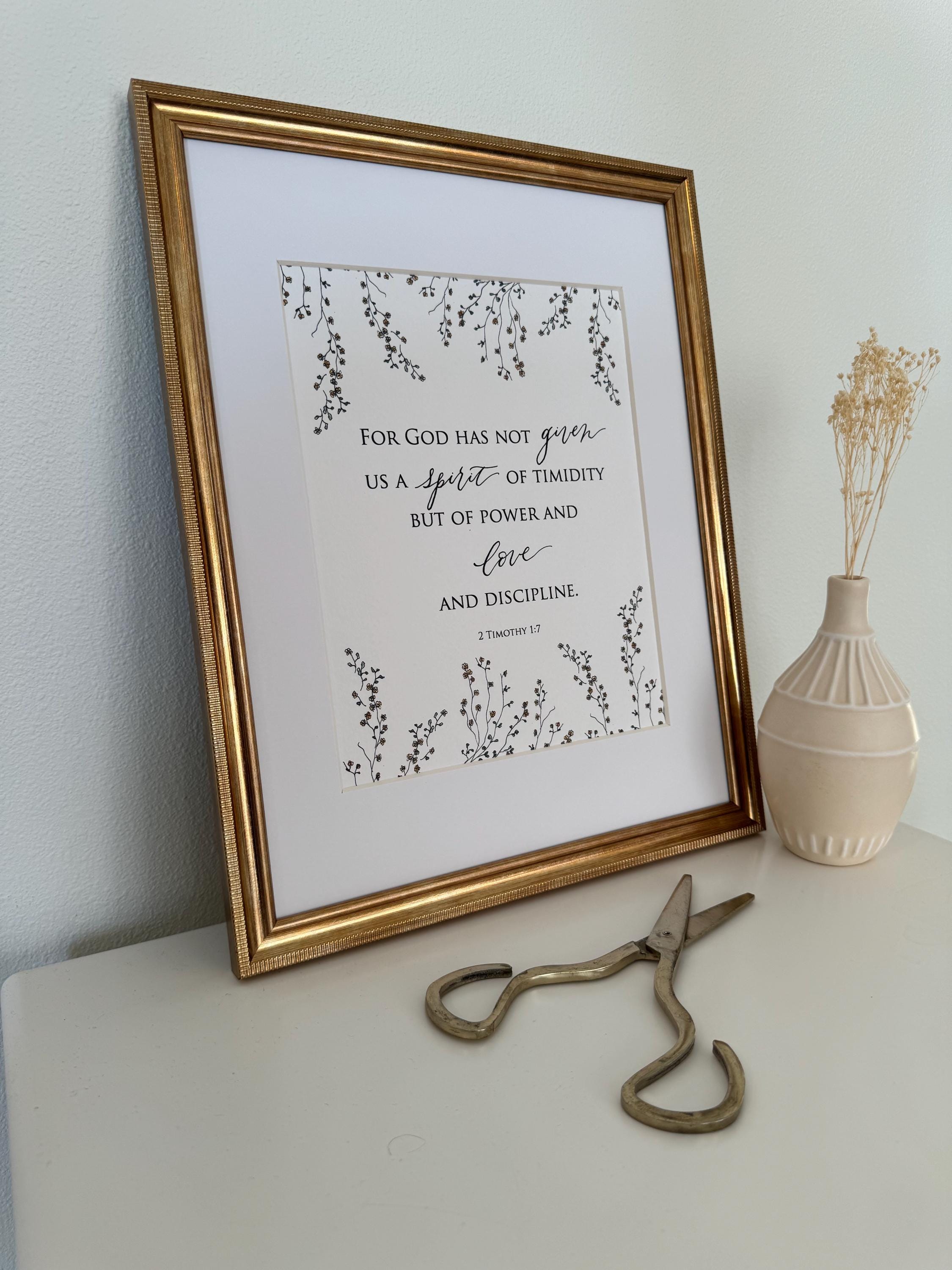 2 Timothy 1:7 Scripture Print • Calligraphy, Floral Watercolor Art, Italian Paper