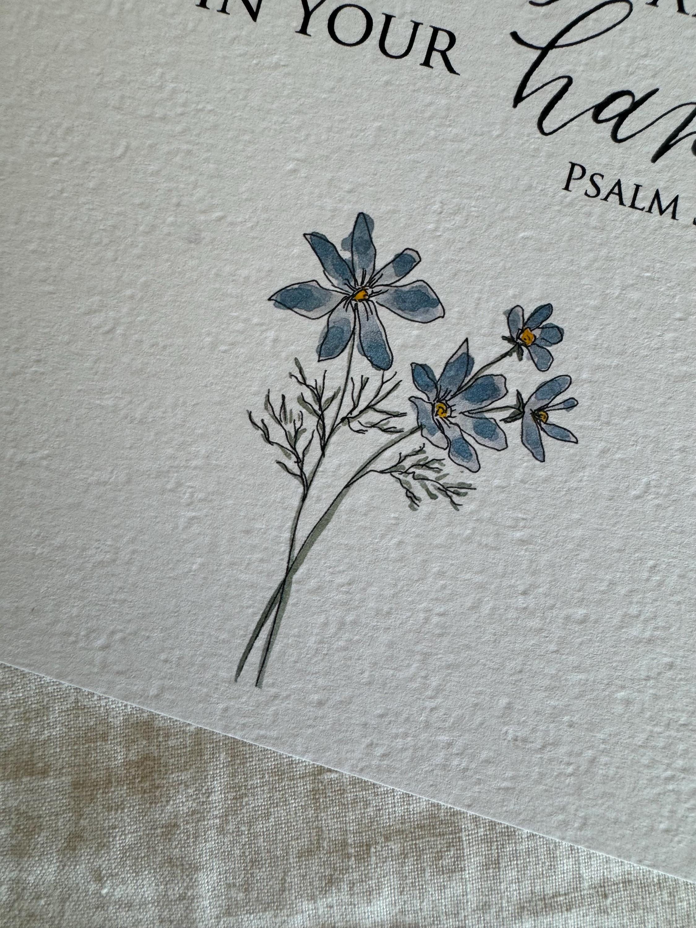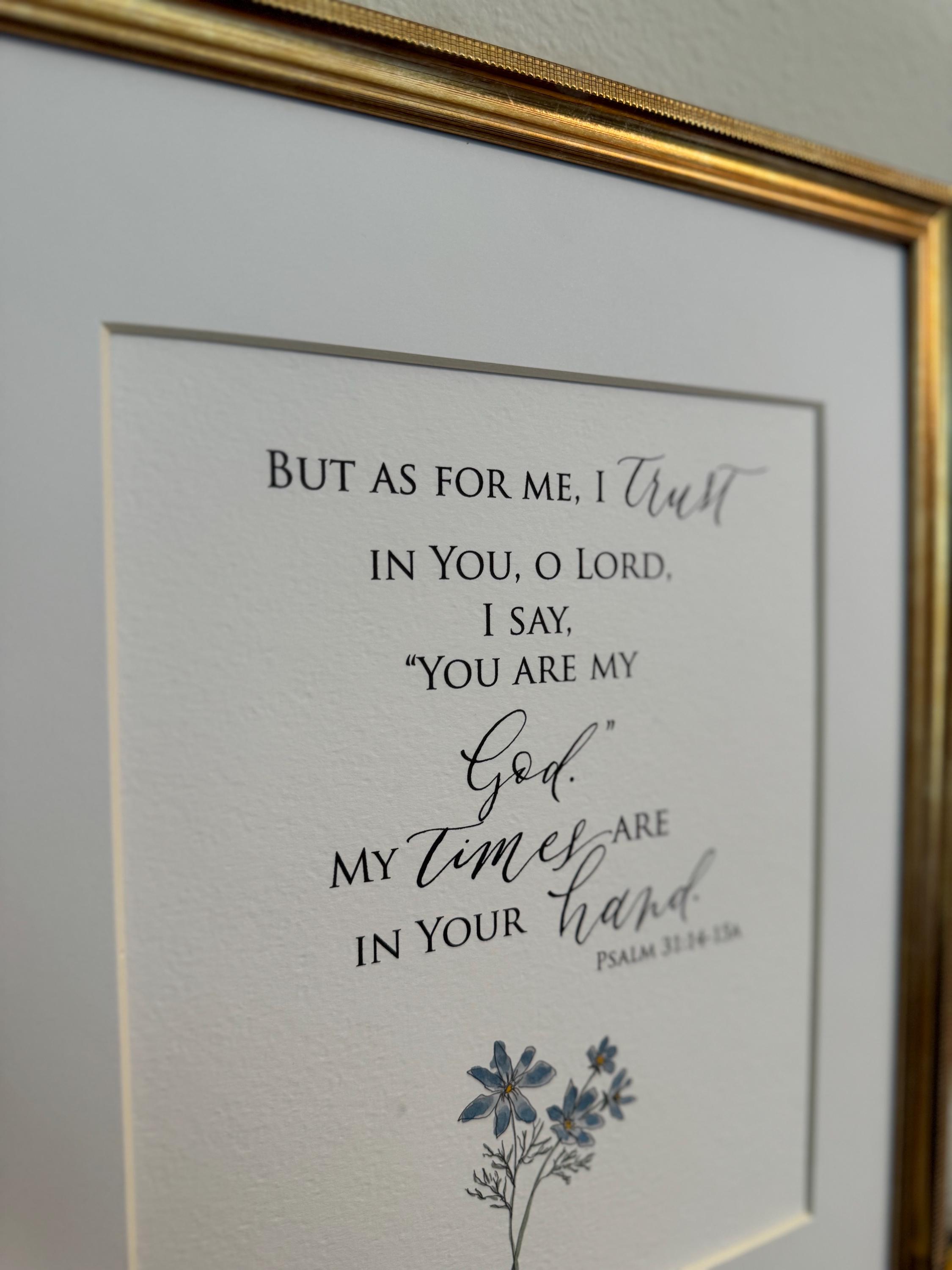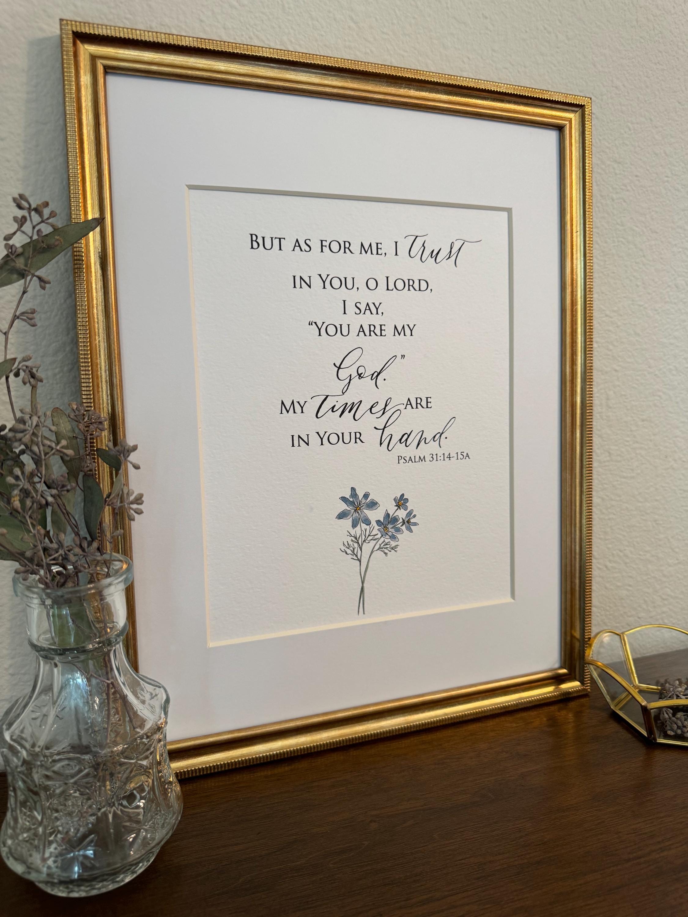 Psalm 31:14-15a Scripture Print • Calligraphy, Floral Watercolor, Italian Paper