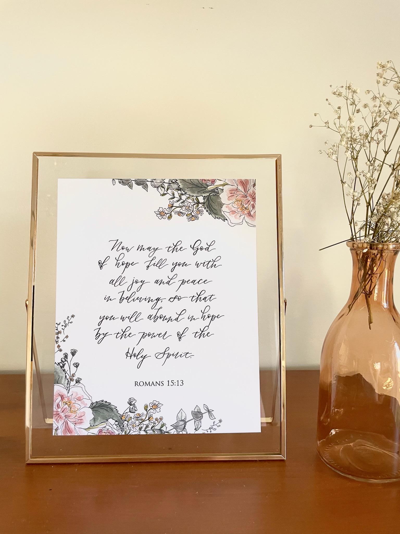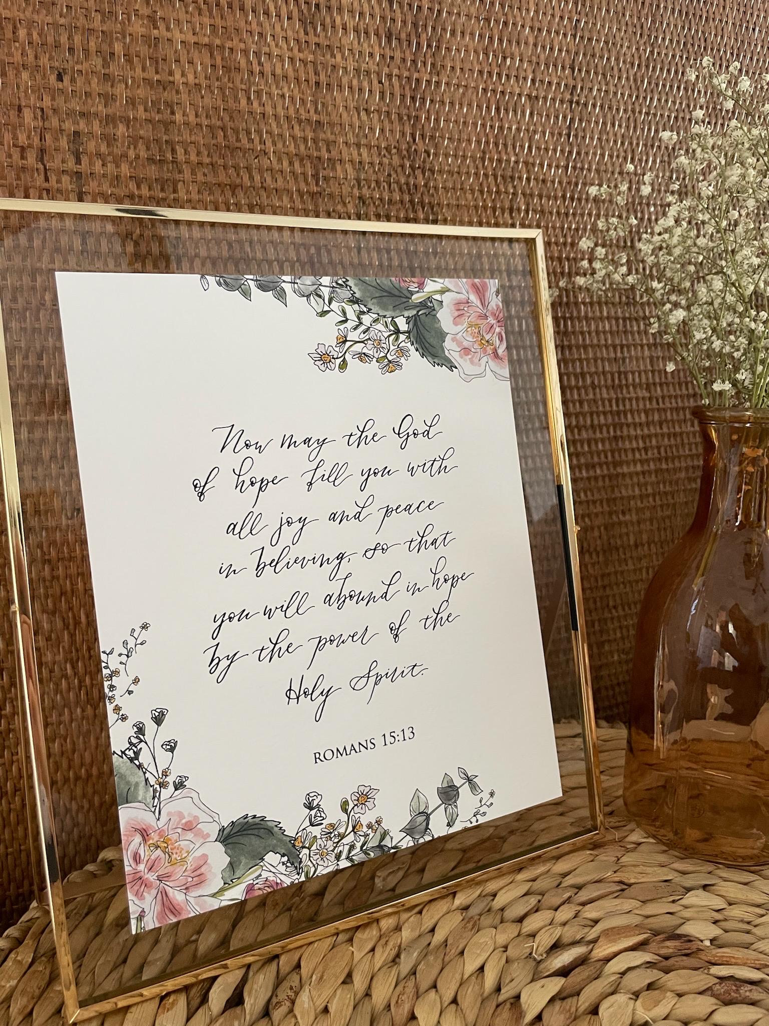 Romans 15:13 Scripture Print • Calligraphy, Floral Watercolor, Italian Paper