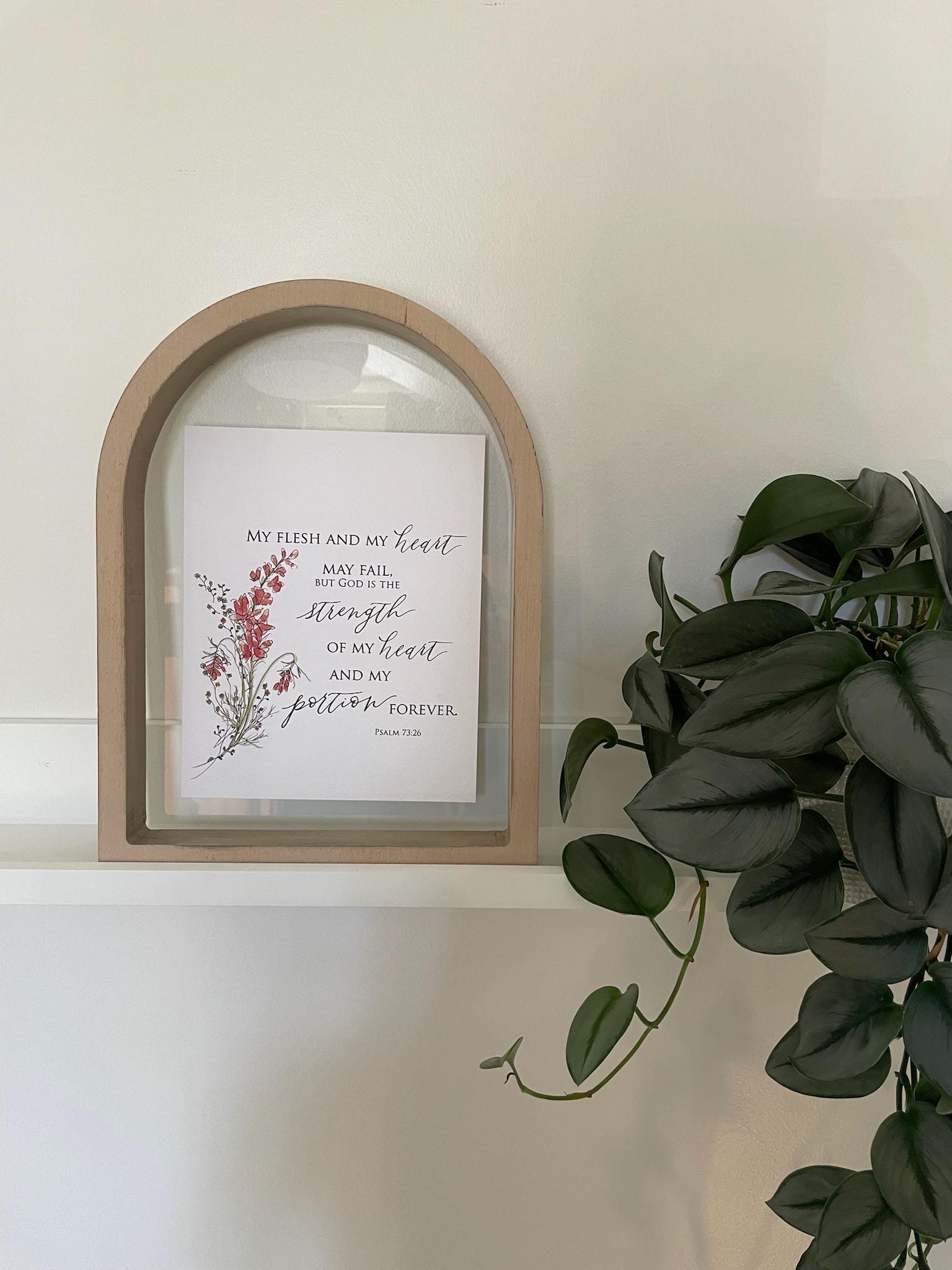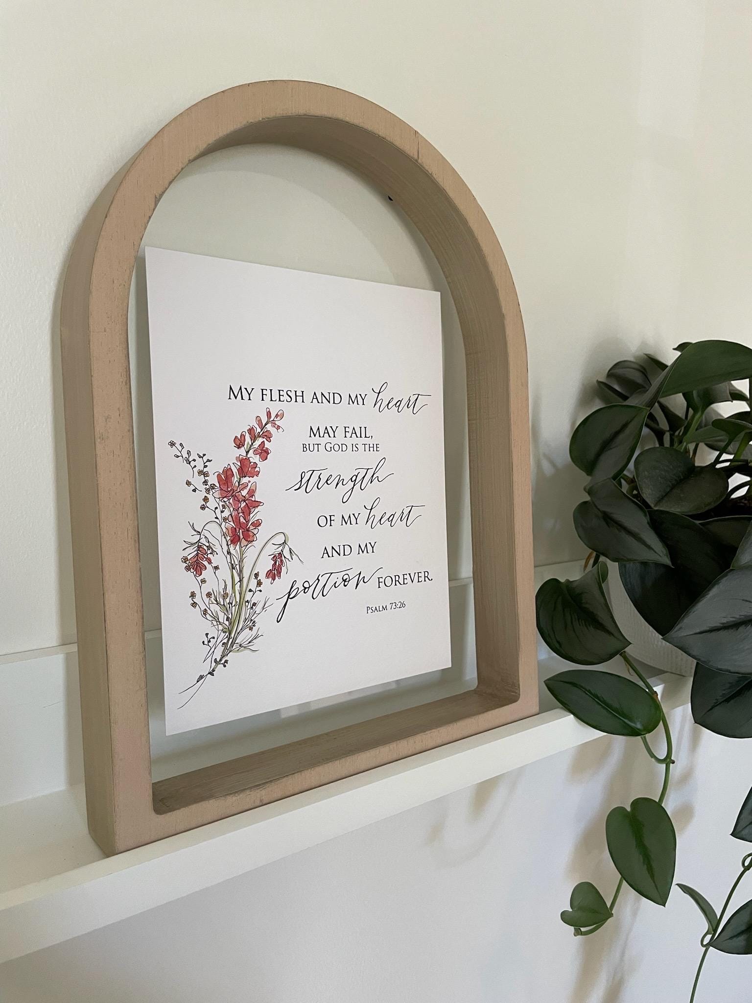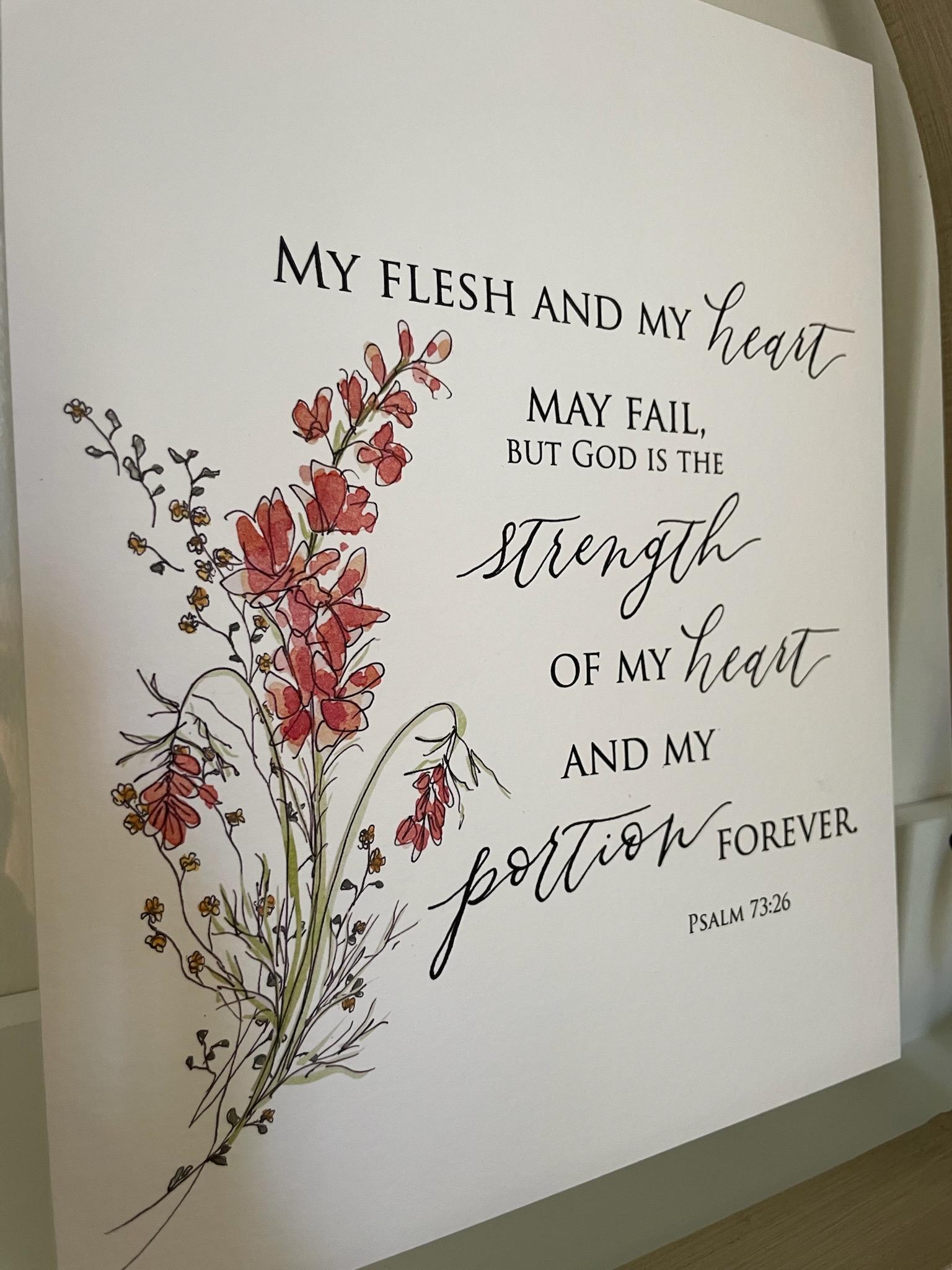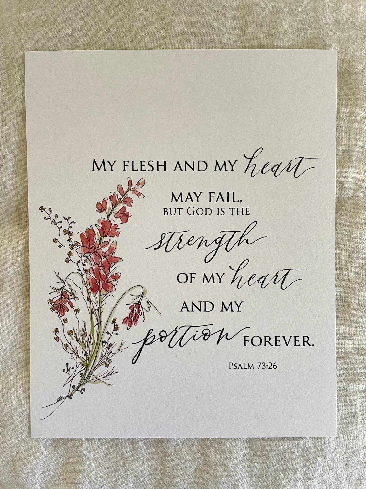 Psalm 73:26 Scripture Print • Calligraphy, Watercolor Floral, Italian Paper