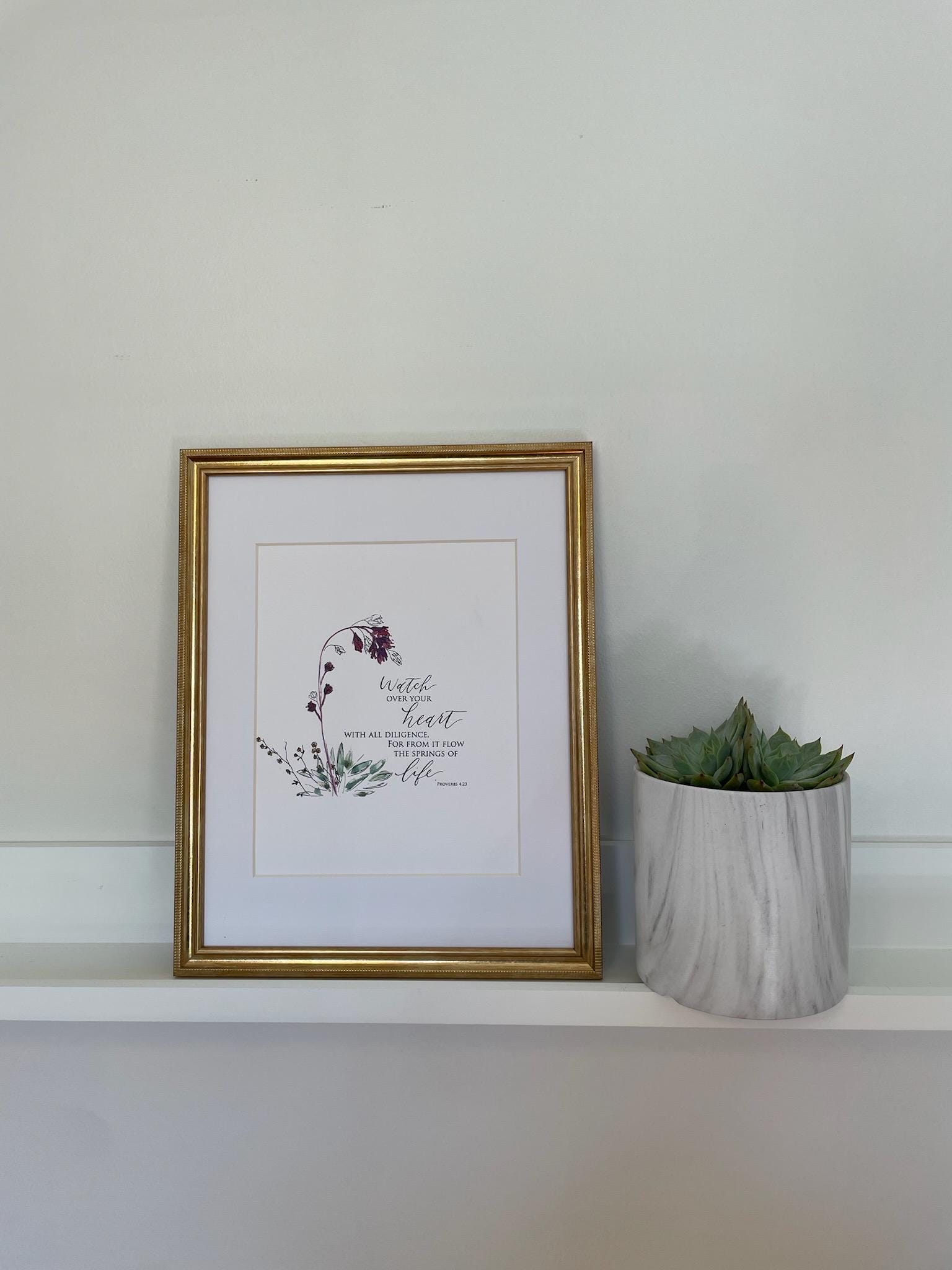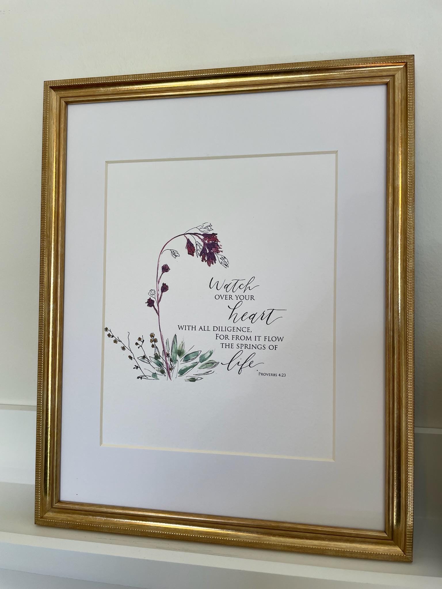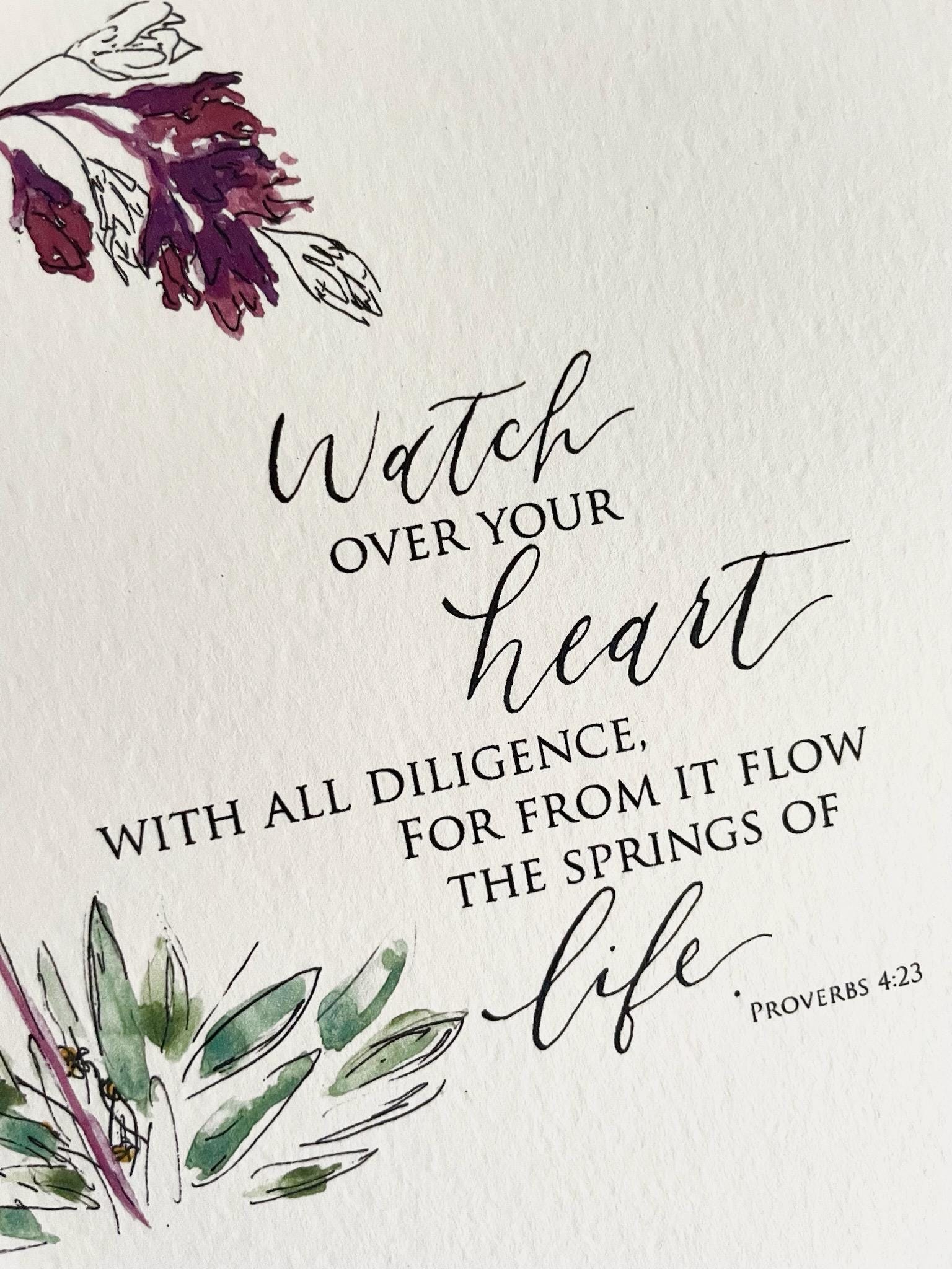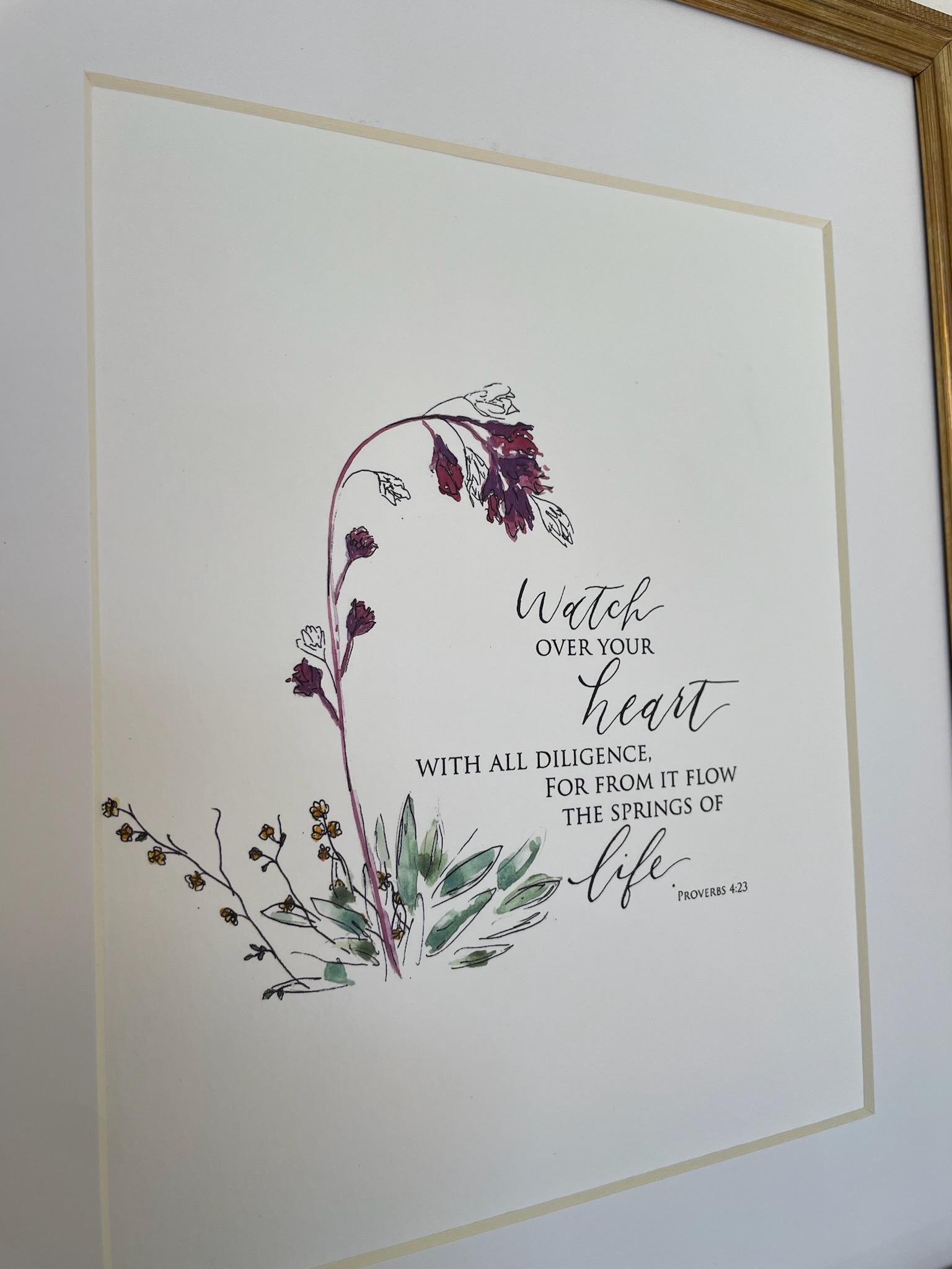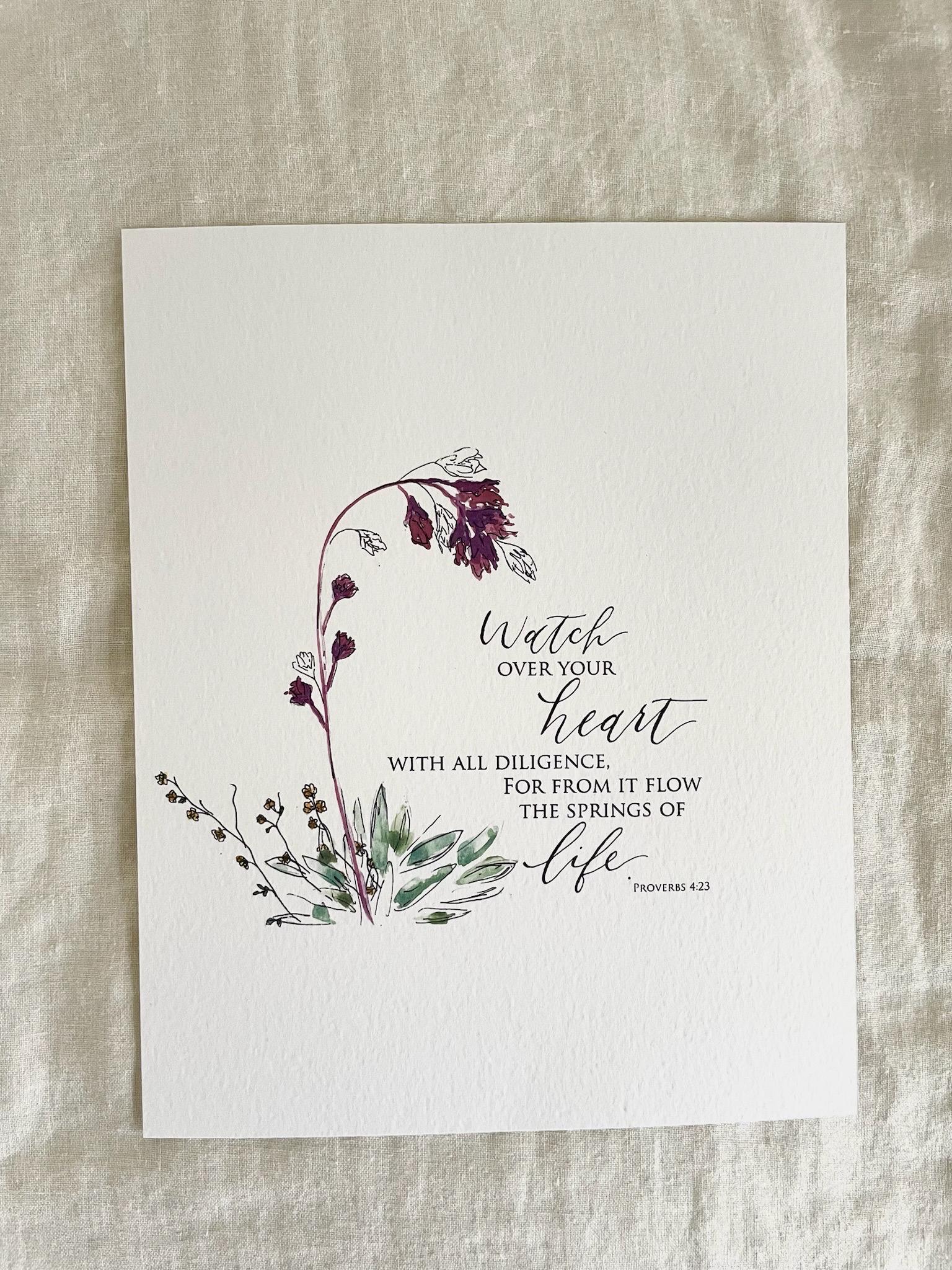 Proverbs 4:23 Scripture Print • Calligraphy, Floral Watercolor Art, Italian Paper