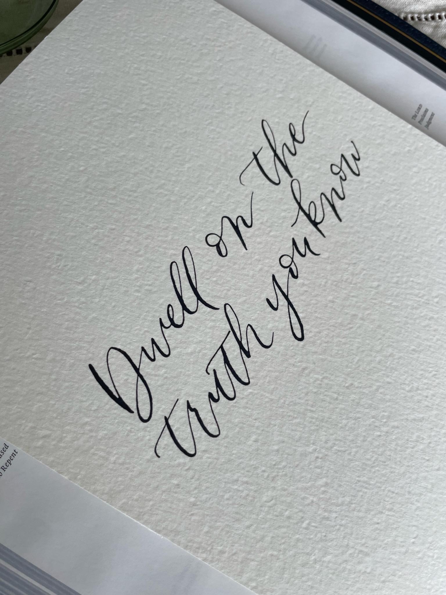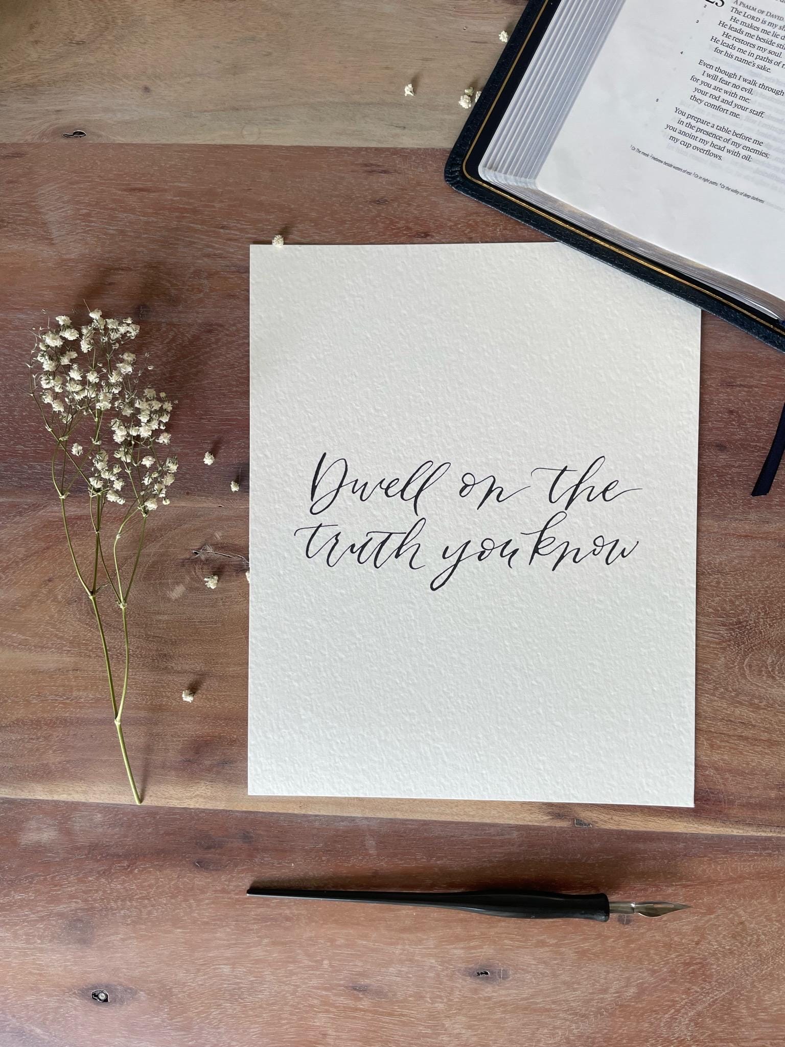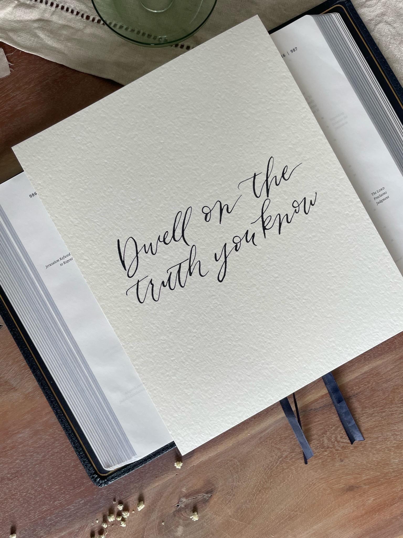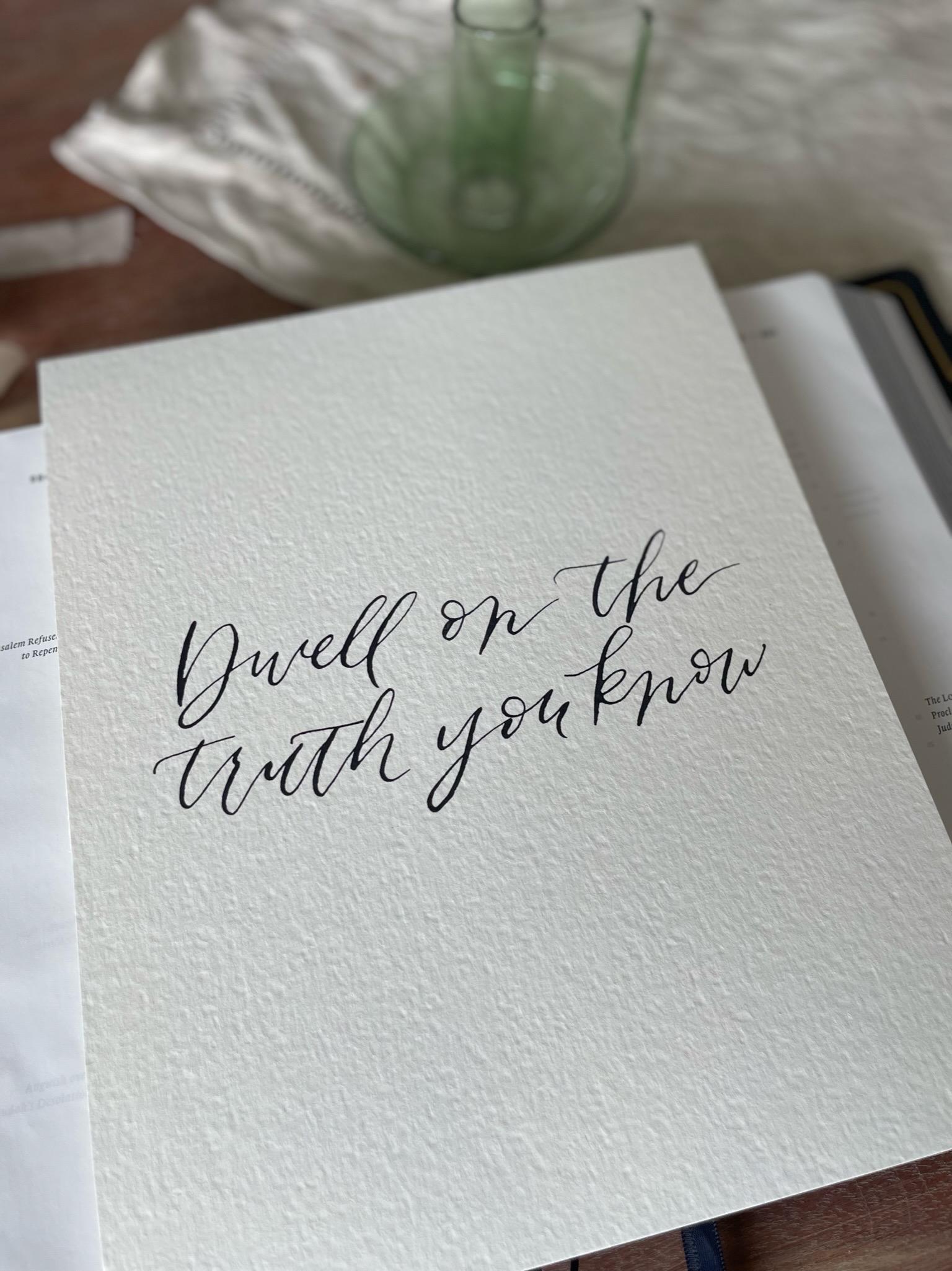 Calligraphy Christian Quote • Dwell on the truth, Italian Cotton Paper, Christian Wall Art