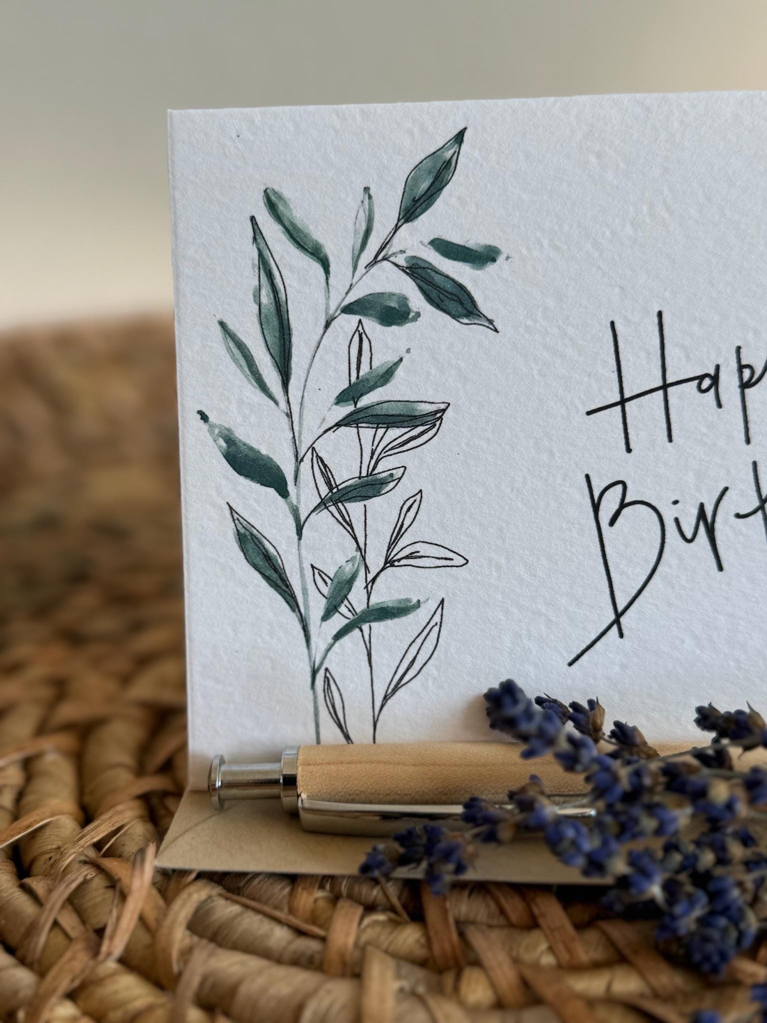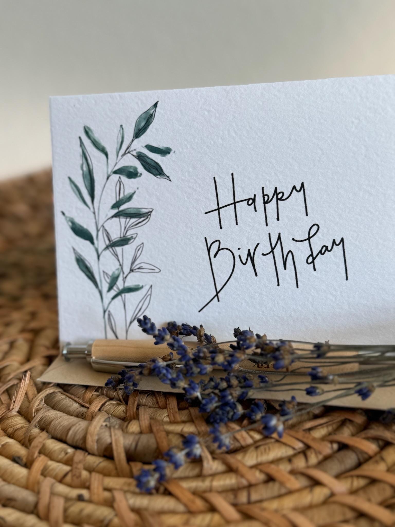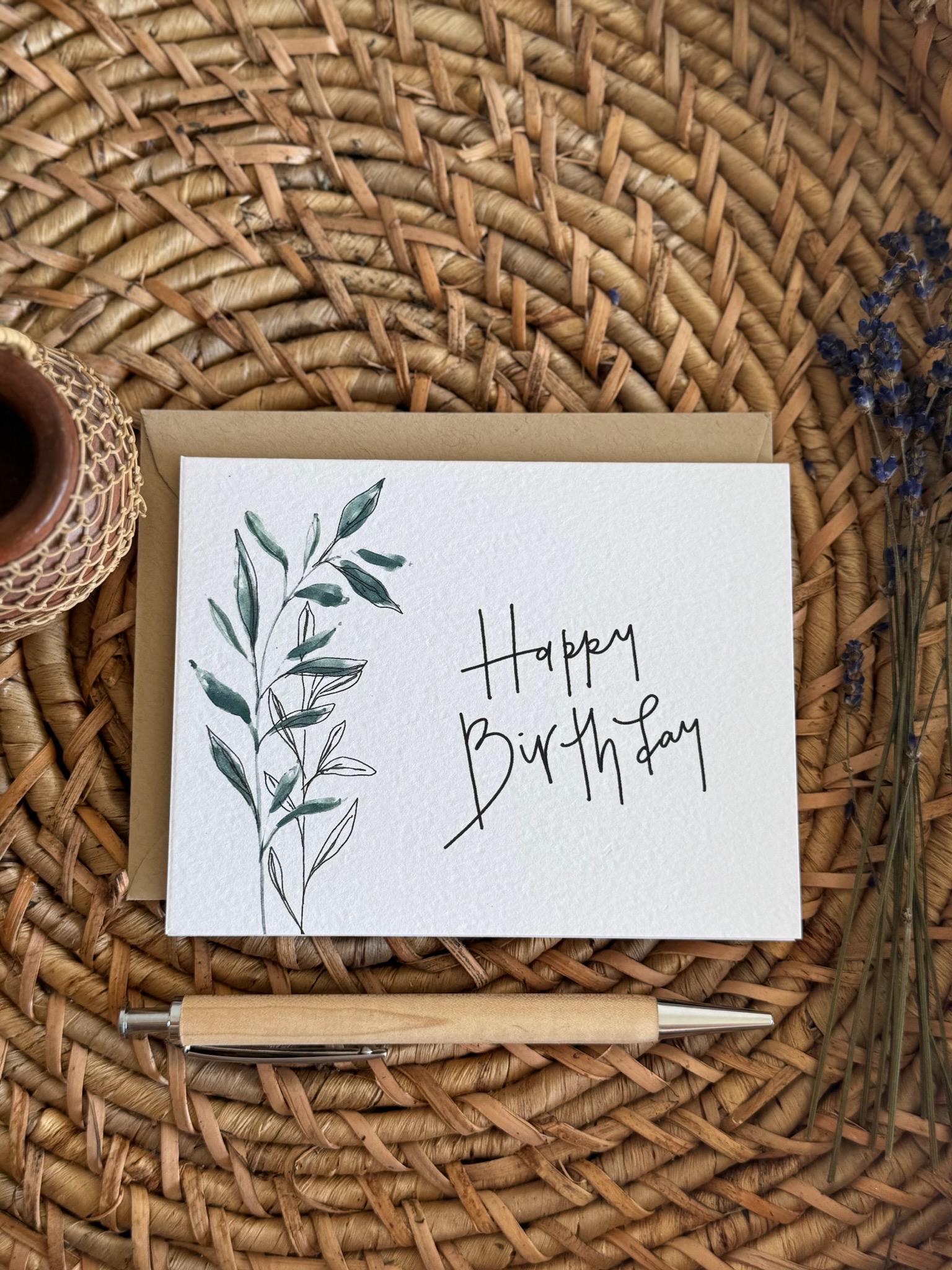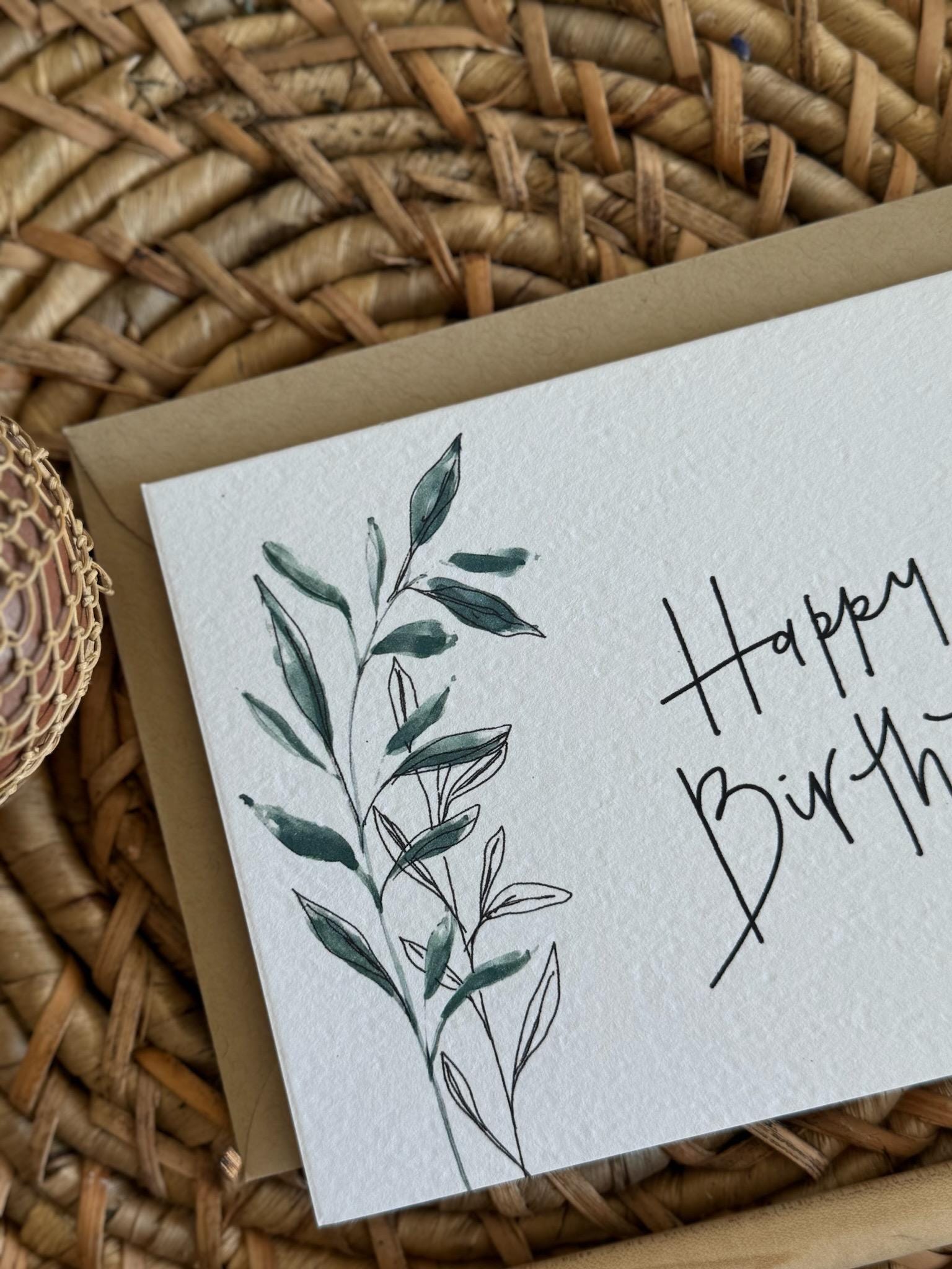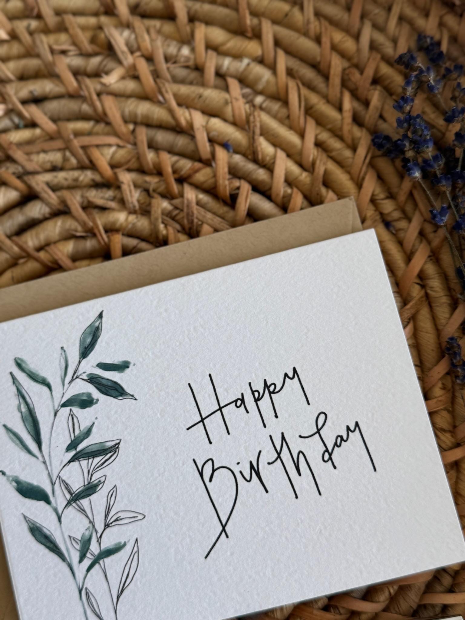 Happy Birthday Greeting Card • Calligraphy, Floral Watercolor, Italian Paper