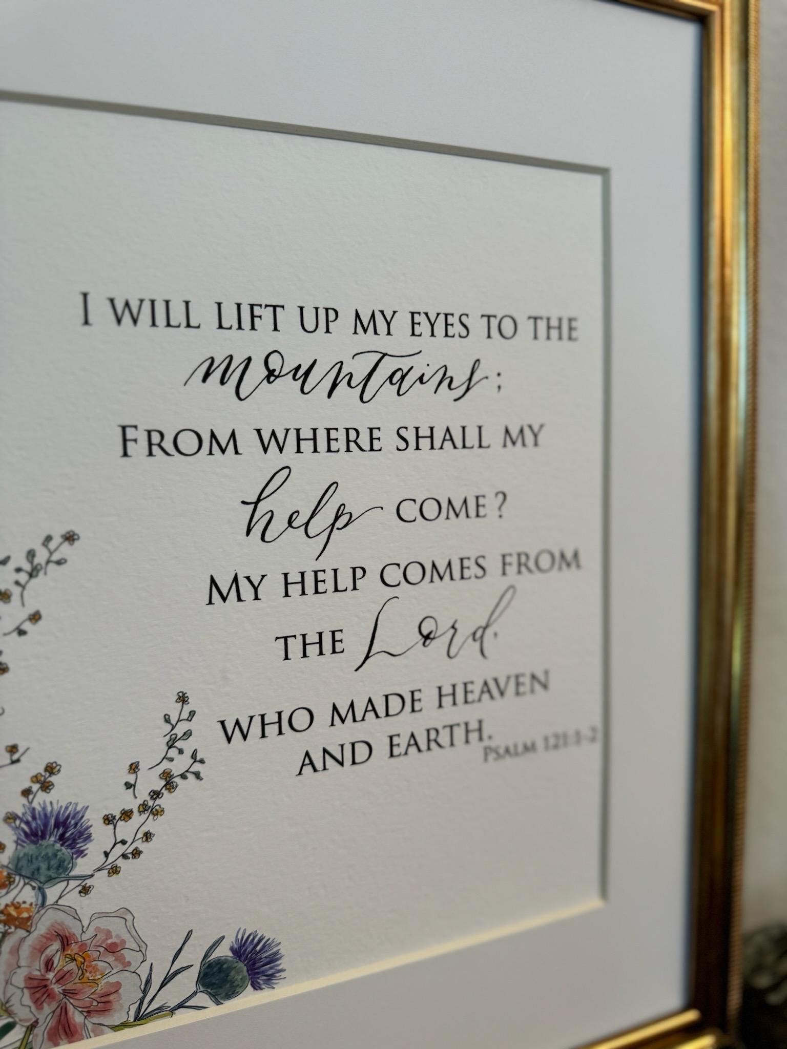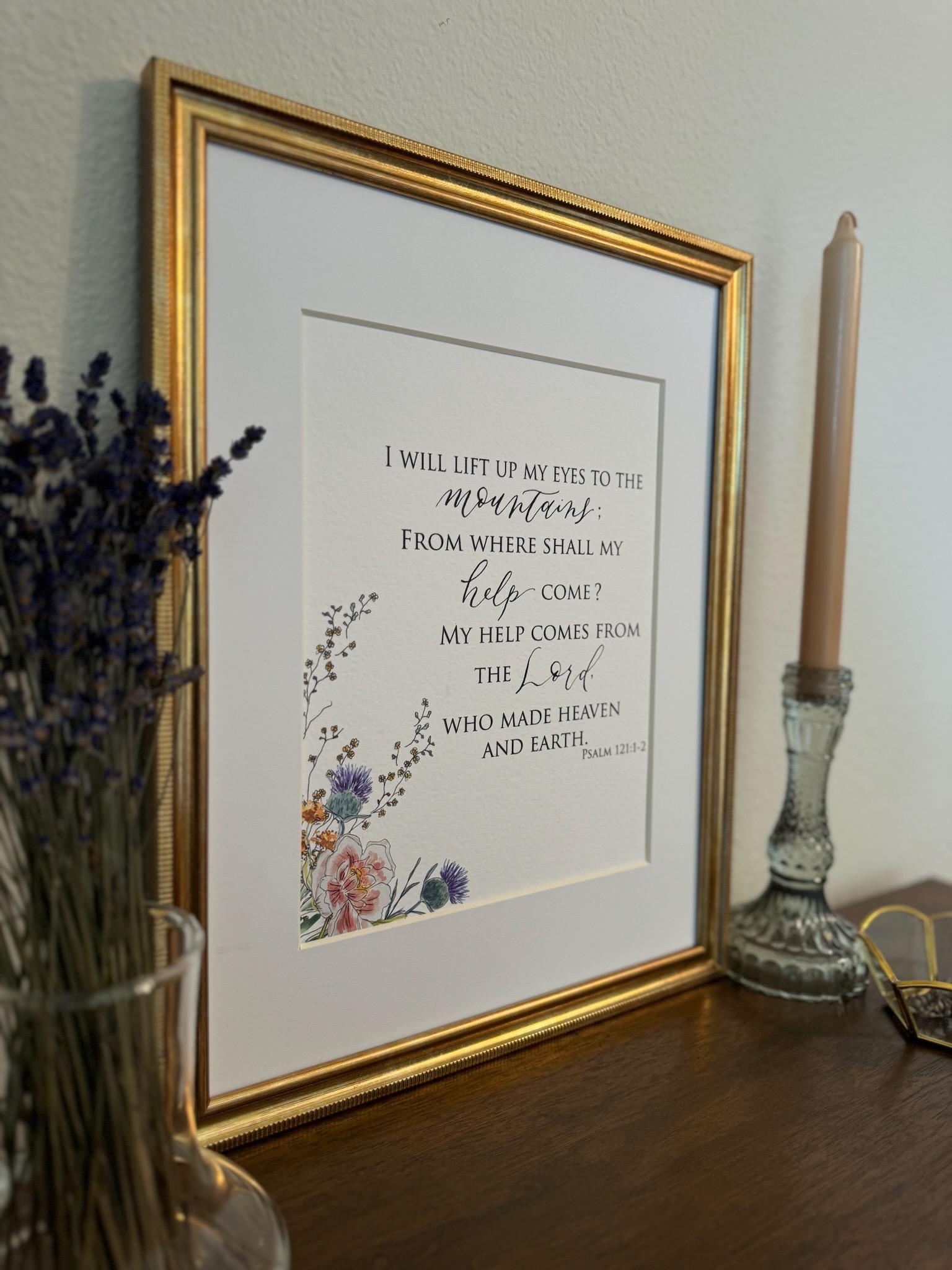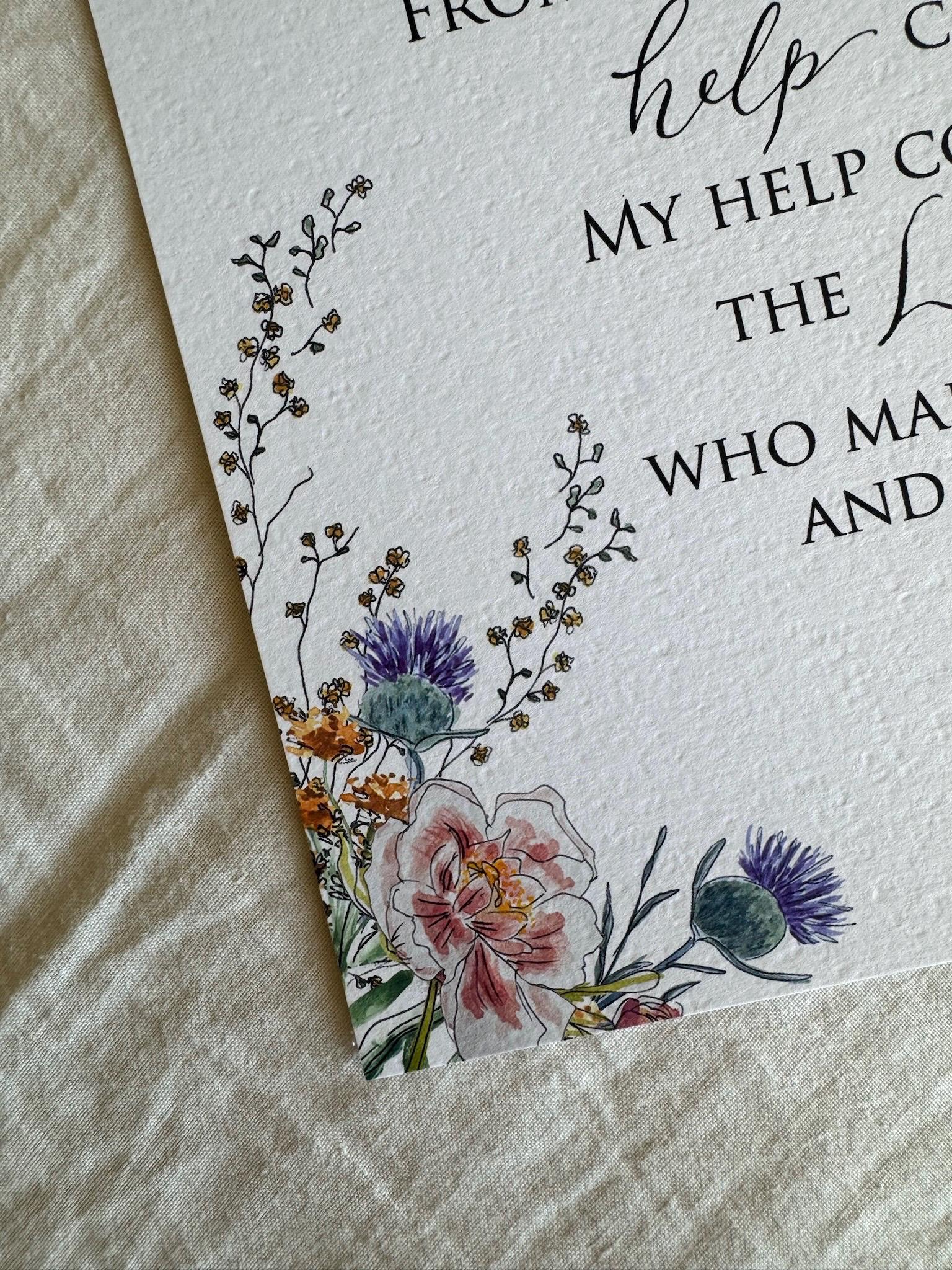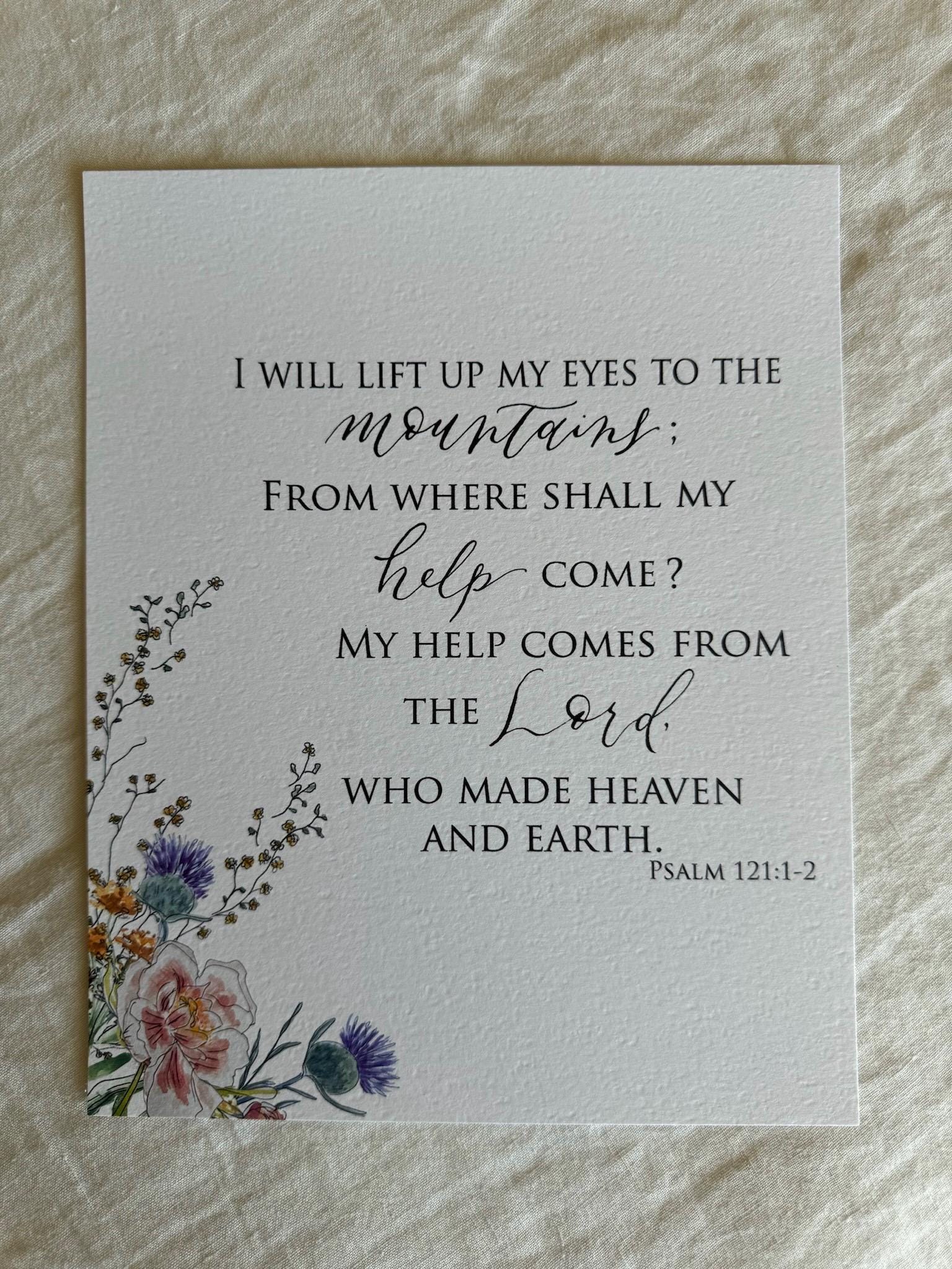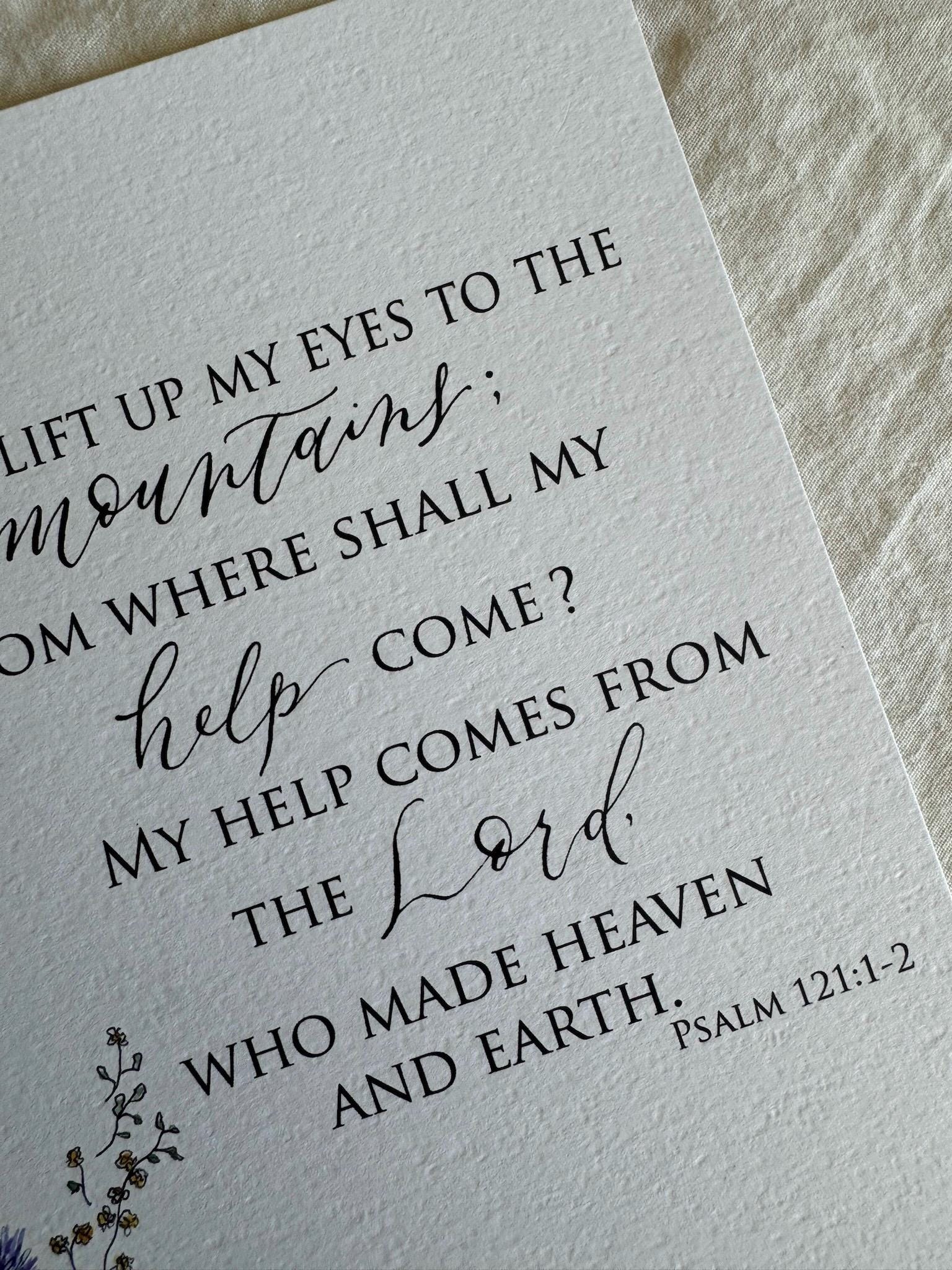 Psalm 121:1-2 Scripture Print • Calligraphy, Floral Watercolor Art, Italian Paper
