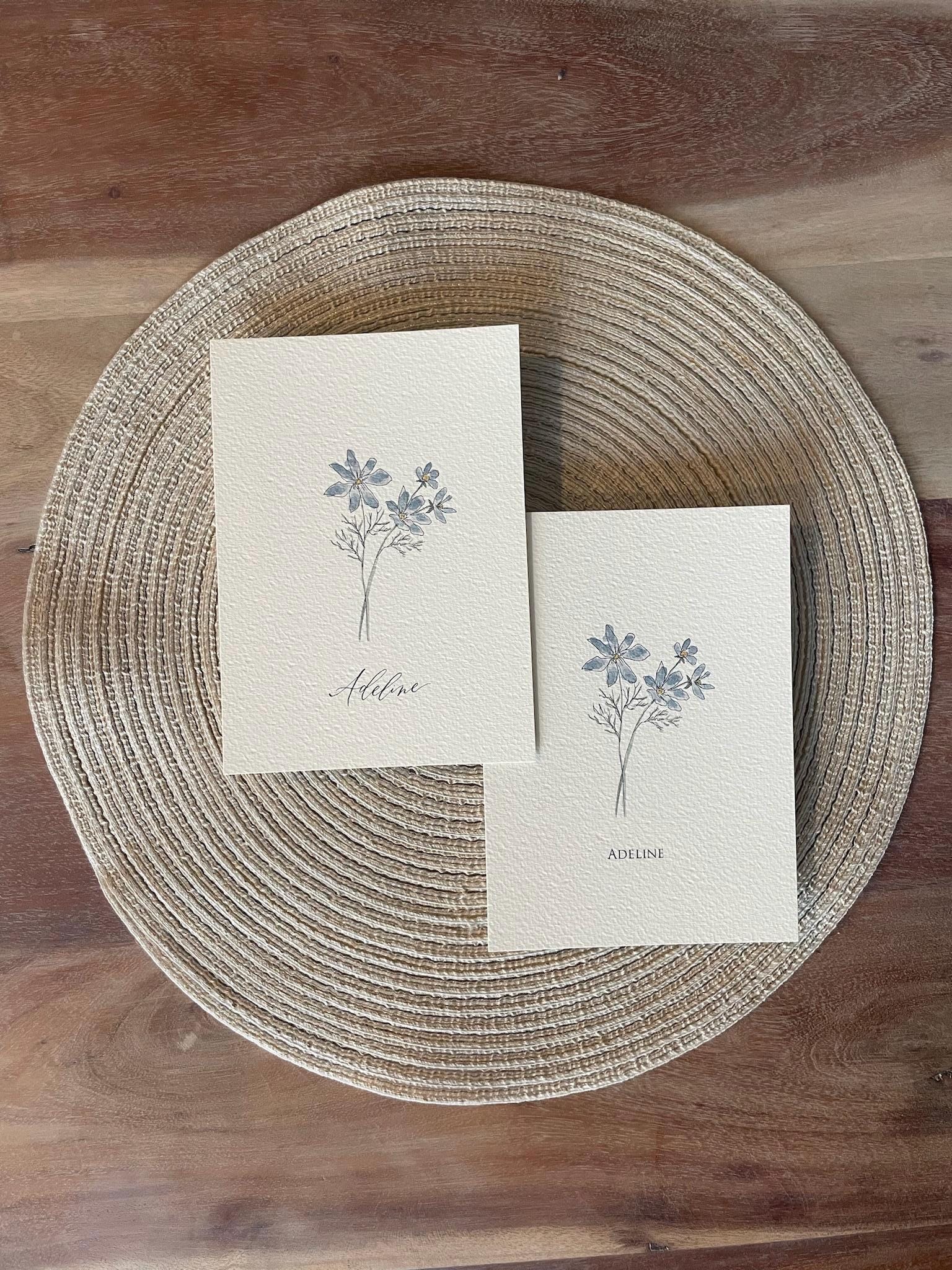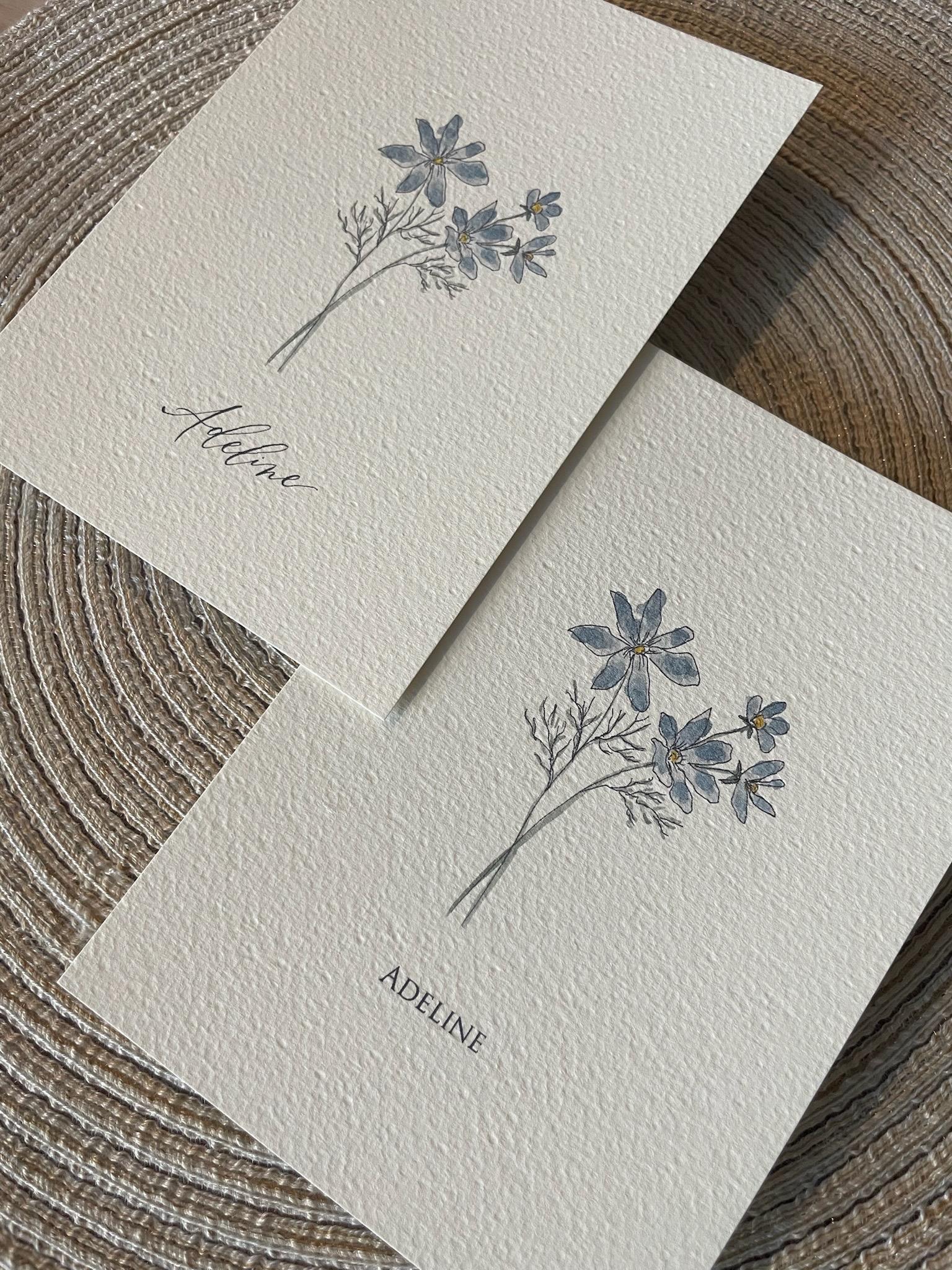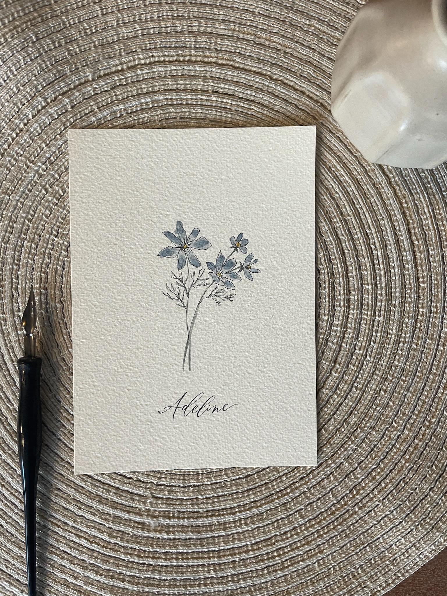 Lara illustrates our floral designs in pen, ink, and watercolor, while Melisa adds the words using dip pen calligraphy. We print each design on premium textured Italian cotton paper for a timeless watercolor feel—creating a beautiful floral print for your home.