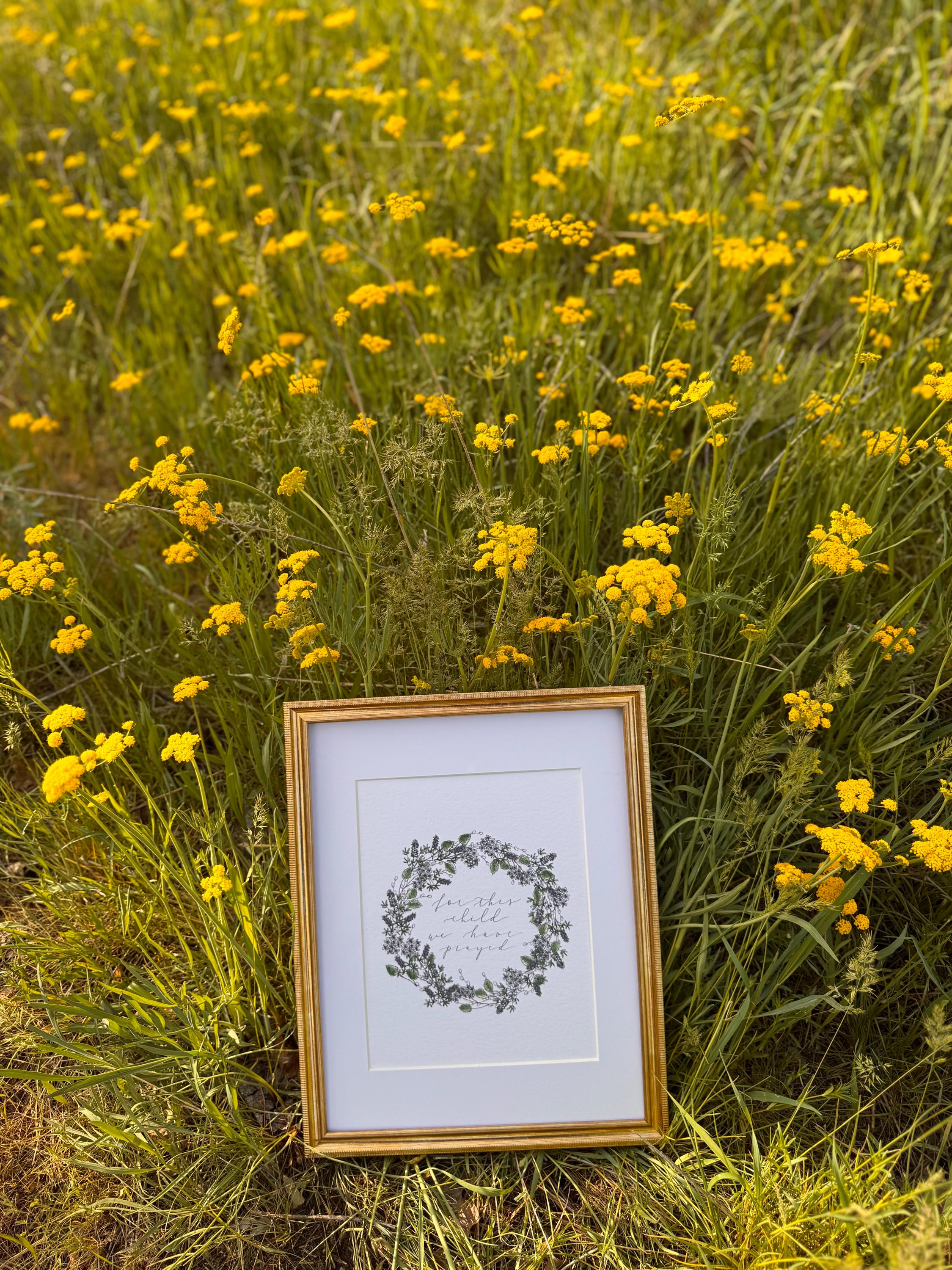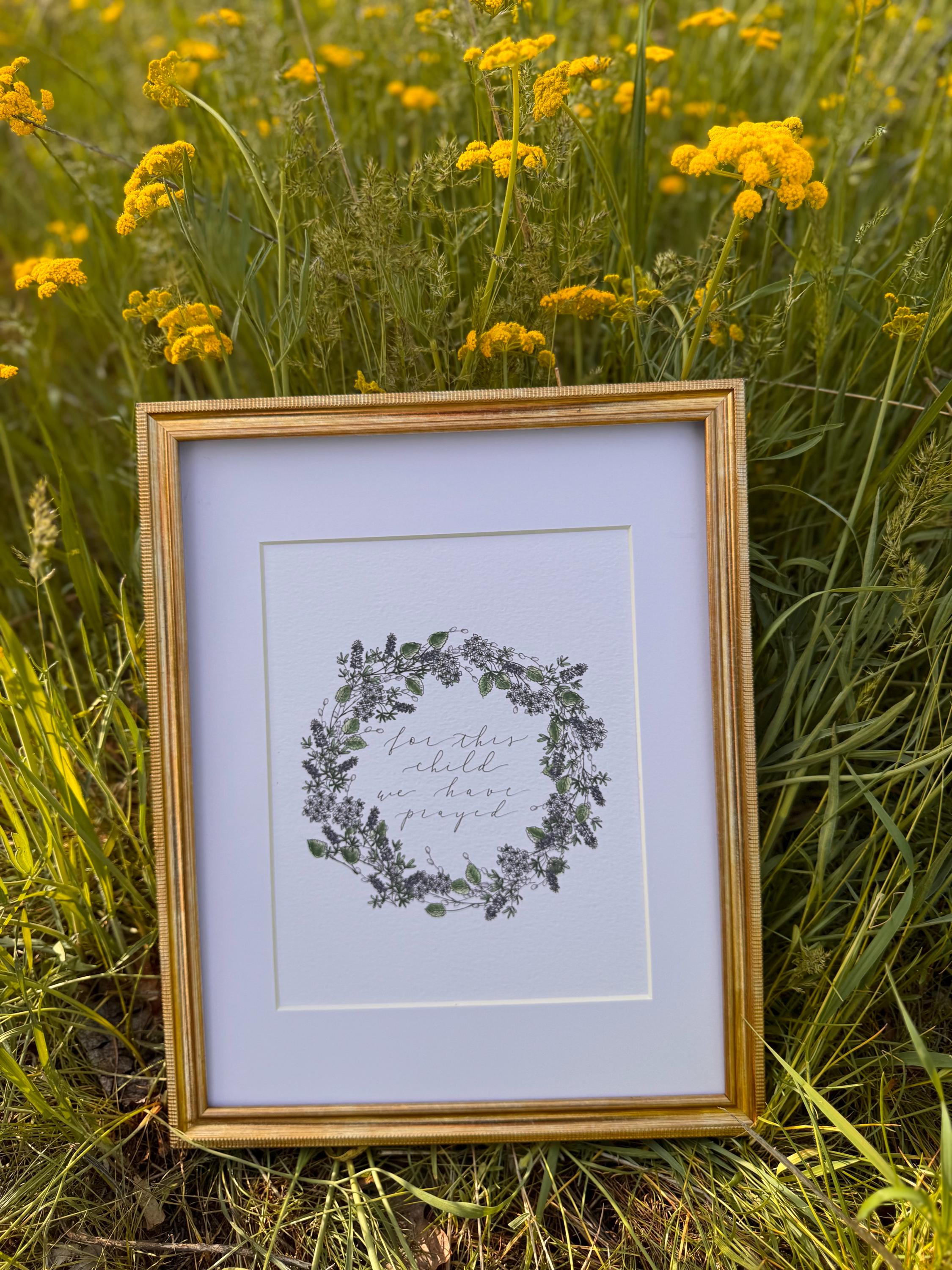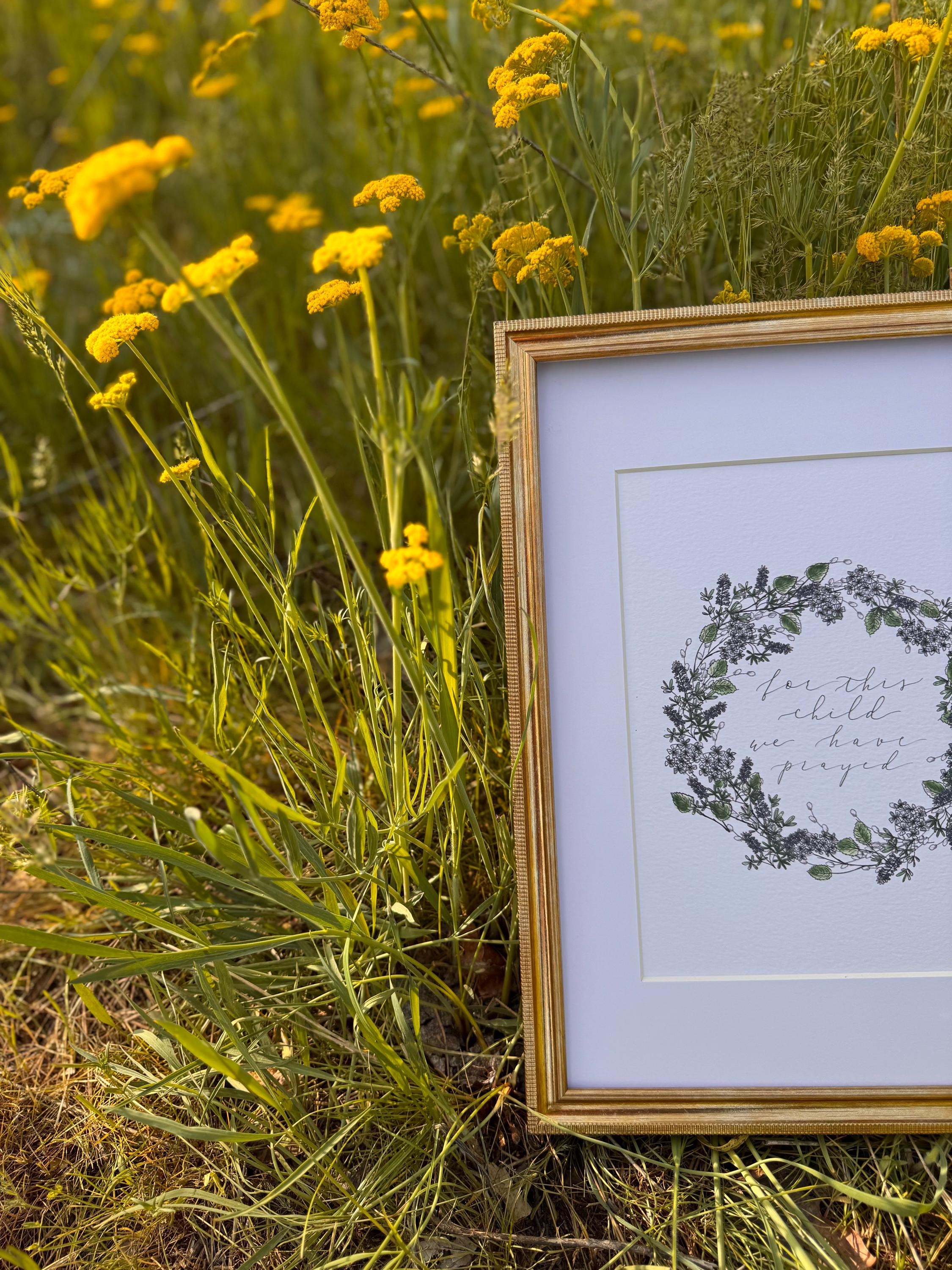 For This Child We Have Prayed: Floral Christian Nursery Print Blue, Italian Paper Calligraphy