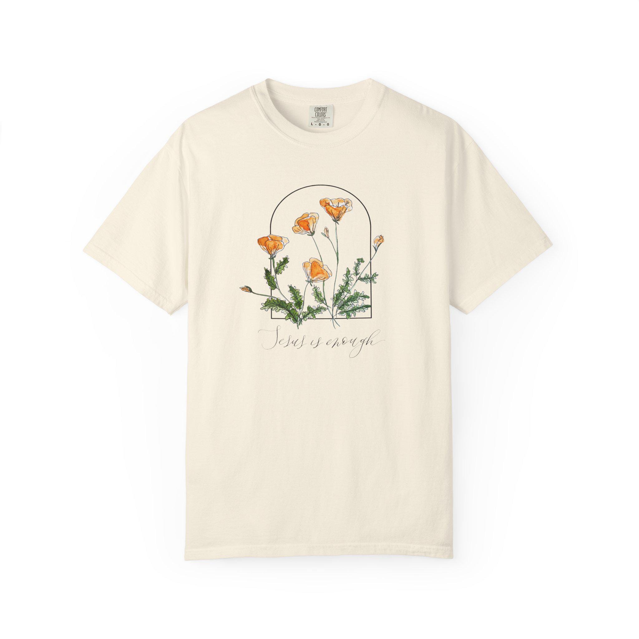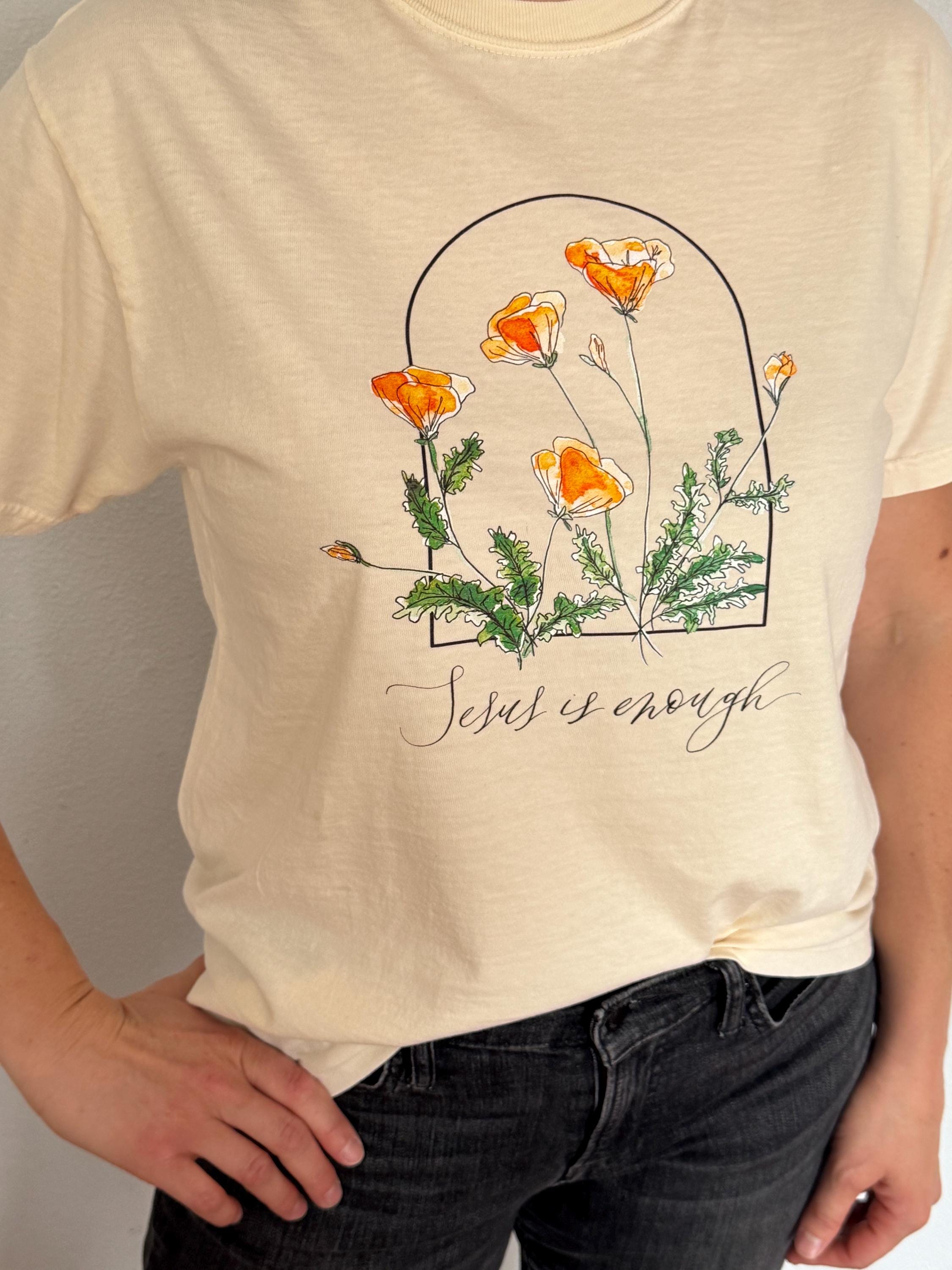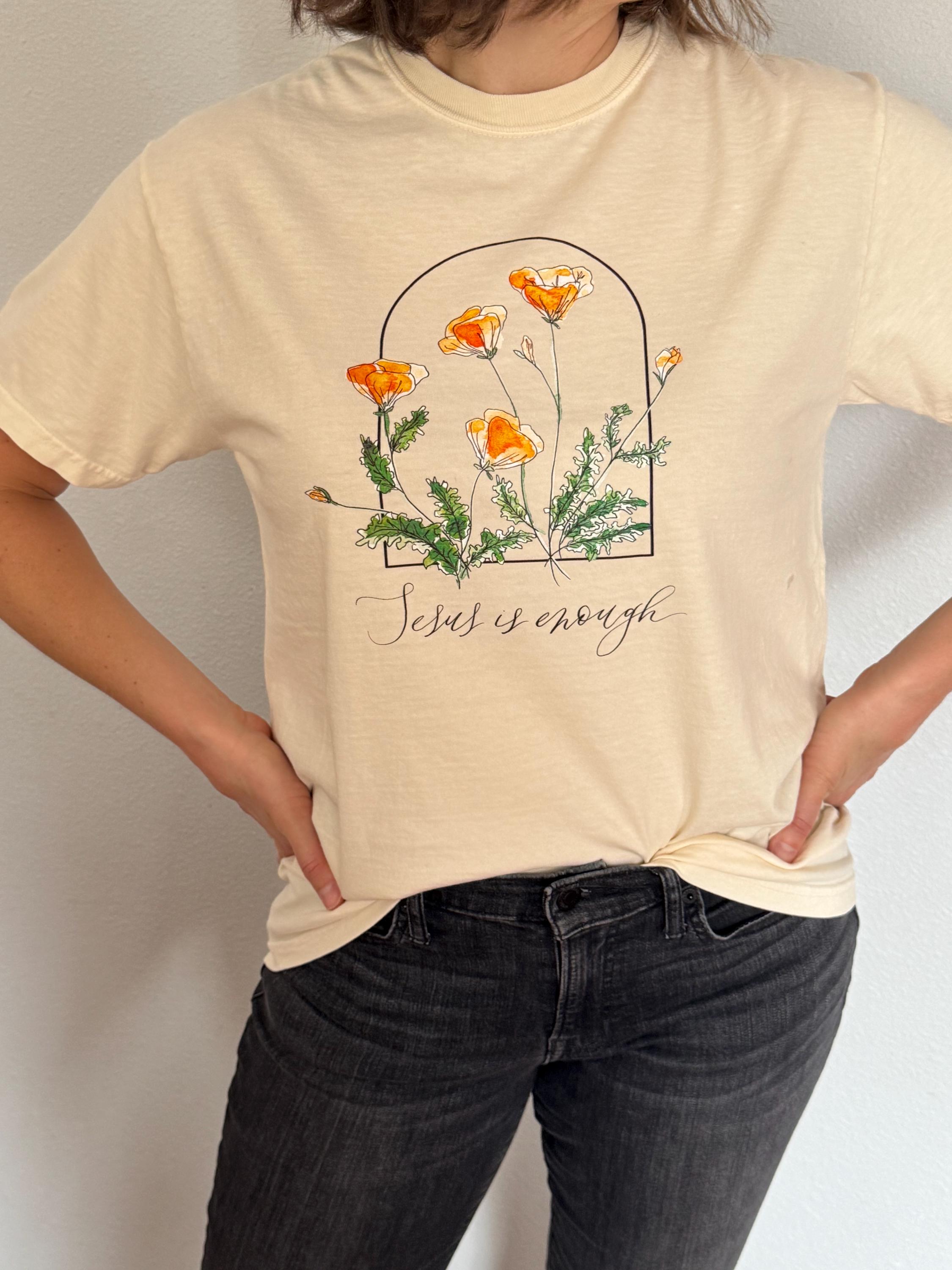 "Jesus is Enough" T-shirt with California Poppies