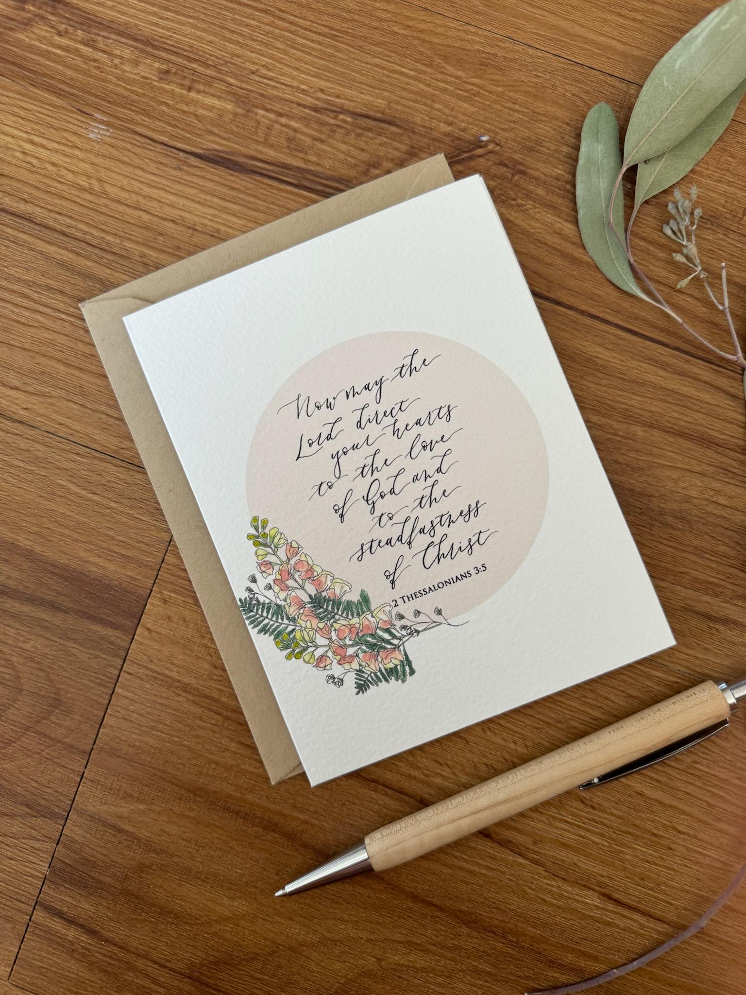 “Now, may the Lord direct your hearts to the love of God and to the steadfastness of Christ.” 2 Thessalonians 3:5