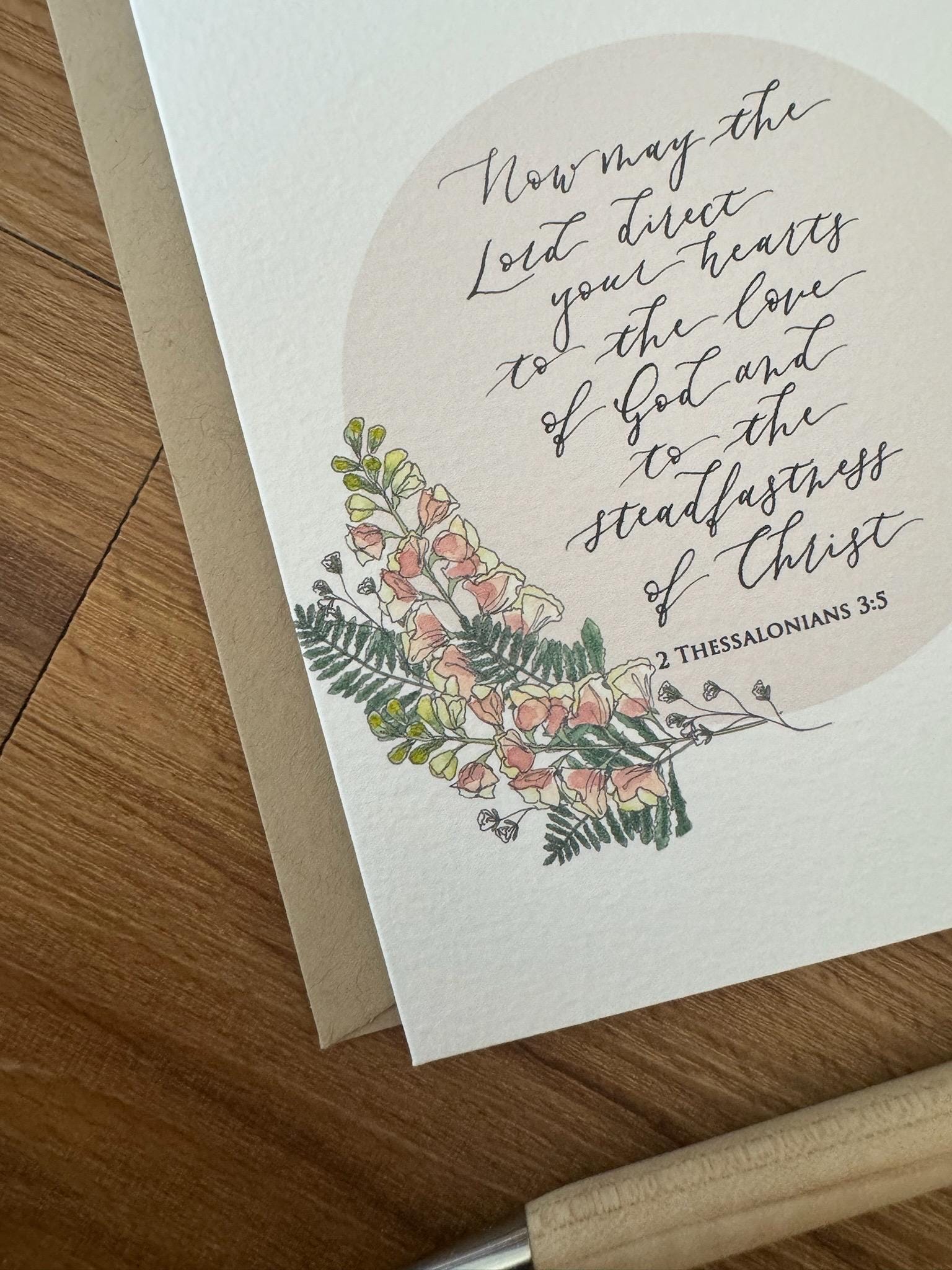 Lara creates our beautiful floral designs using pen & ink and watercolors. Melisa uses dip pen calligraphy to write the Scripture. We bring the two together and print them on textured Italian cotton-content paper that closely resembles the textured feel of watercolor paper. The end product is a beautiful floral Scripture print for your home!