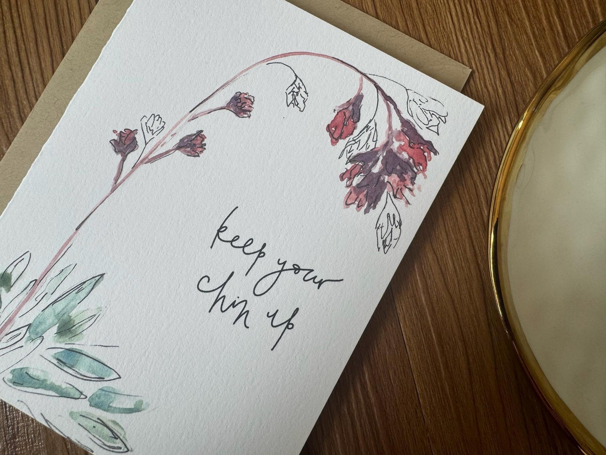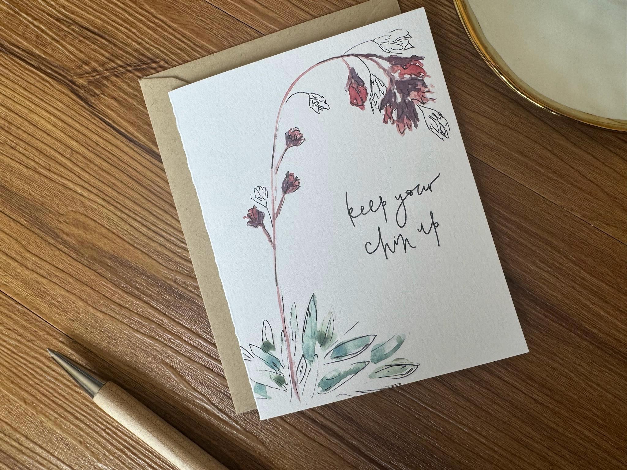 Keep Your Chin Up Floral Greeting Card: Watercolor Hand-Lettered Encouragement