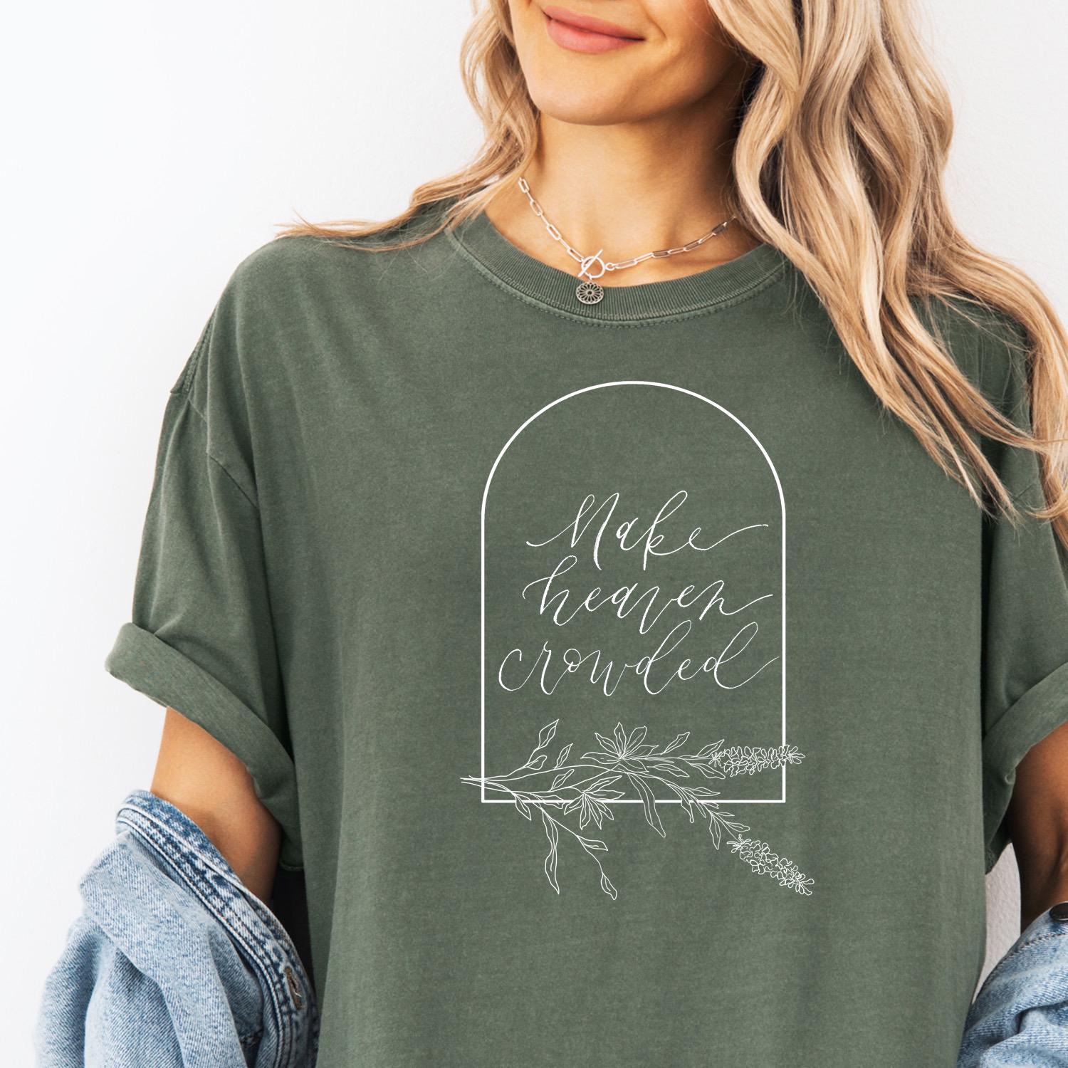 Make Heaven Crowded Comfort Colors® Floral Christian T-Shirt with White Design