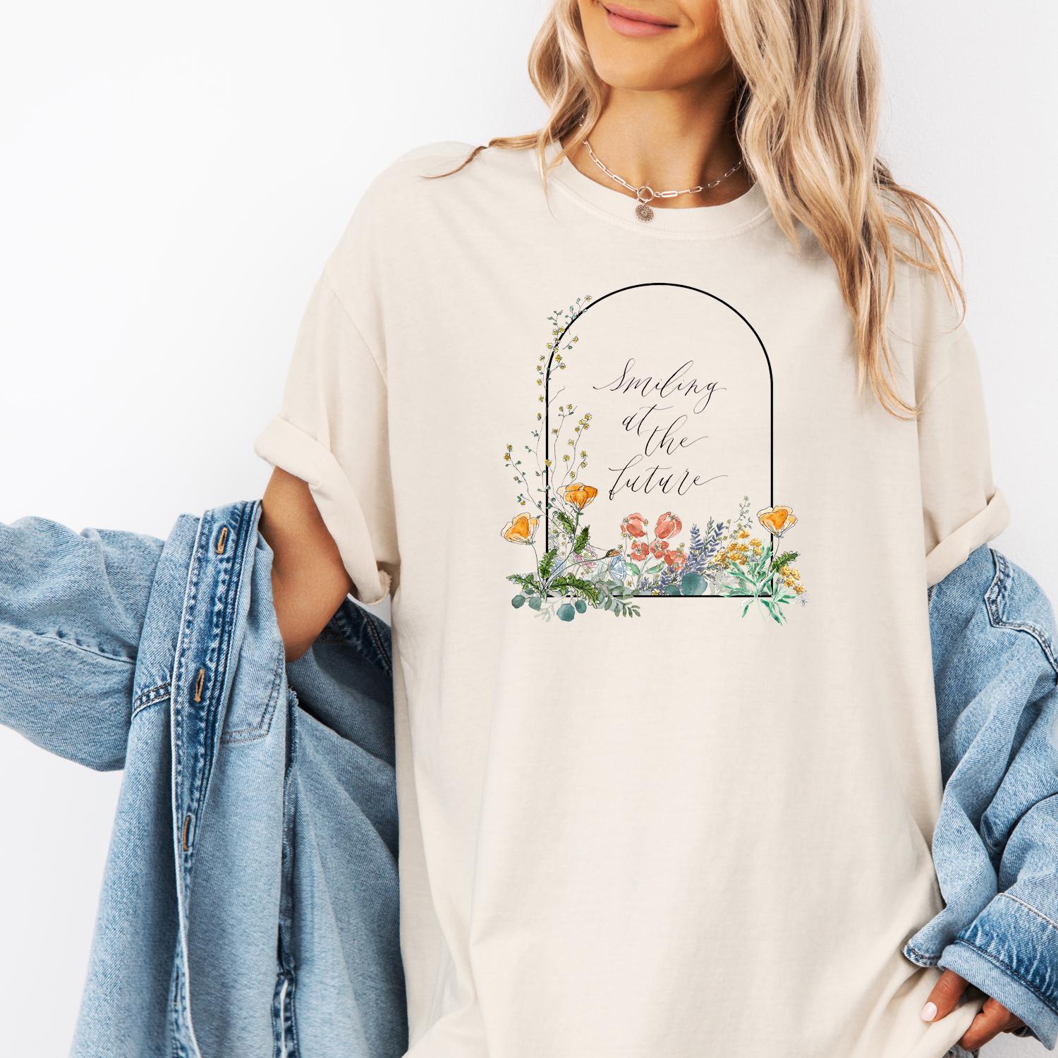 "Smiling at the Future " Proverbs 31 T-shirt with Wildflowers