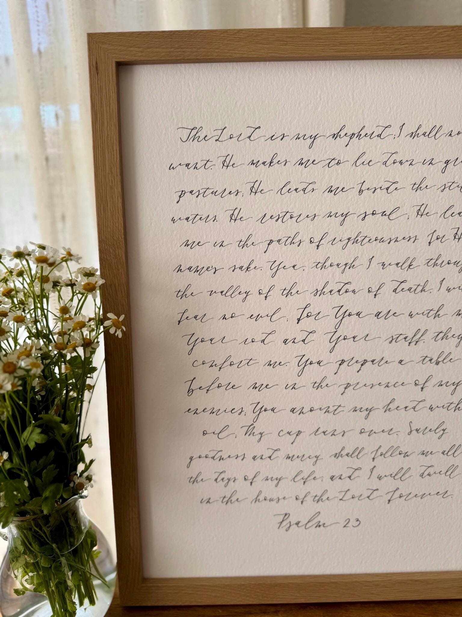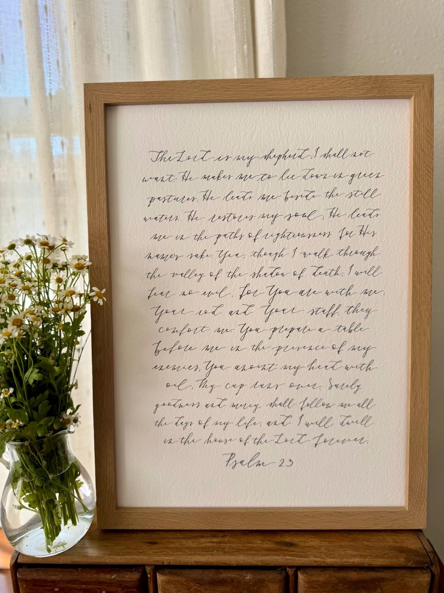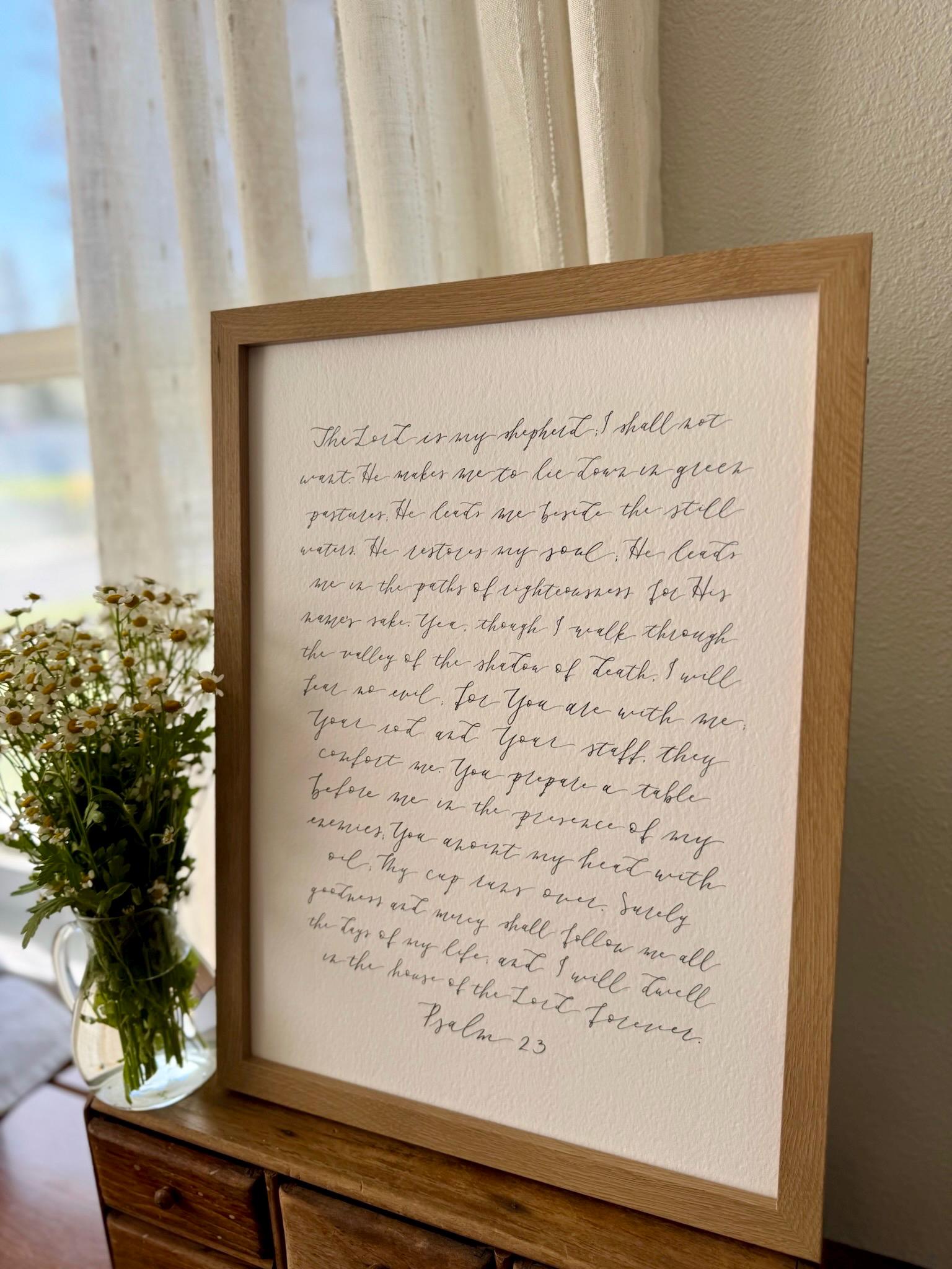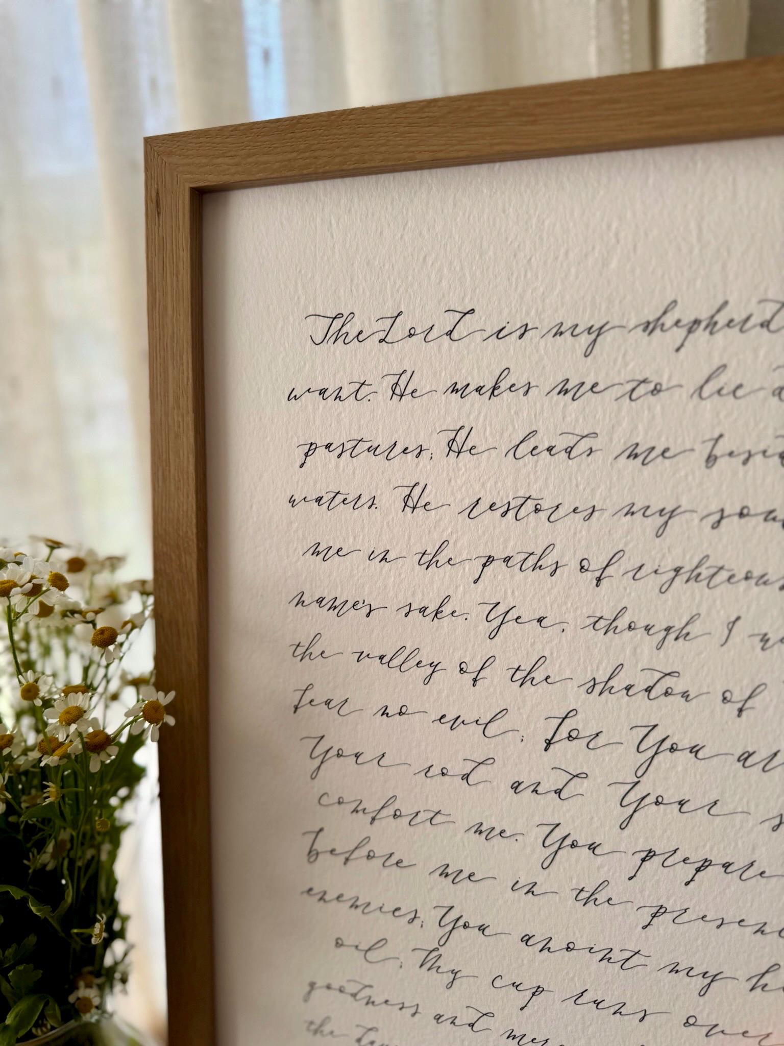 11x14" Psalm 23 Italian Paper Scripture Print in Calligraphy