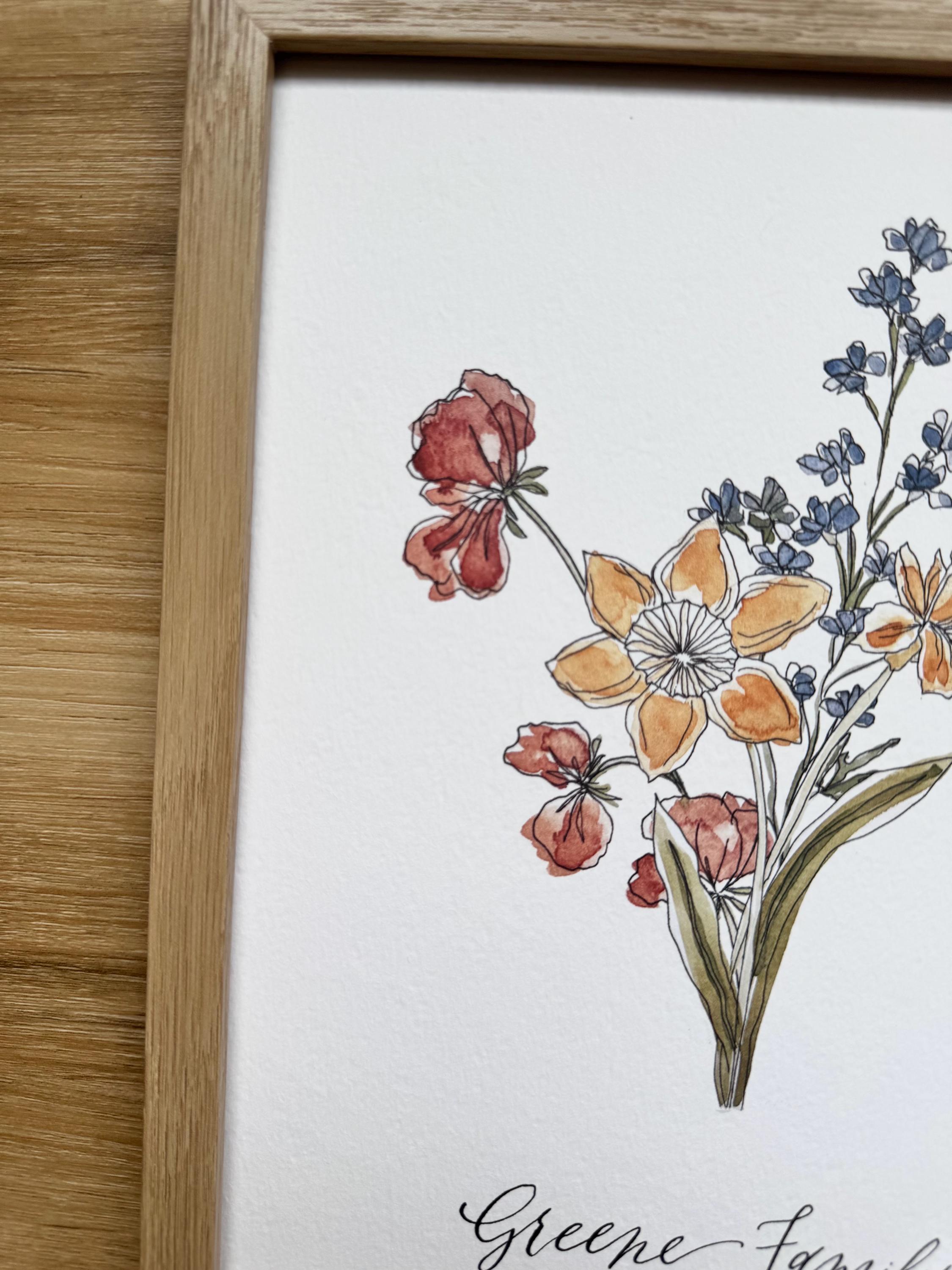 Custom Birth Month Floral Print • Watercolor Family Bouquet, Calligraphy Art