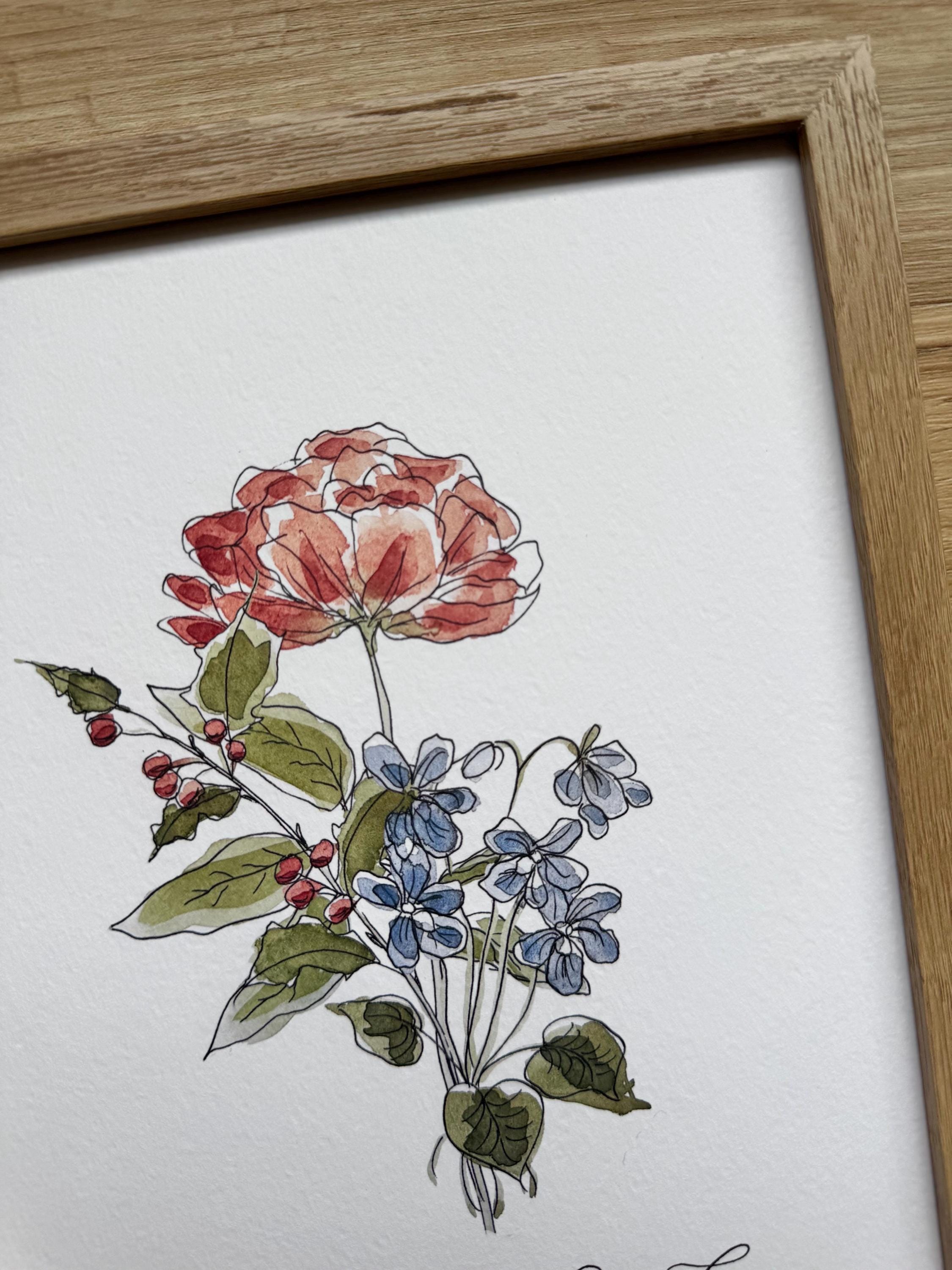 Lara illustrates our floral designs in pen, ink, and watercolor, while Melisa adds the words using dip pen calligraphy. We print each design on premium textured Italian cotton paper for a timeless watercolor feel—creating a beautiful floral print for your home.