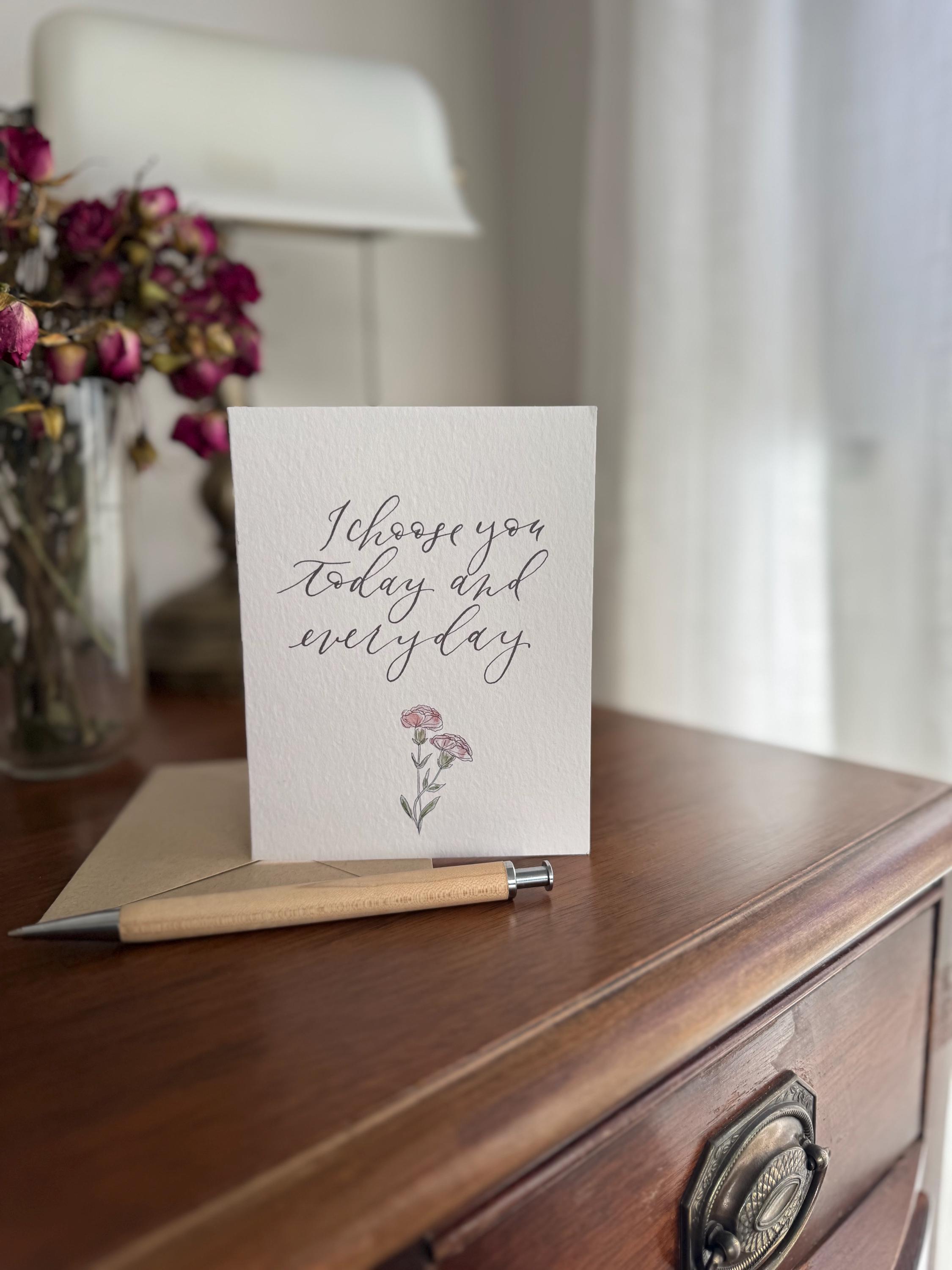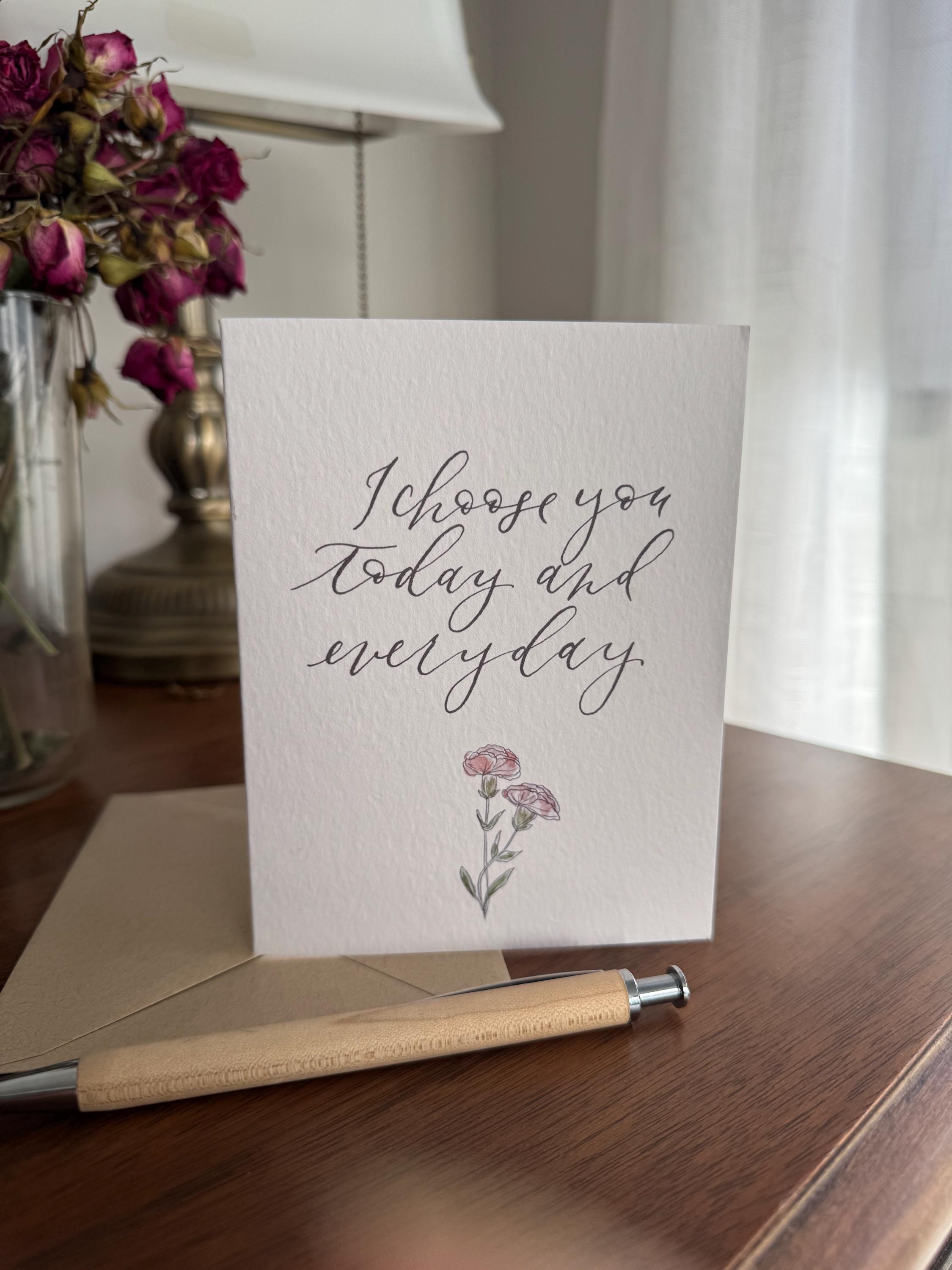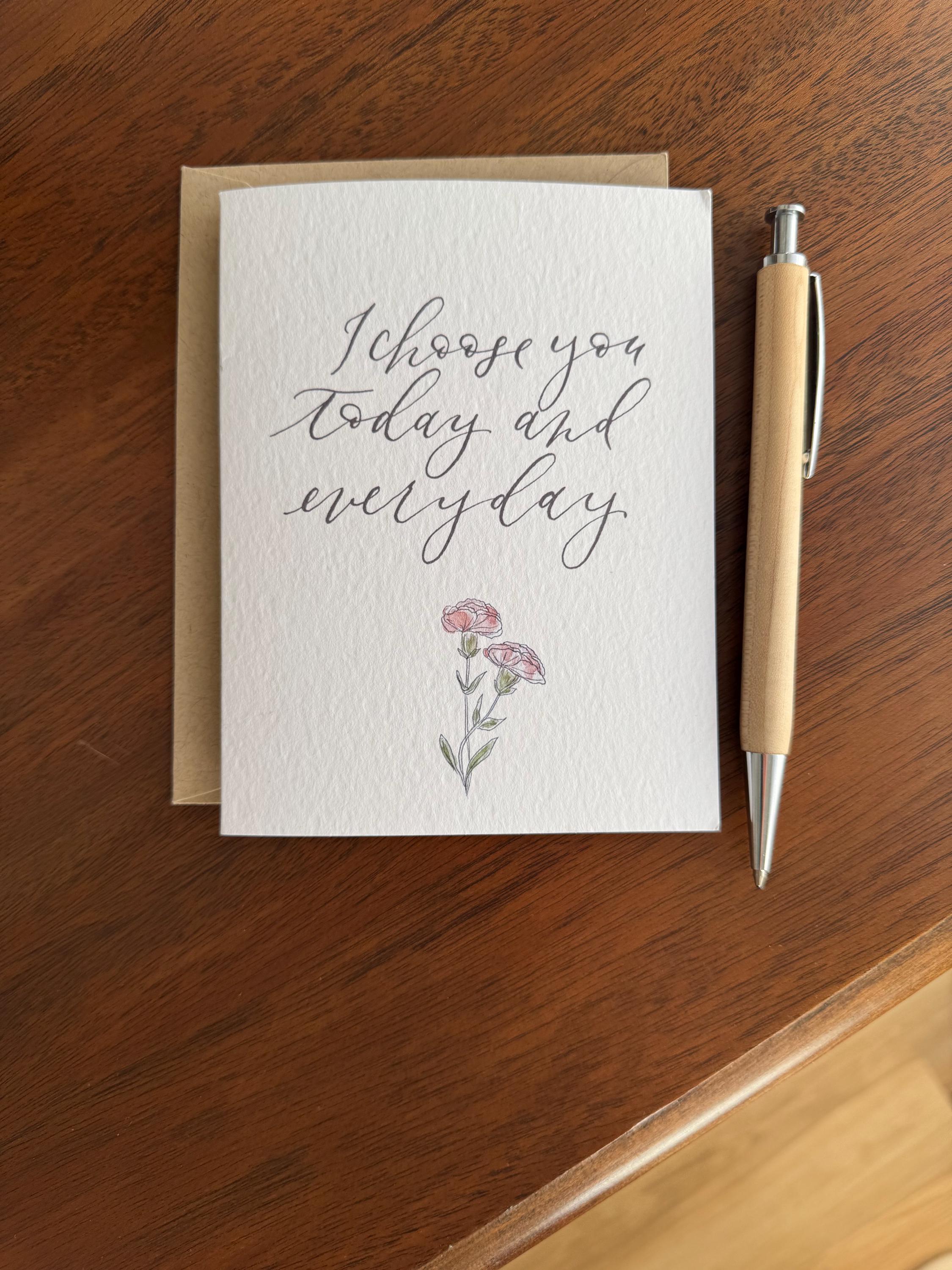 I Choose You Today and Every Day: Watercolor Calligraphy Greeting Card on Italian Paper