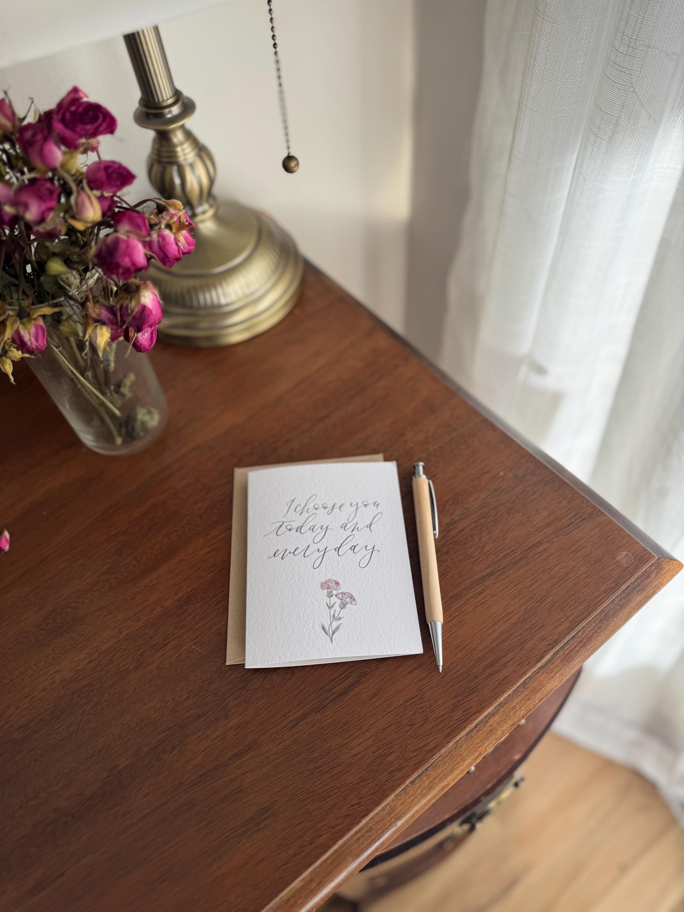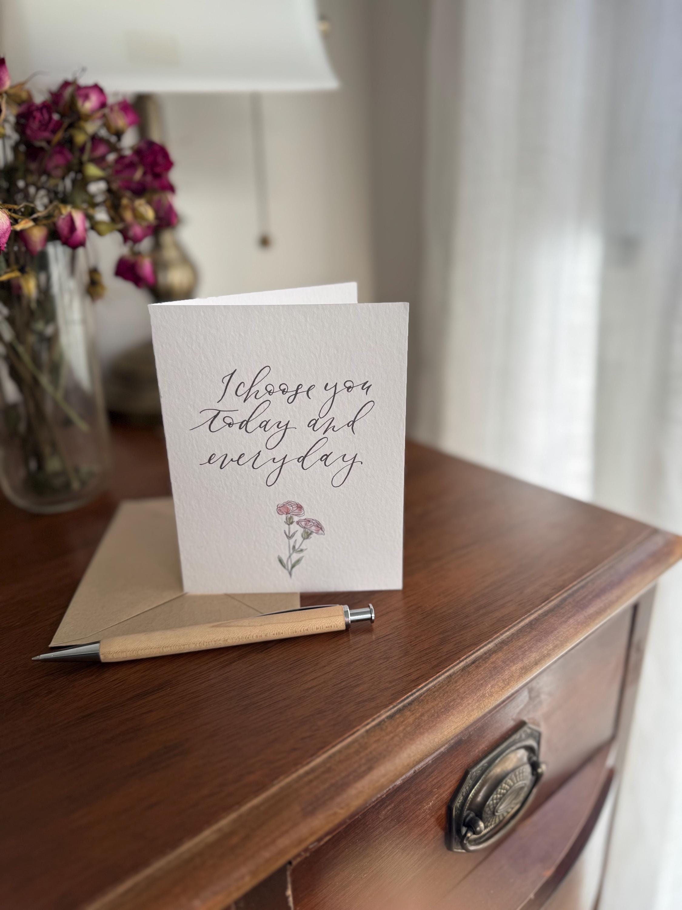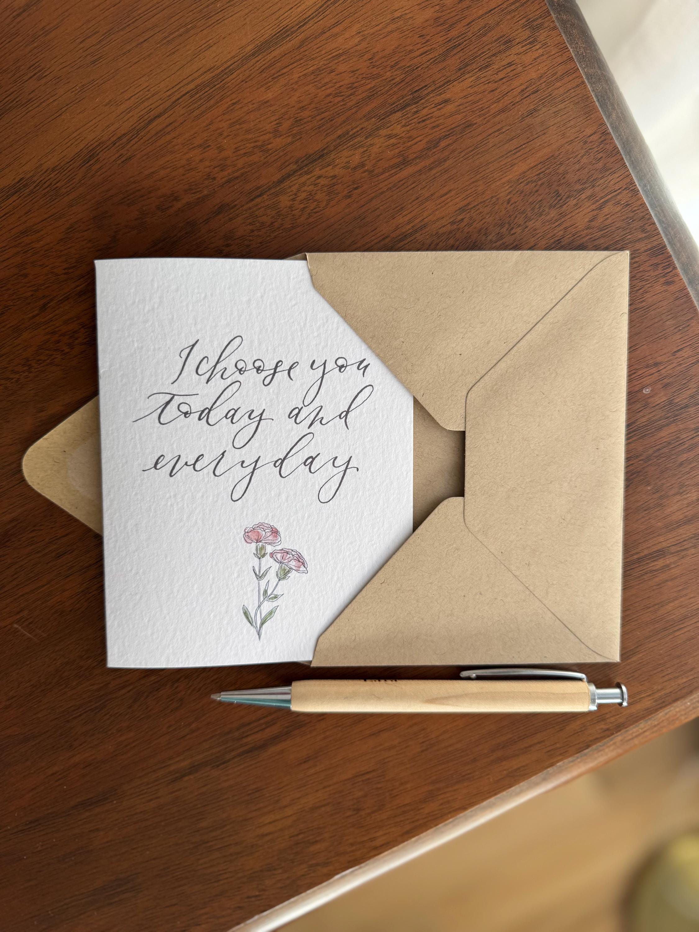 I Choose You Today and Every Day: Watercolor Calligraphy Greeting Card on Italian Paper