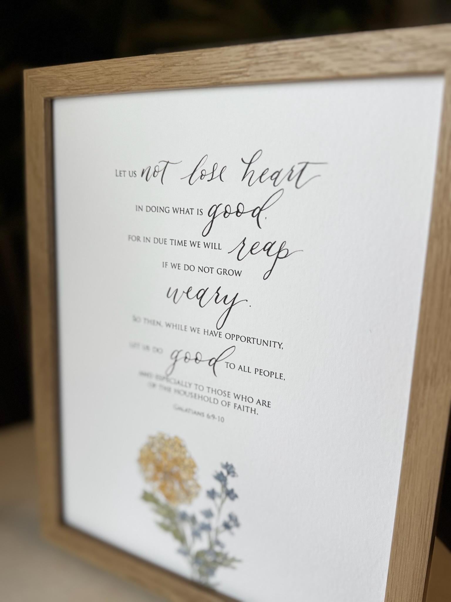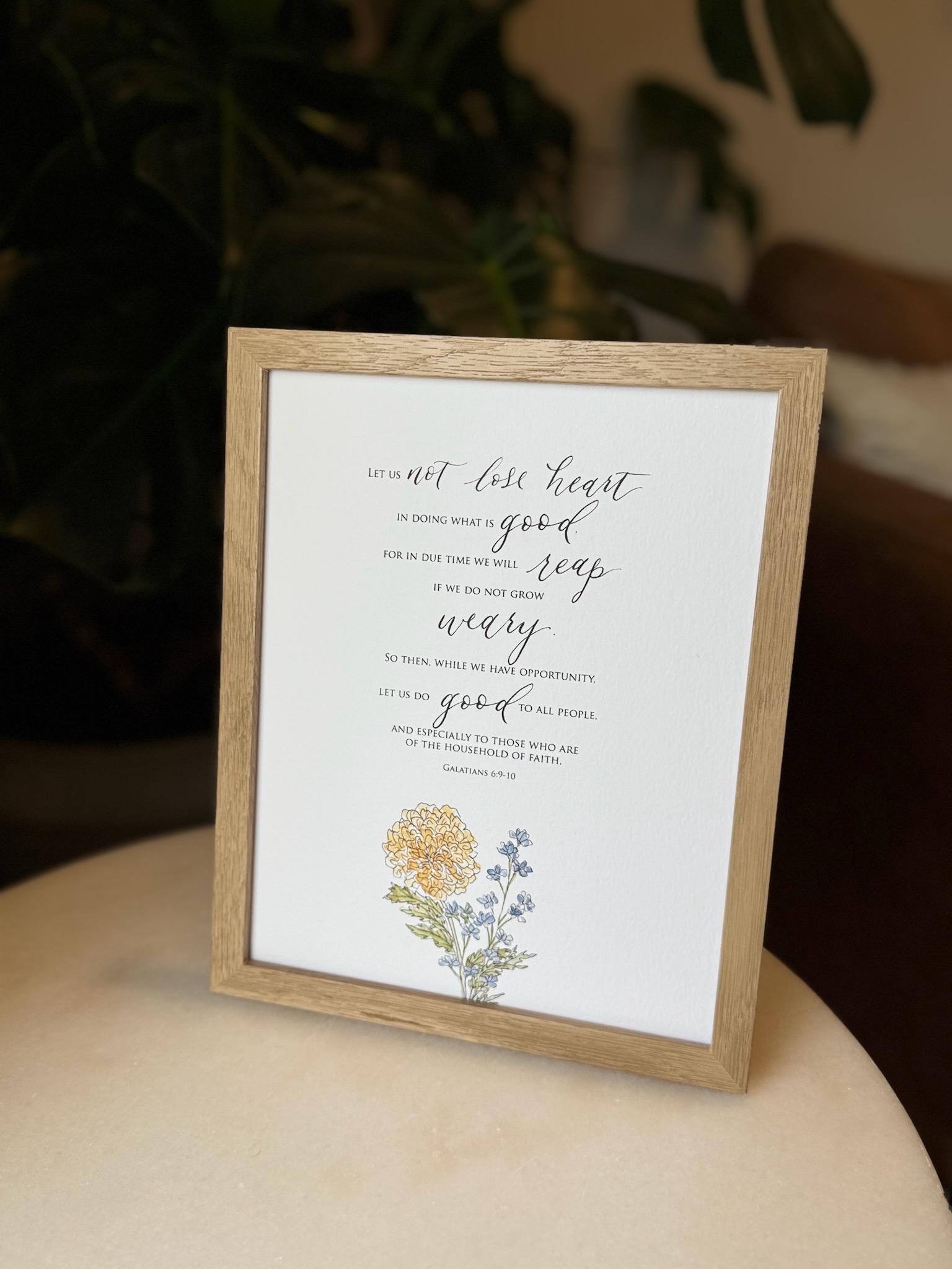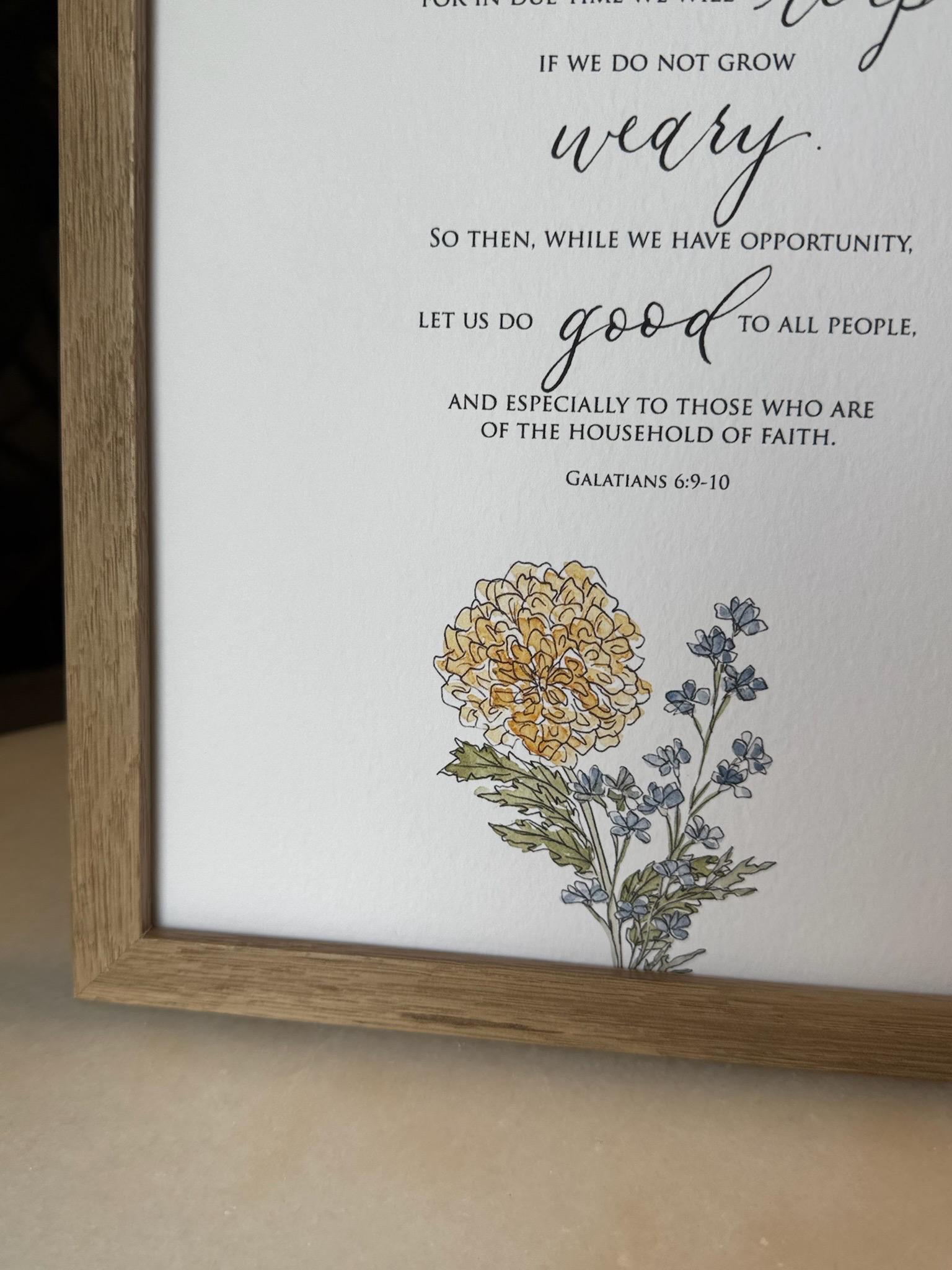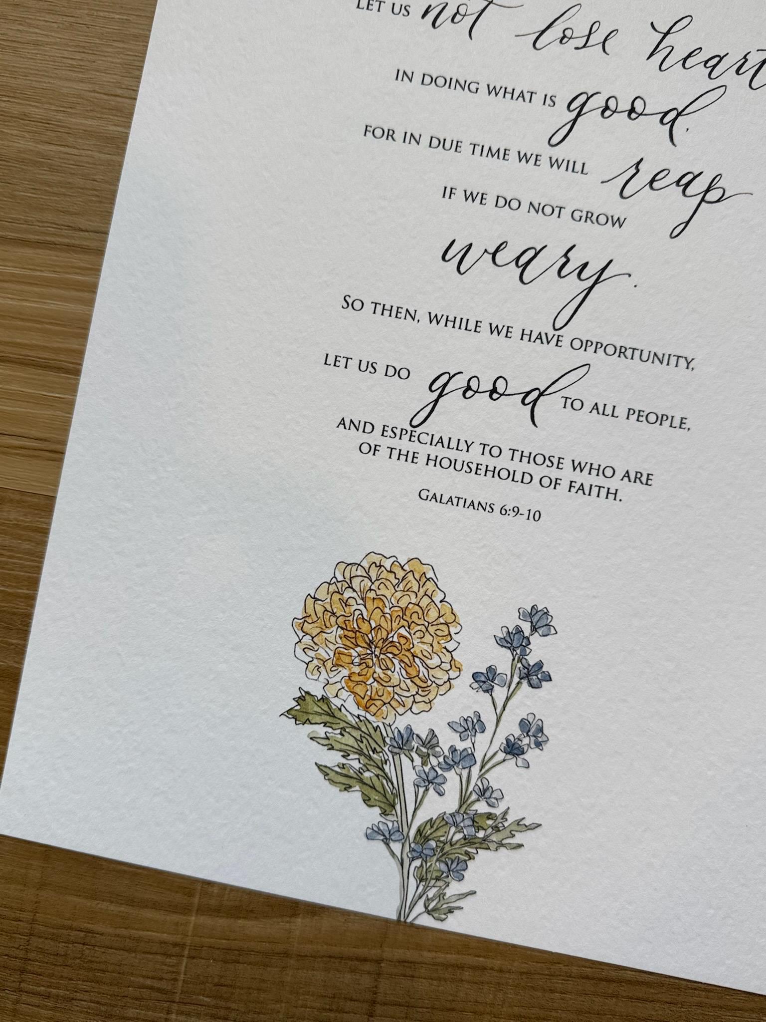 Galatians 6:9-10 Scripture Print • Calligraphy, Floral Watercolor Art, Italian Paper
