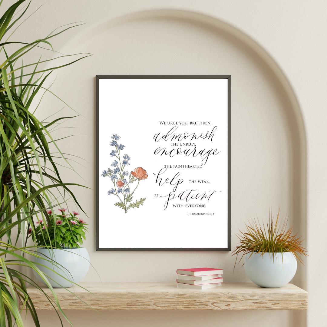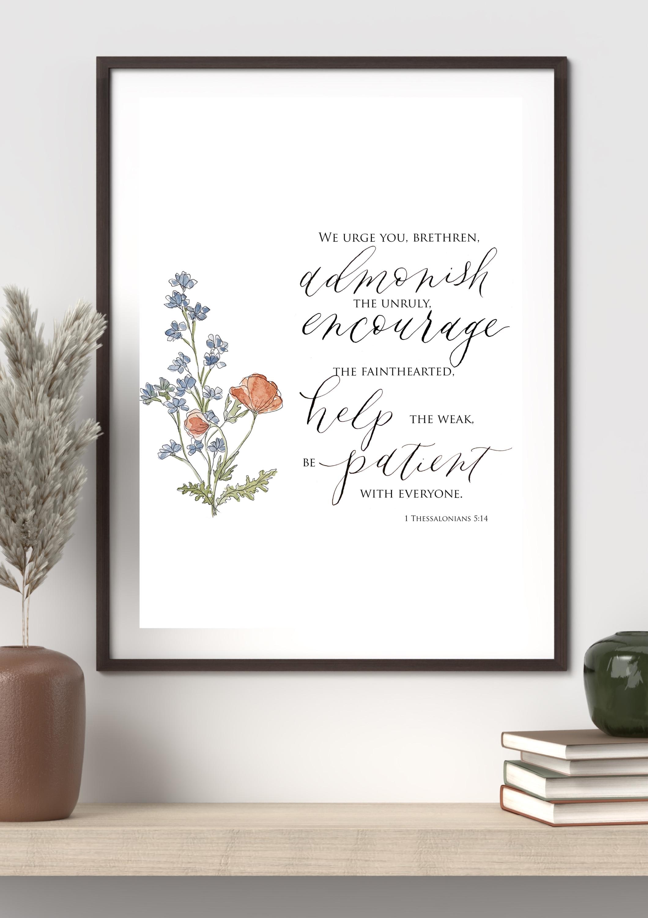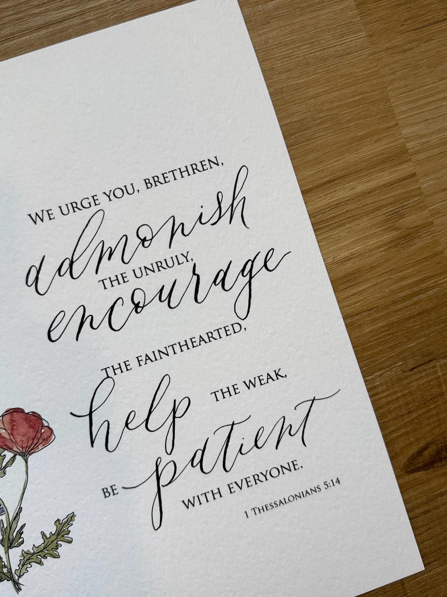 1 Thessalonians 5:14 Scripture Print • Calligraphy, Floral Watercolor Art, Italian Paper