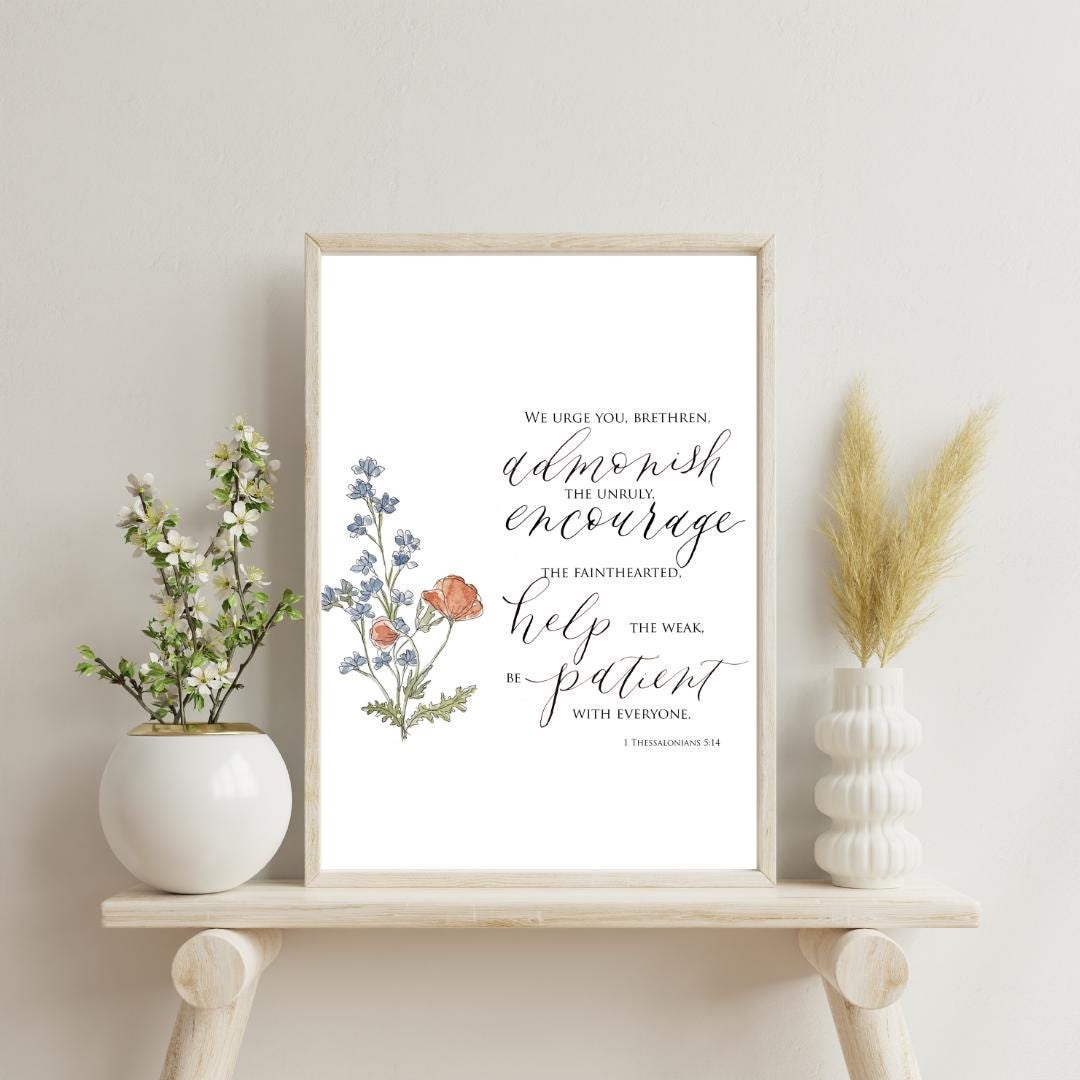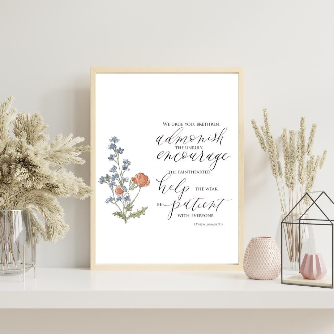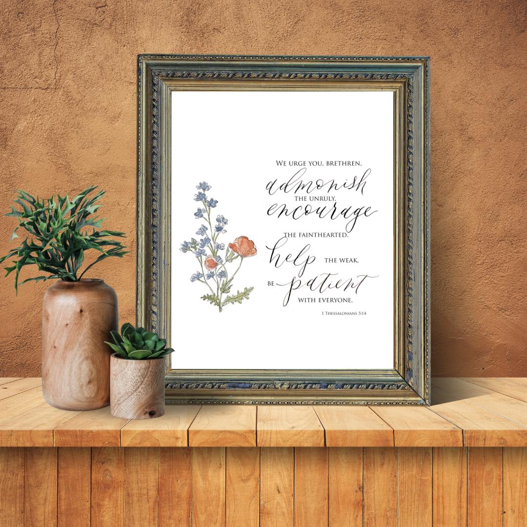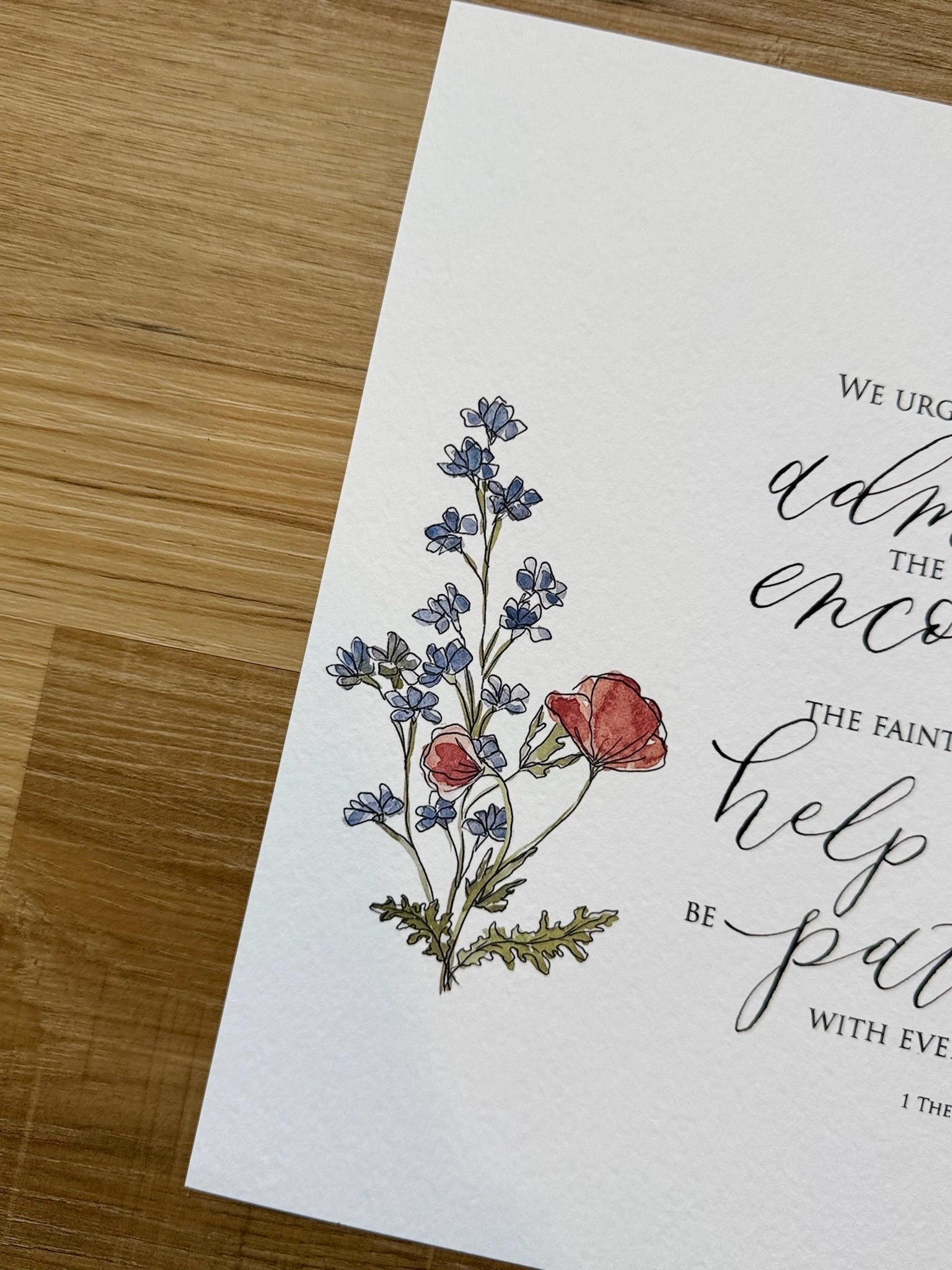 1 Thessalonians 5:14 Scripture Print • Calligraphy, Floral Watercolor Art, Italian Paper