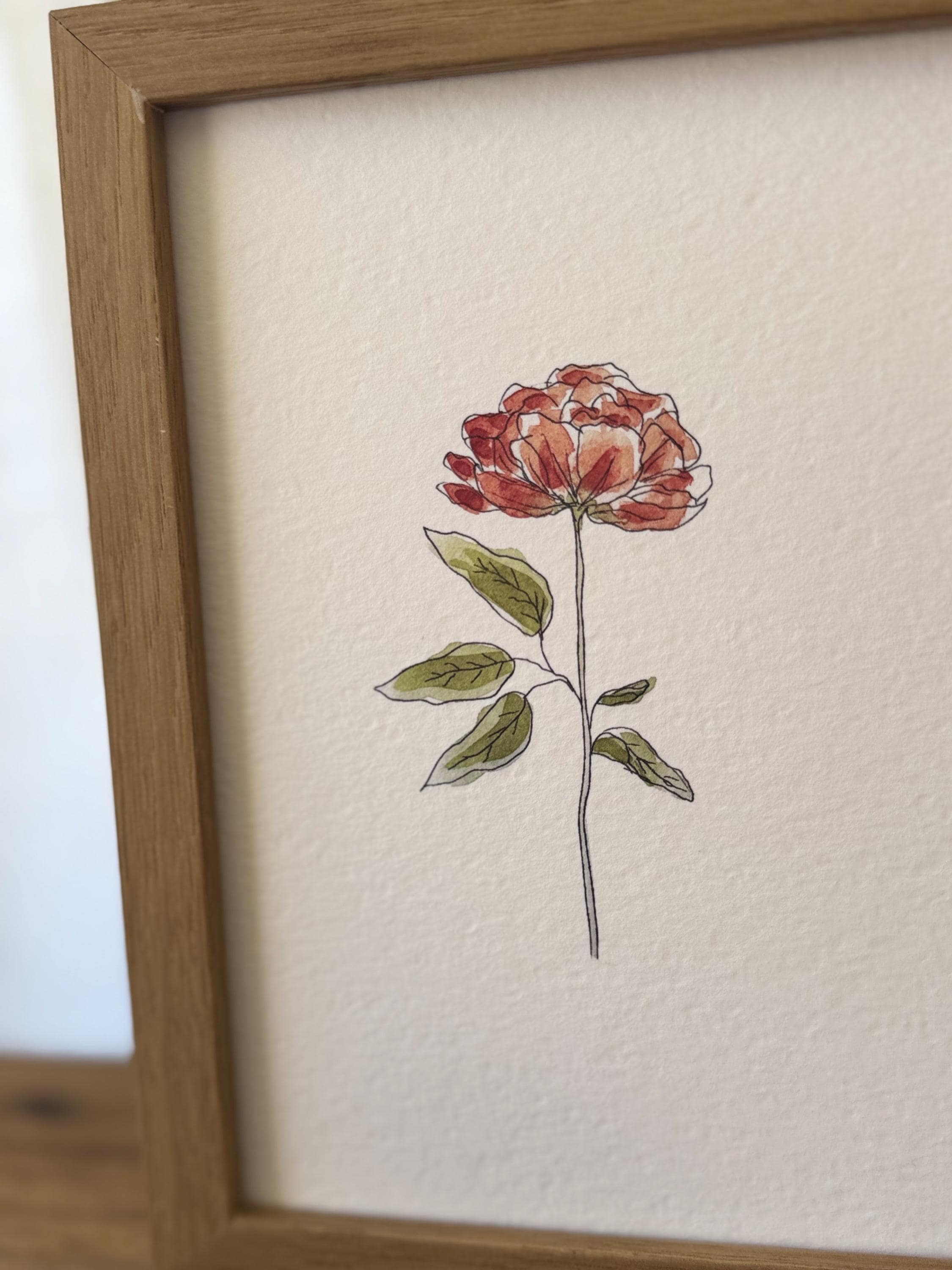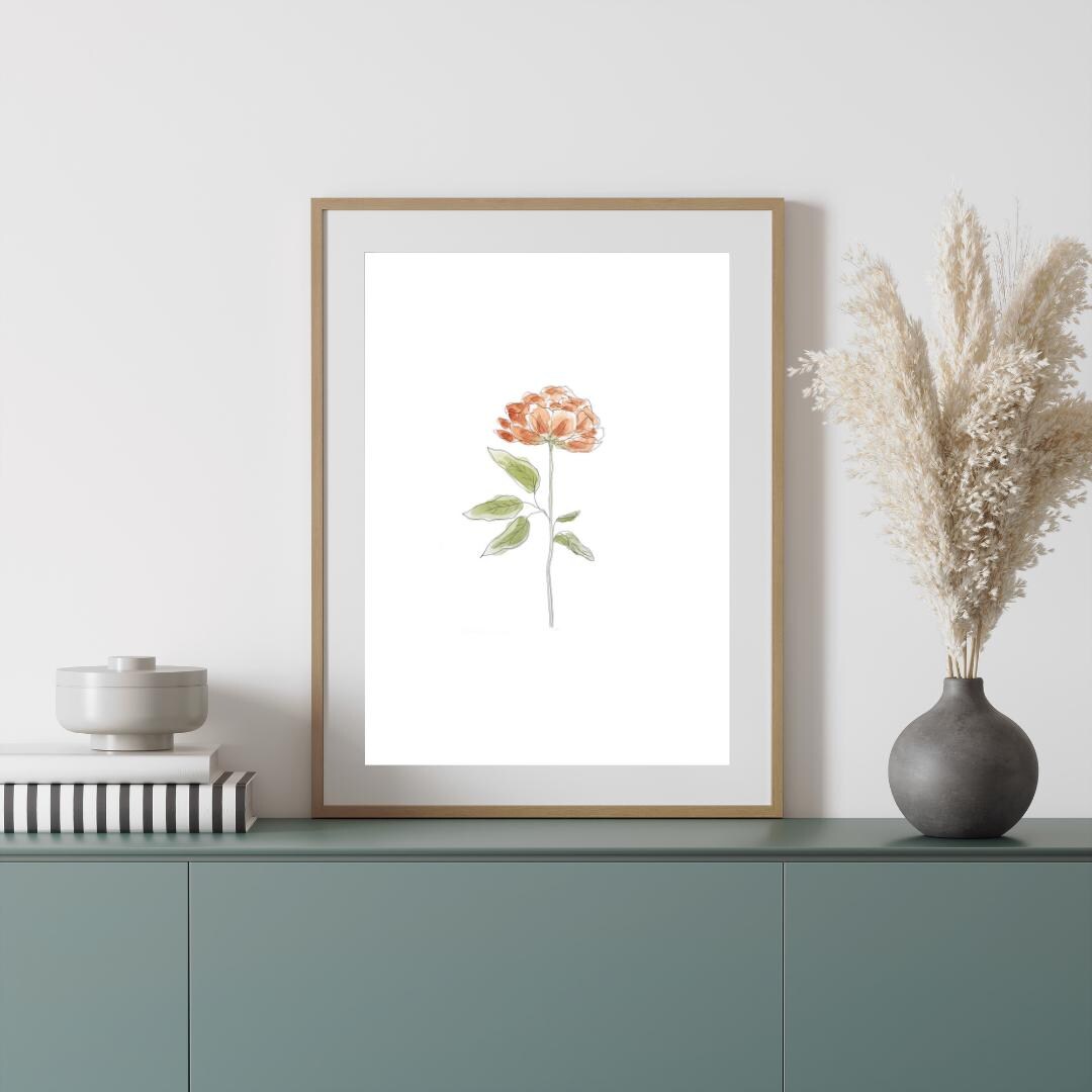 November Birth Month Flower Print | Peony Art | Minimalist Botanical Wall Art on Italian Paper