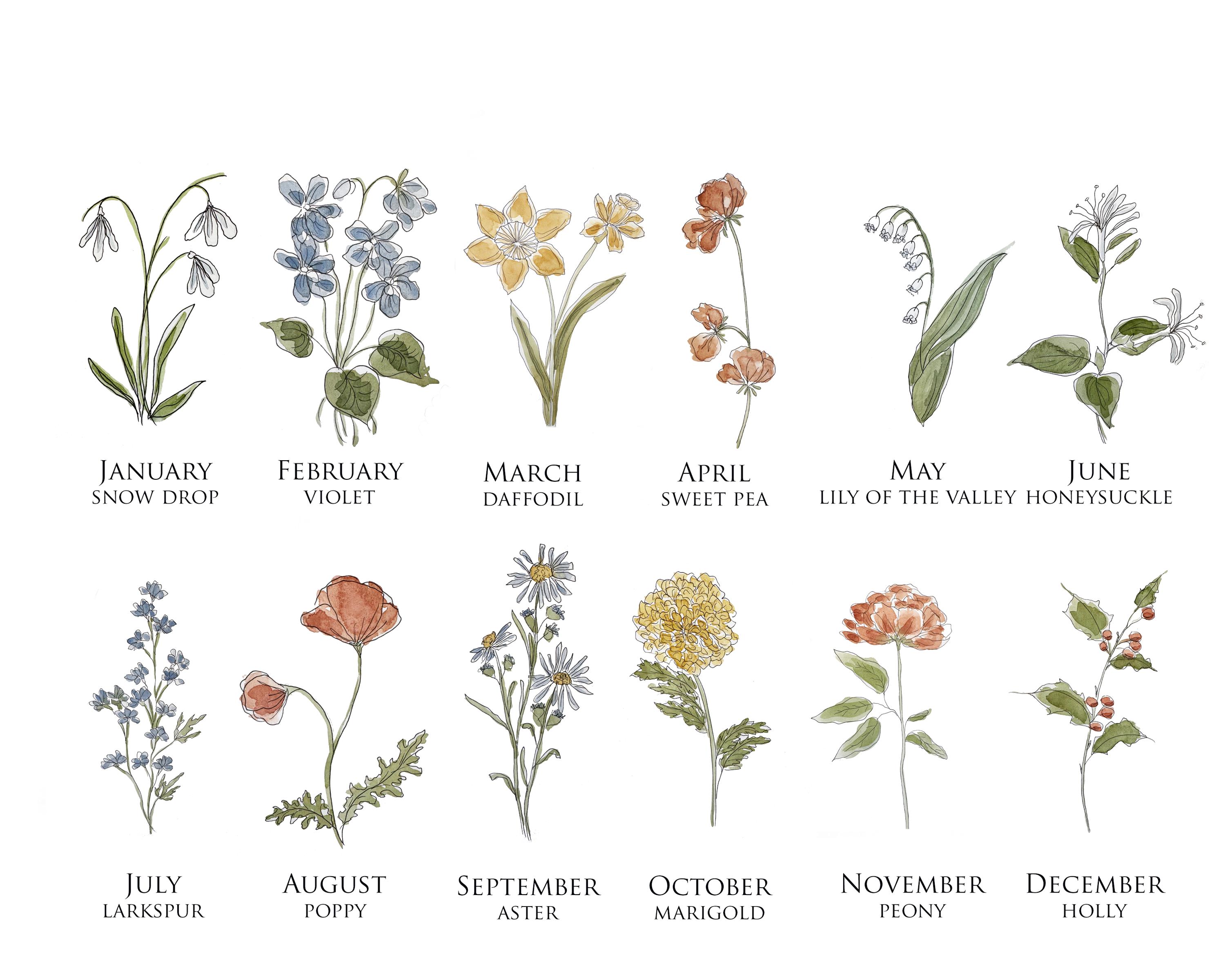 This artwork also pairs beautifully with other birth flower prints for a personalized family gallery wall.