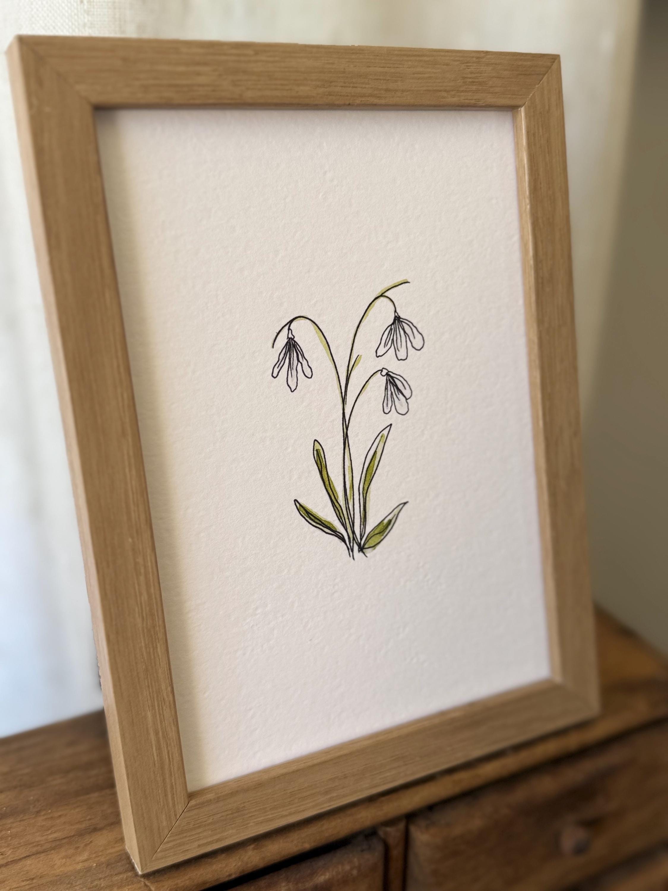 January Birth Month Flower Print | Snowdrop Art | Minimalist Botanical Wall Art on Italian Paper