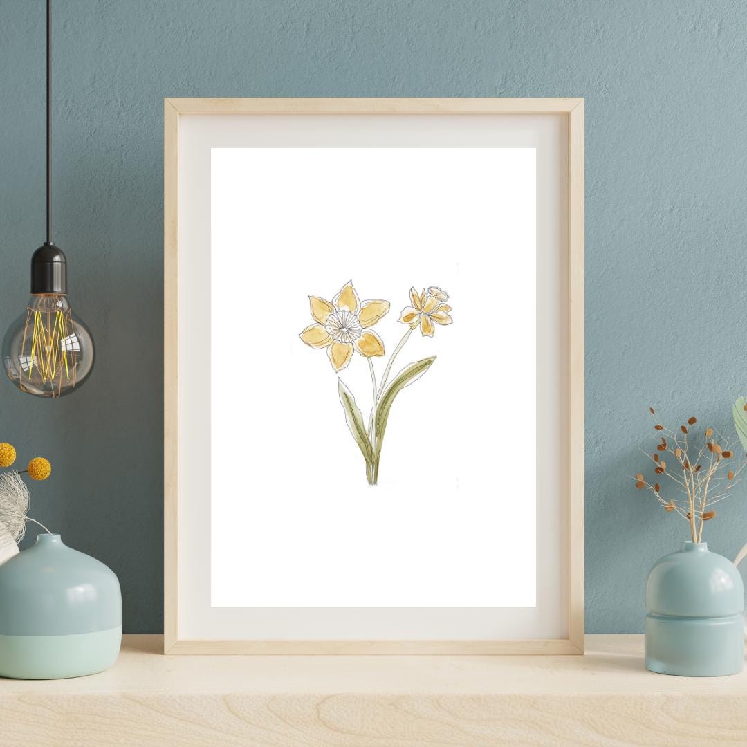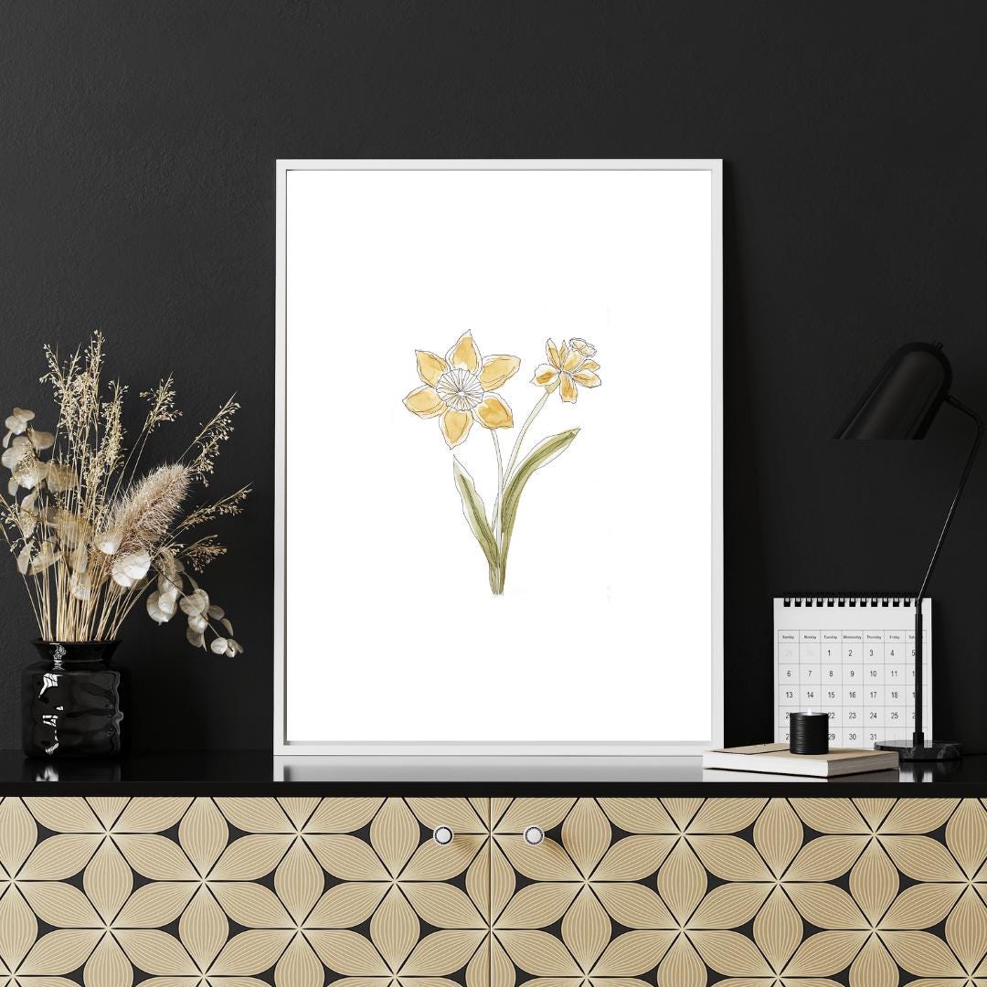 March Birth Month Flower Print | Daffodil Art | Minimalist Botanical Wall Art on Italian Paper