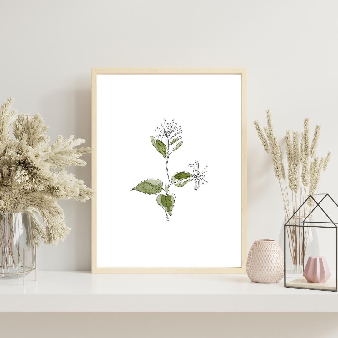 Celebrate the beauty of a June birth month flower with this delicate honeysuckle botanical print. Featuring soft watercolor tones and airy linework, this minimalist floral illustration adds warmth and timeless charm to any space. The neutral palette blends effortlessly with modern, traditional, cottage, or coastal décor styles.
