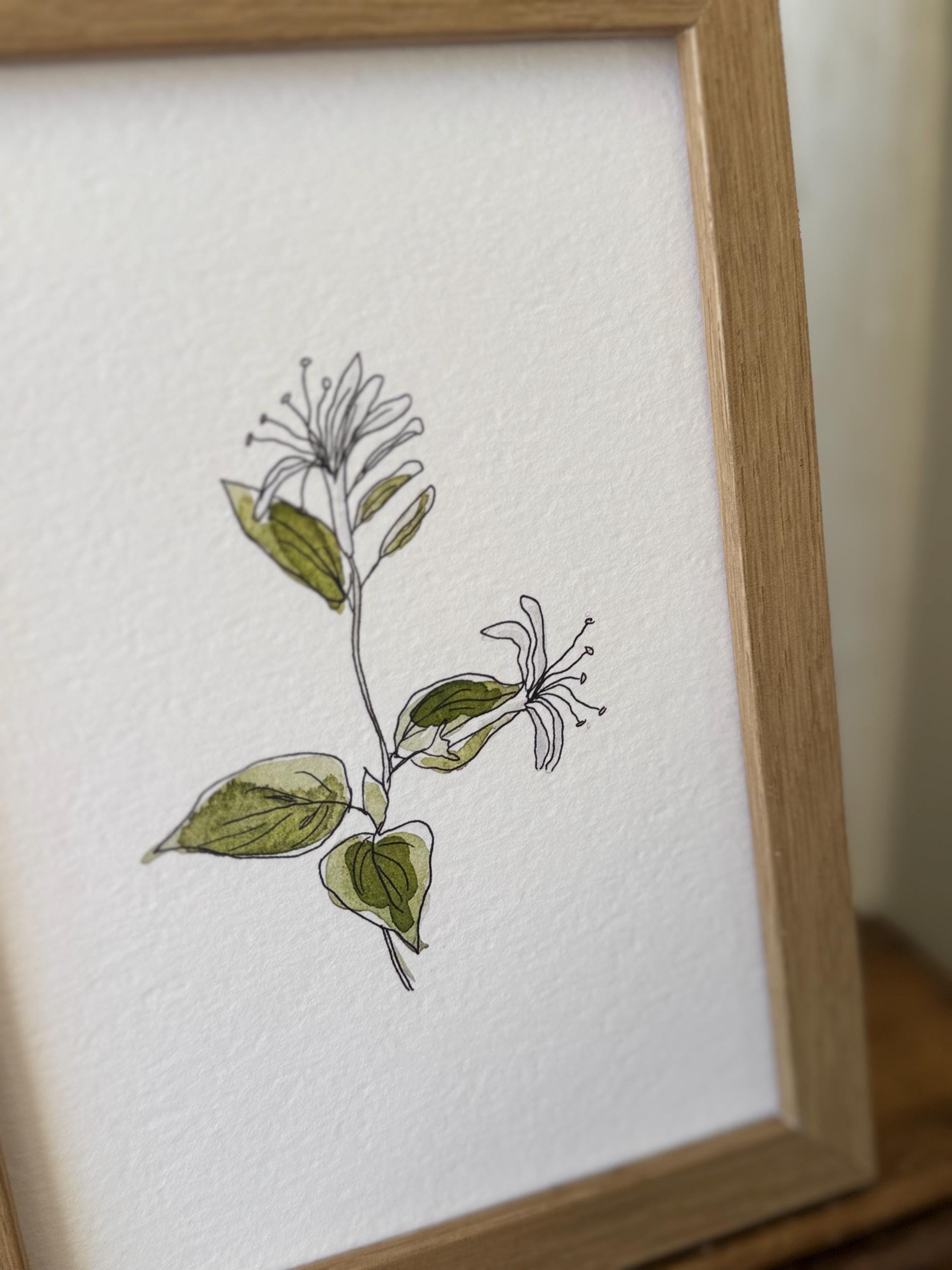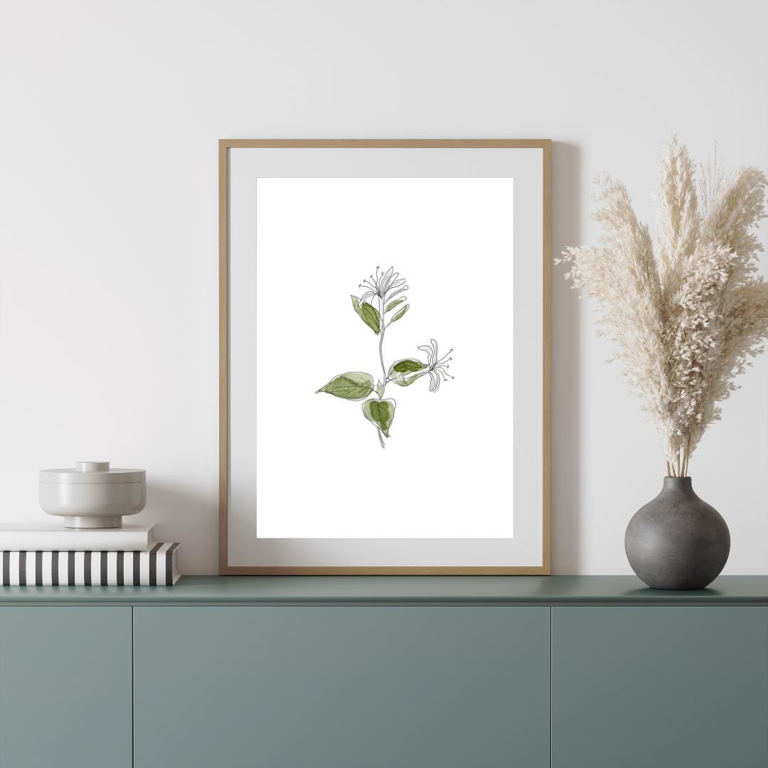June Birth Month Flower Print | Honeysuckle Art | Minimalist Botanical Wall Art on Italian Paper