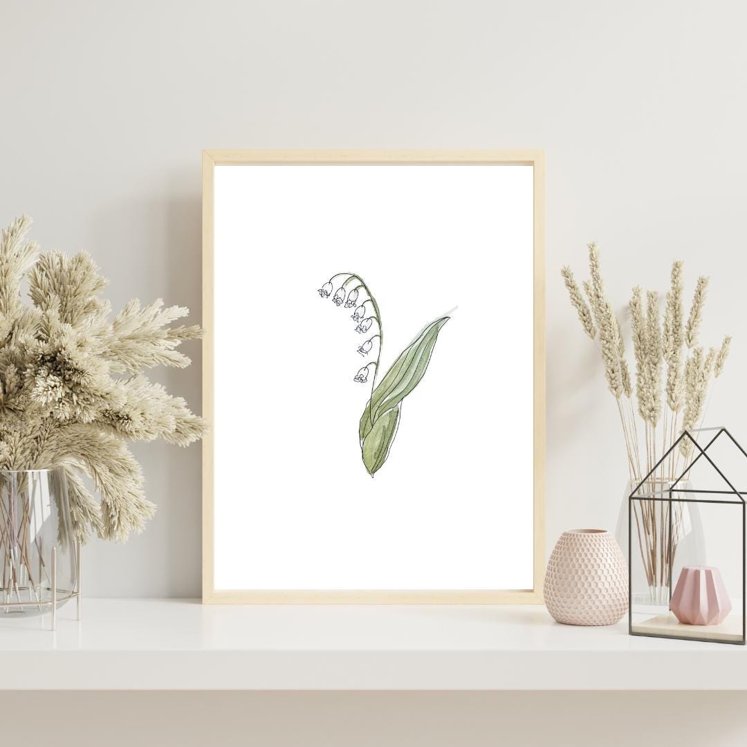 May Birth Flower Print | Lily of the Valley Botanical Art | Hand Painted Watercolor