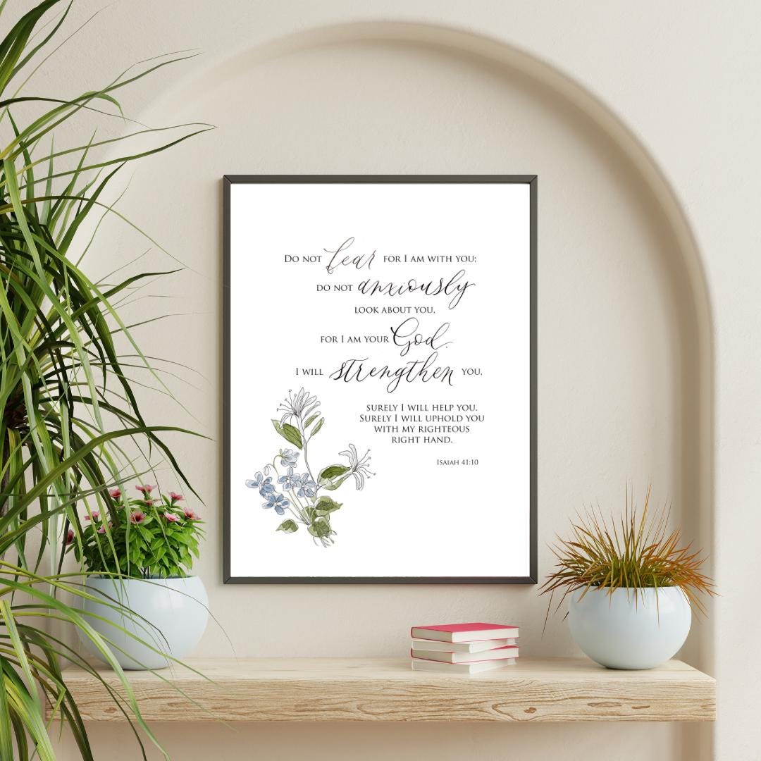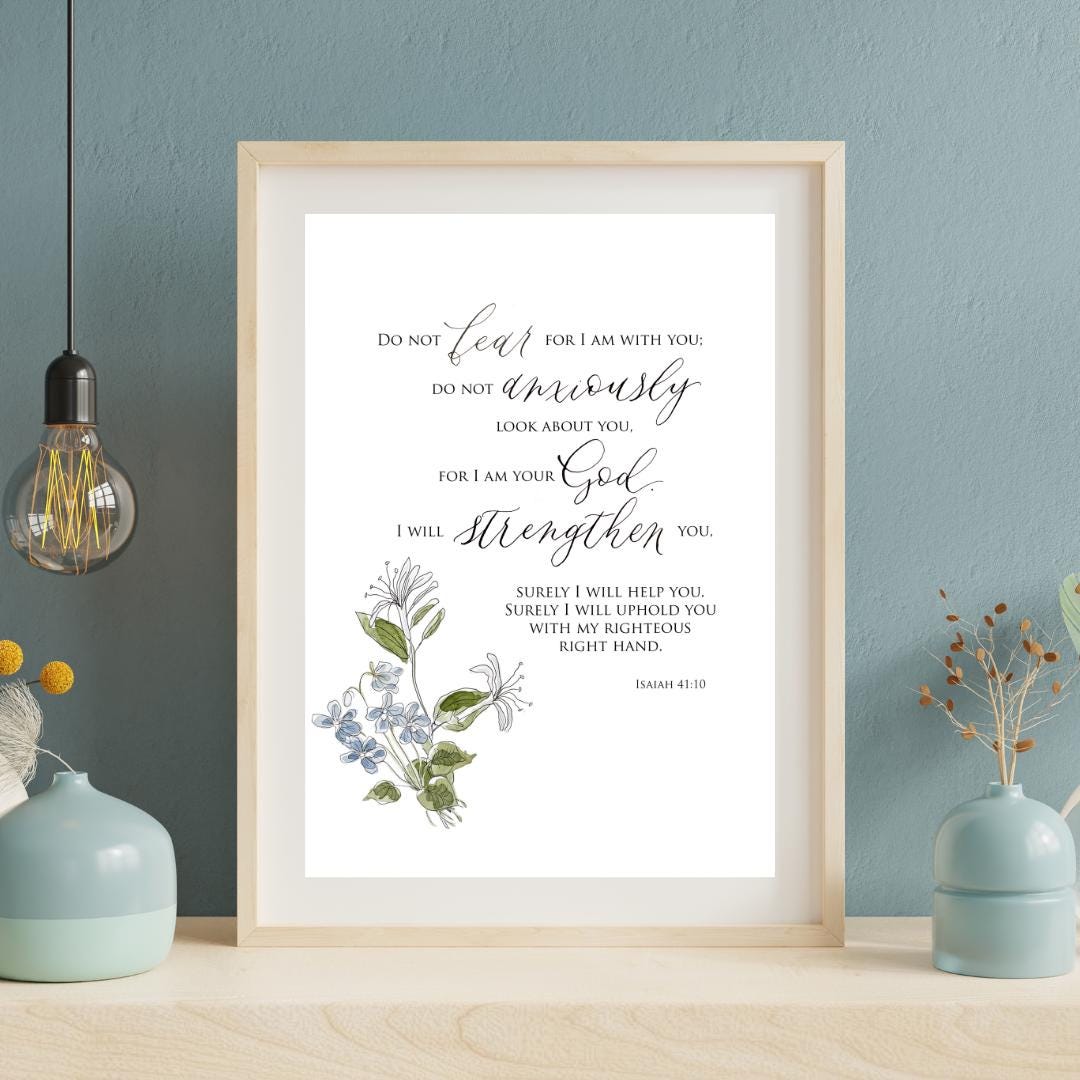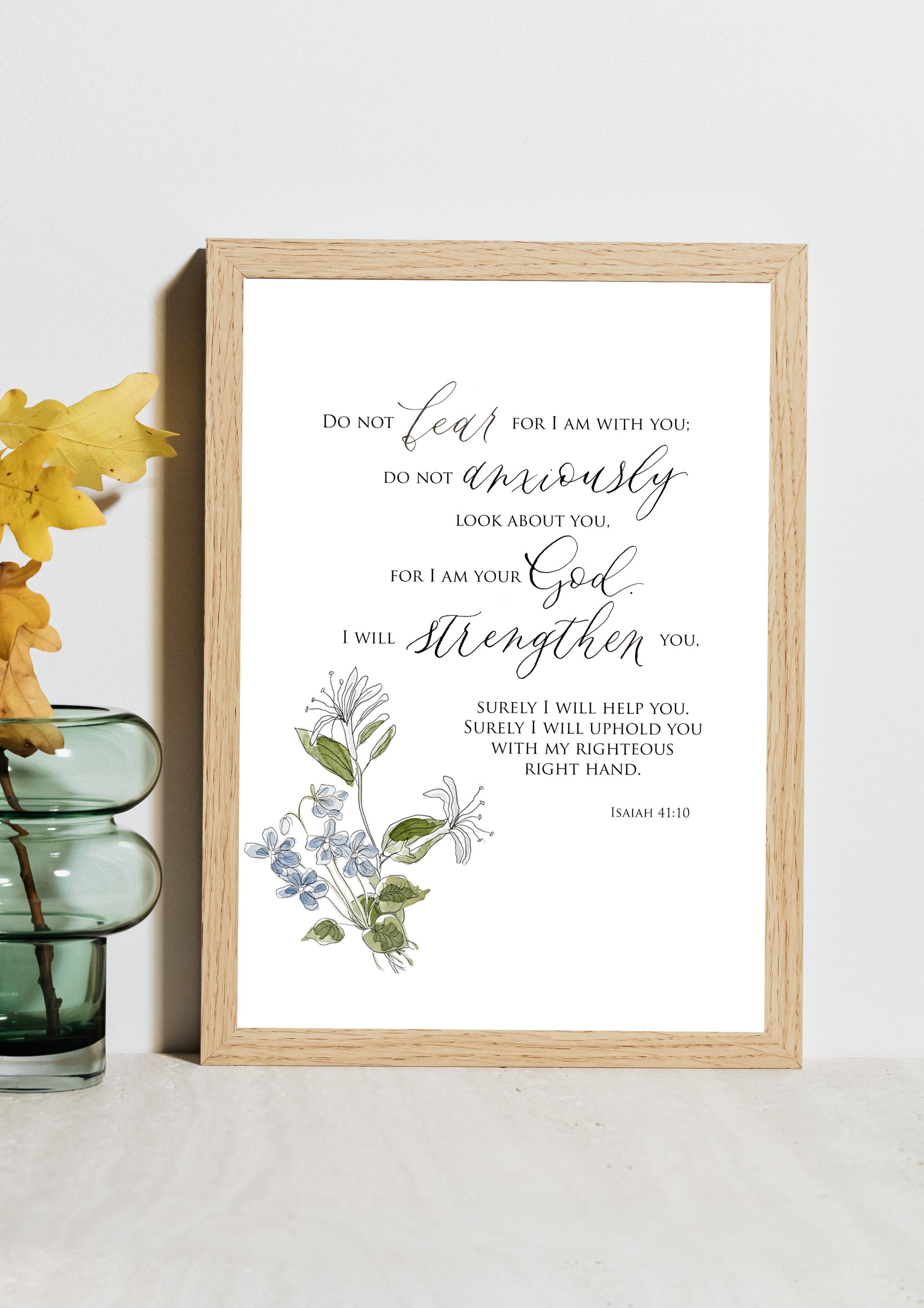 Isaiah 41:10 Scripture Print • Calligraphy, Floral Watercolor Art, Italian Paper