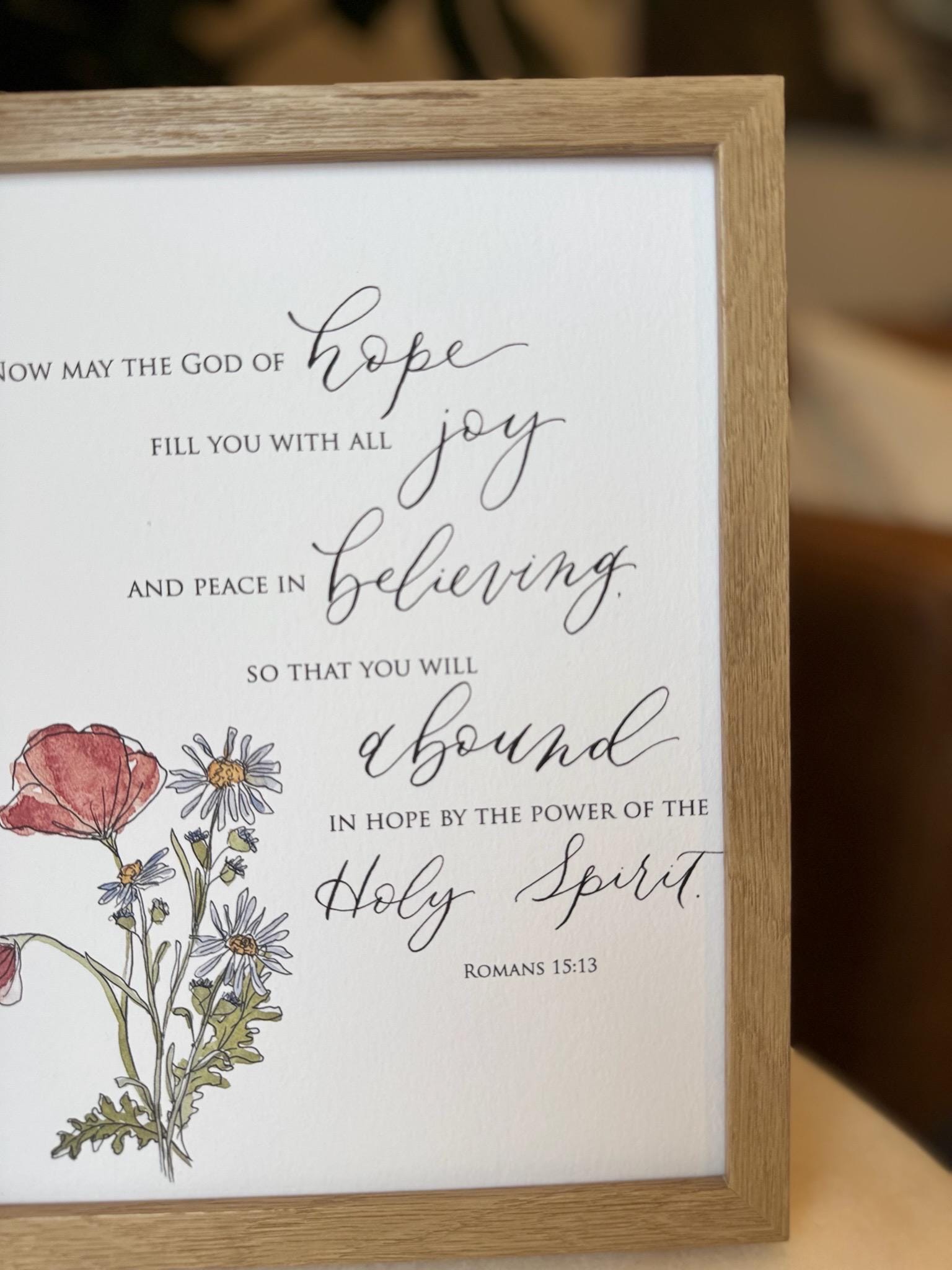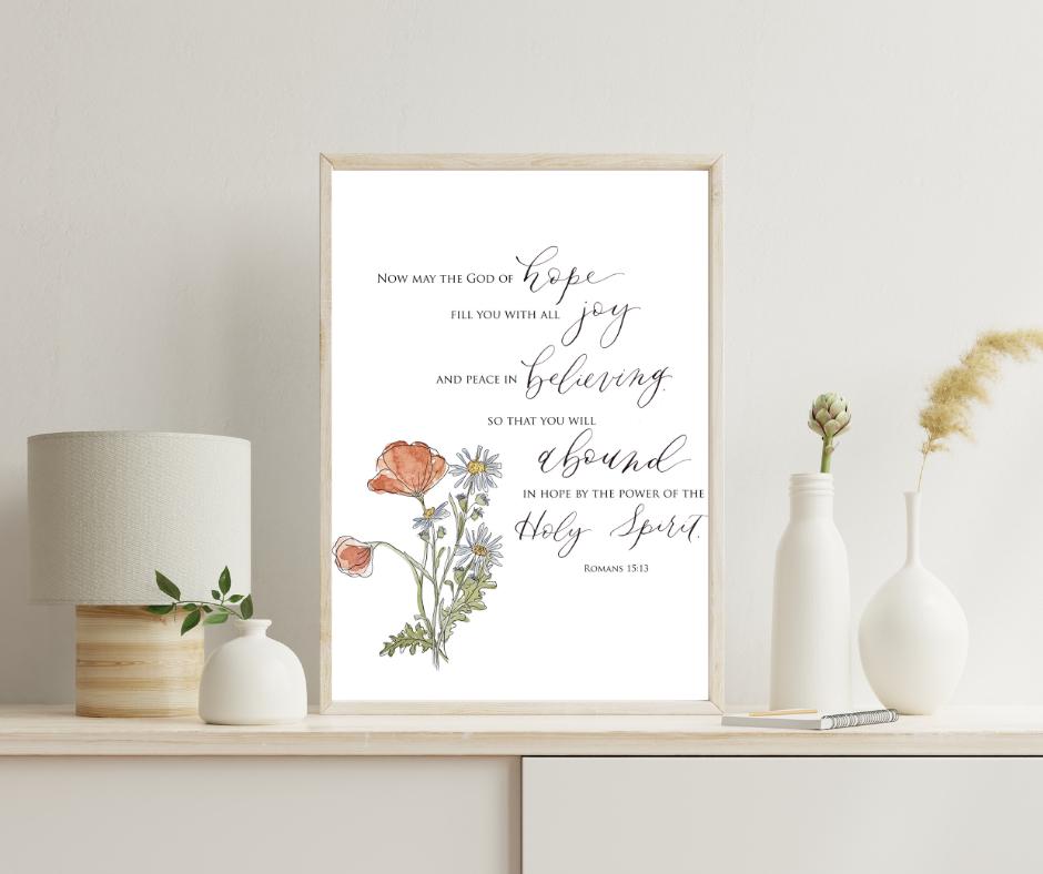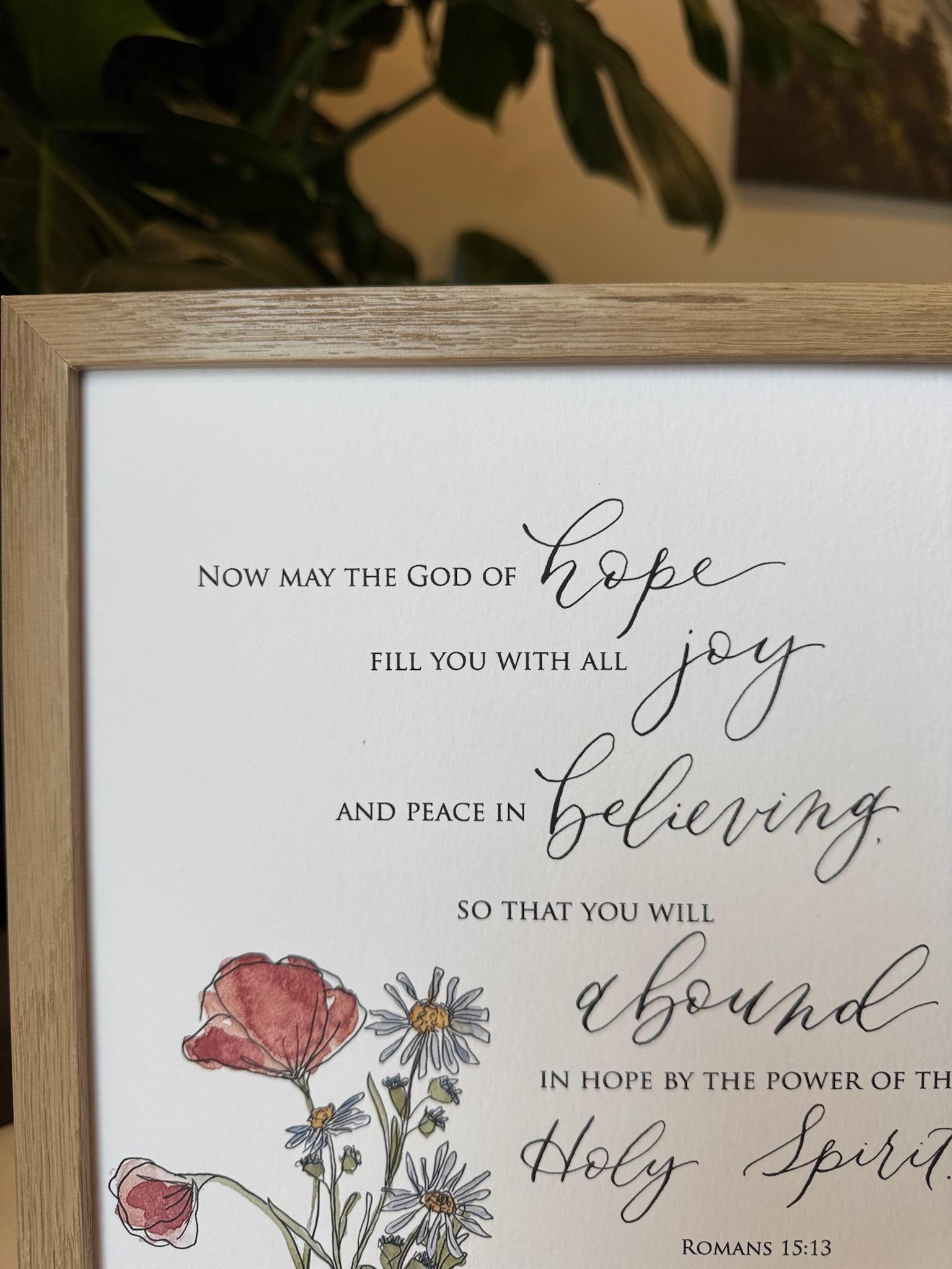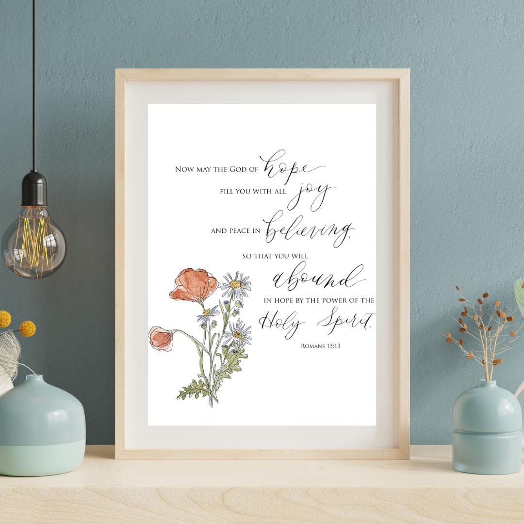Romans 15:13 Scripture Print • Calligraphy, Floral Watercolor, Italian Paper